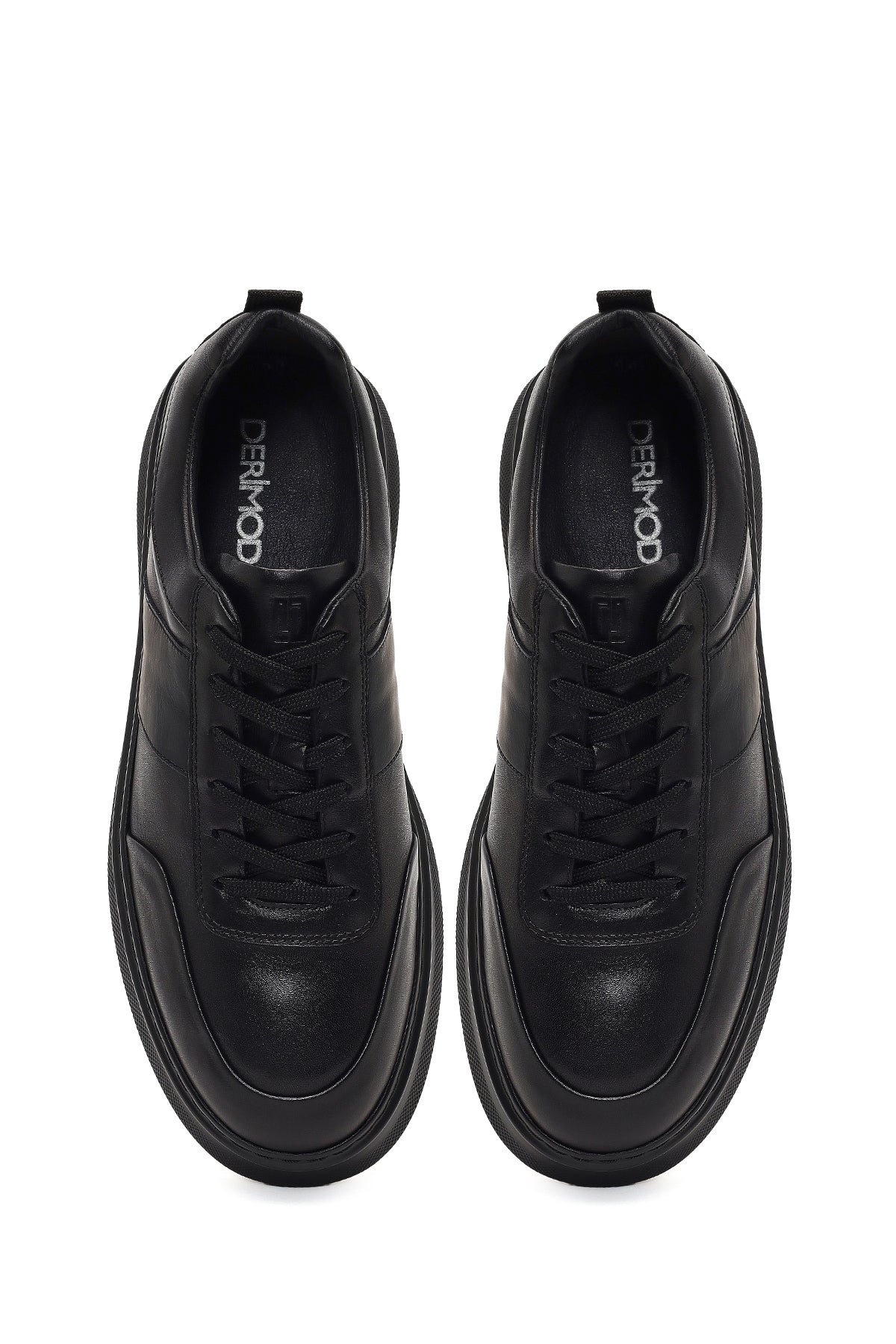 کتونی مردانه چرمی مشکی بندی با زیره ضخیم دری مد