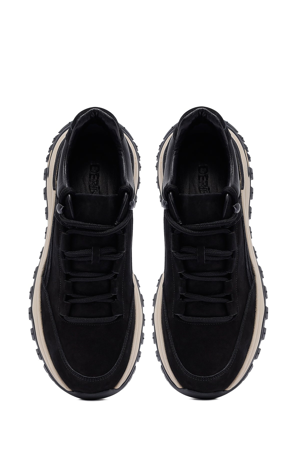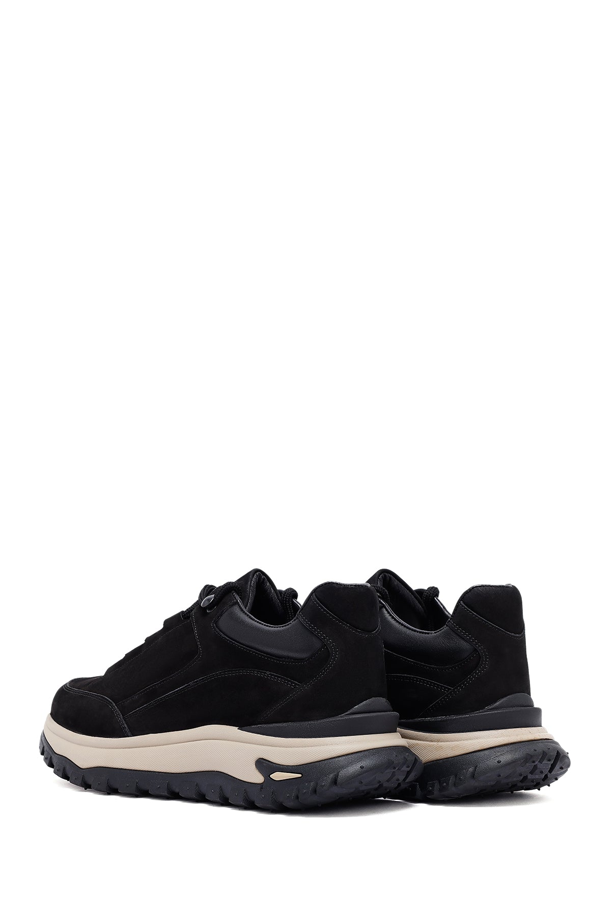Erkek Siyah Bağcıklı Kalın Tabanlı Nubuk Deri Casual Sneaker