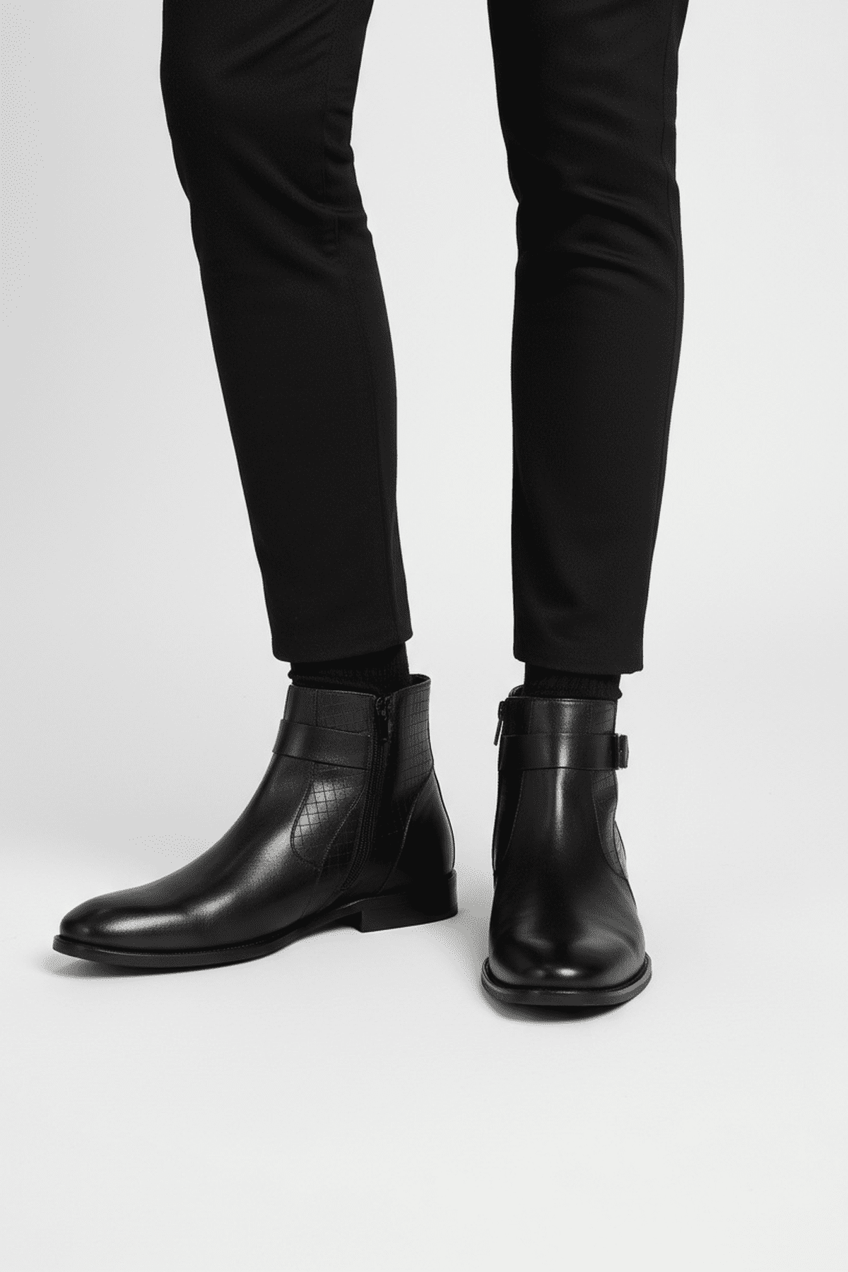 بوت کلاسیک چرمی مردانه مشکی زیپدار با سگک دریمد