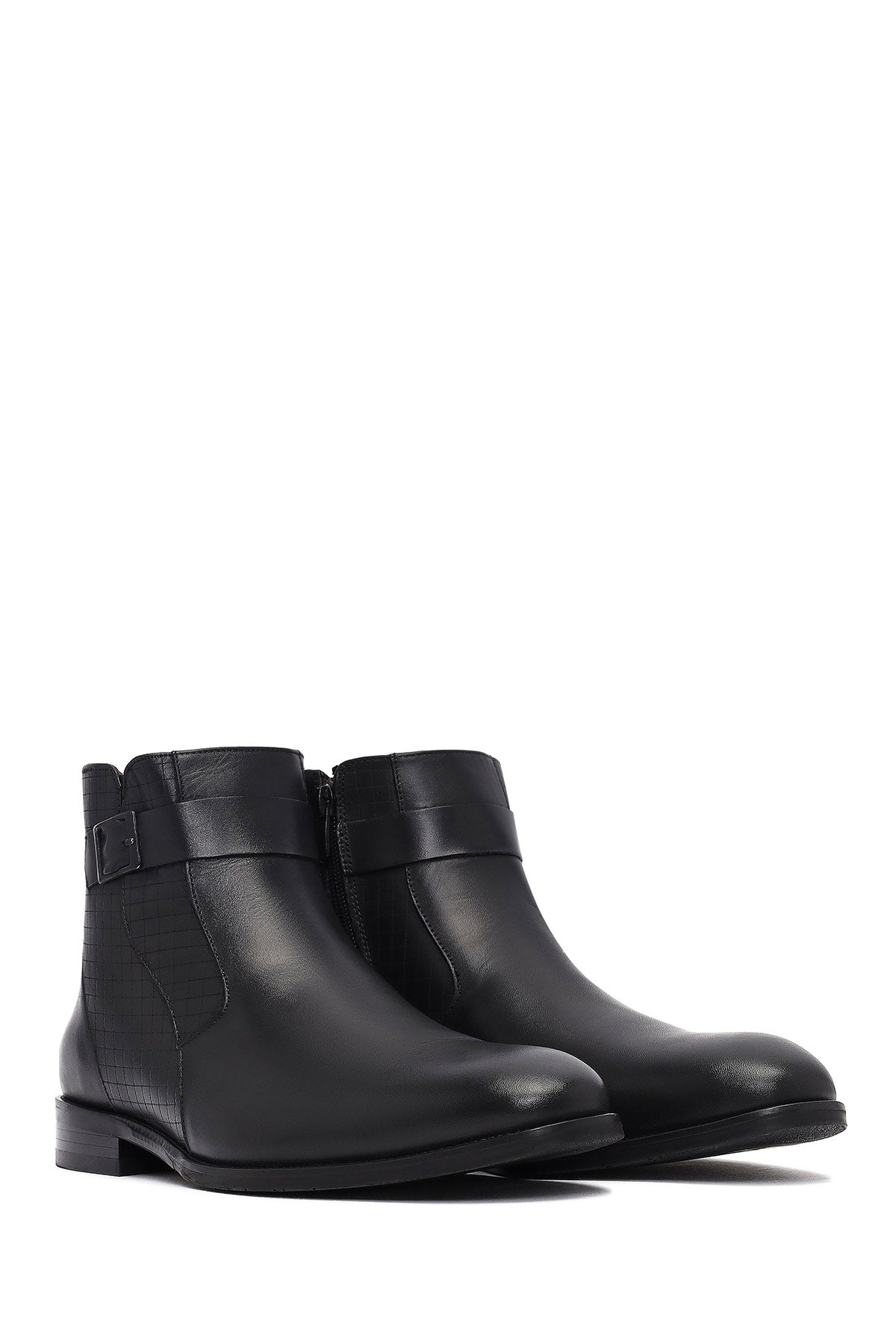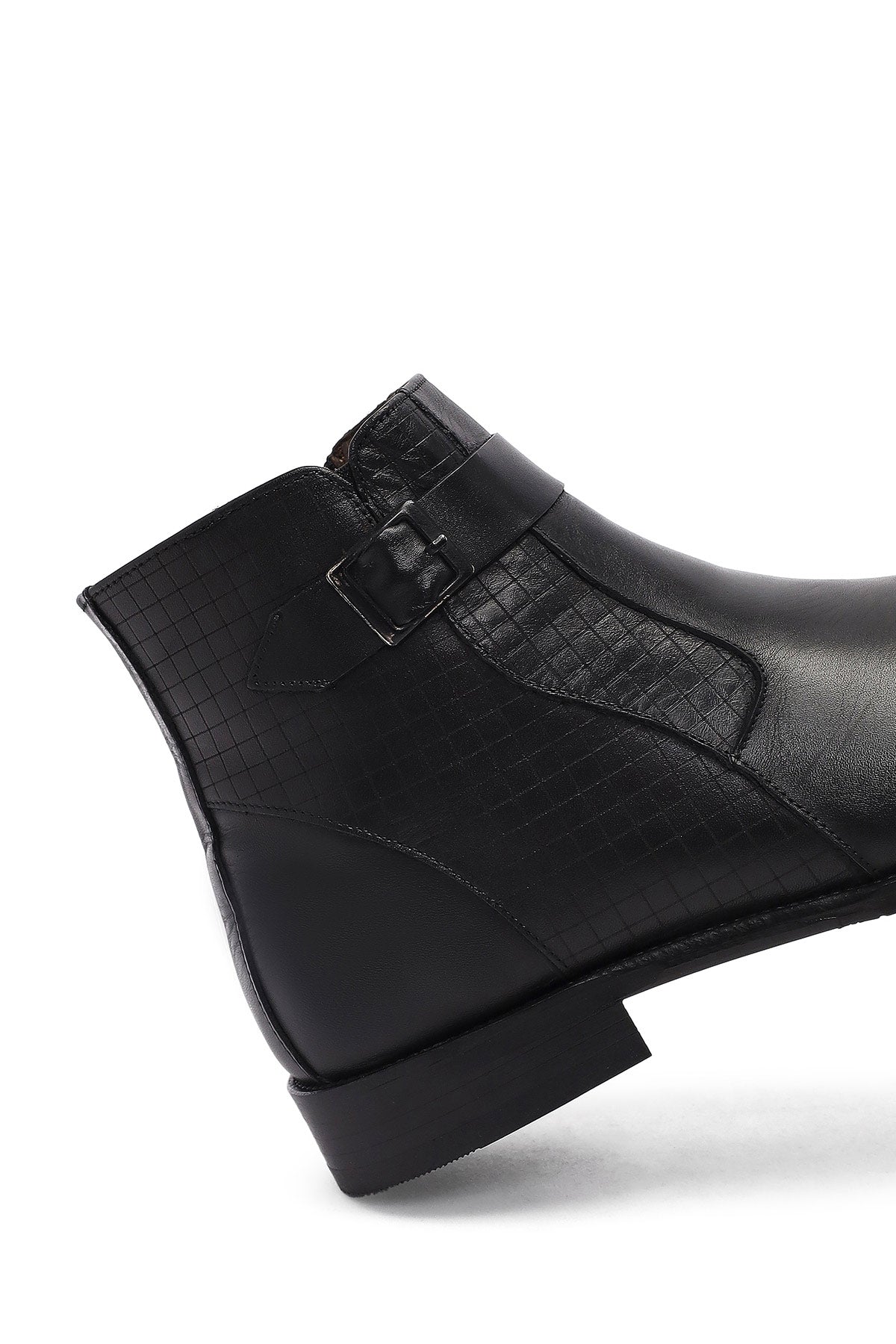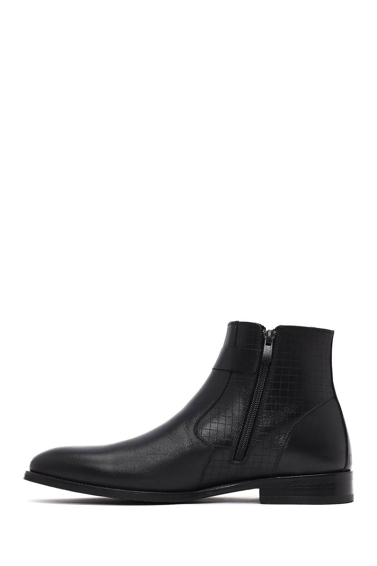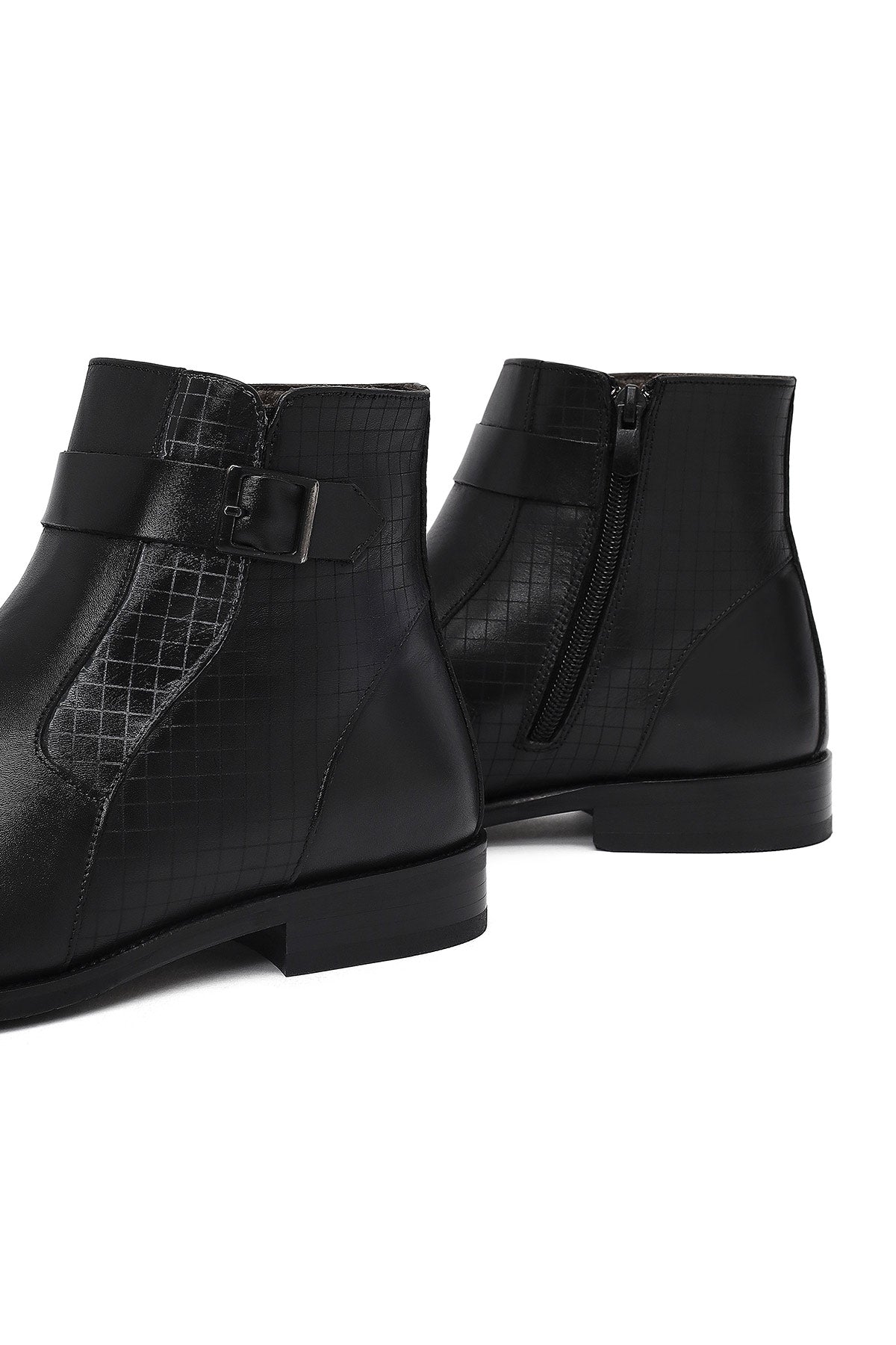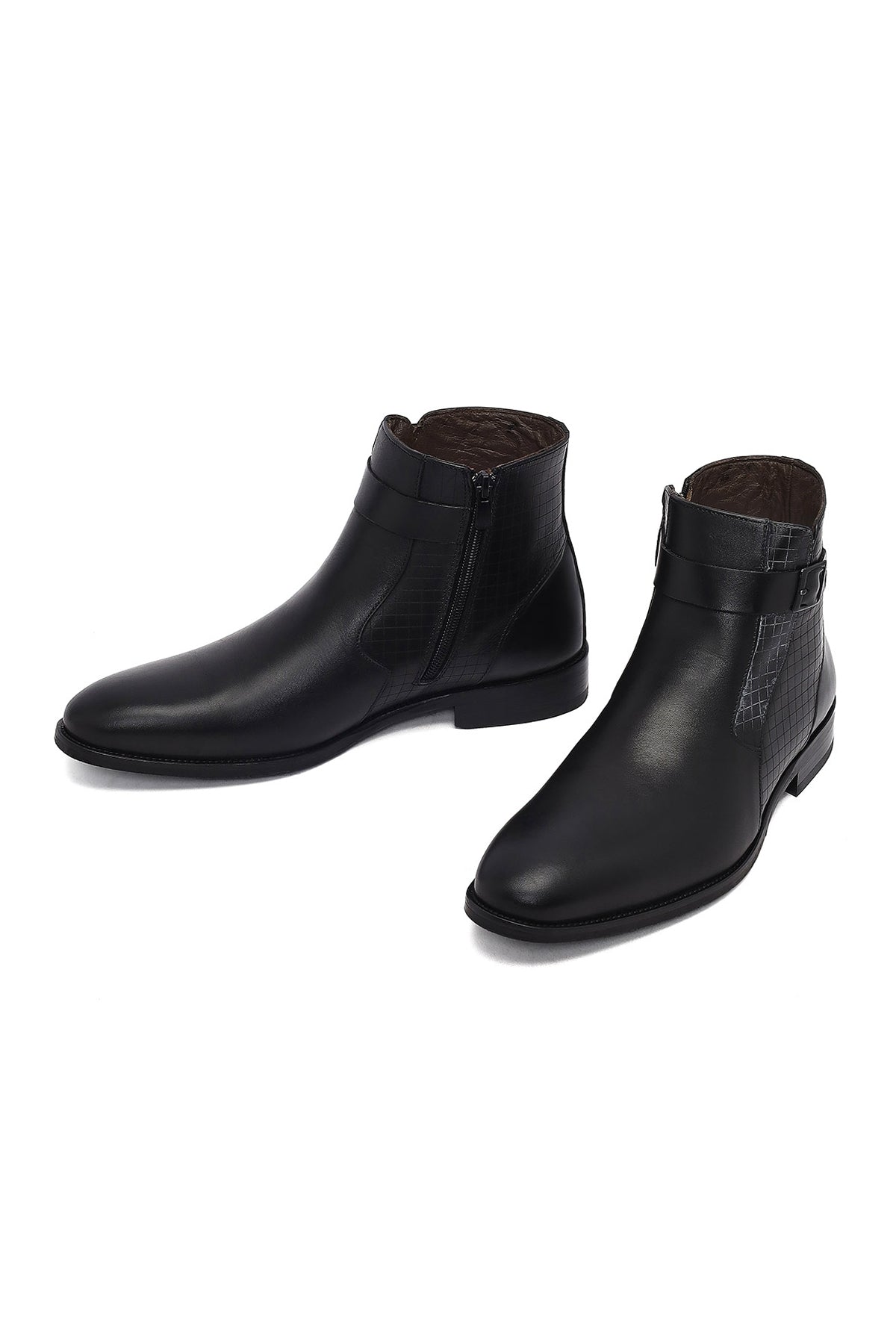 Erkek Siyah Toka Detaylı Fermuarlı Deri Klasik Bot