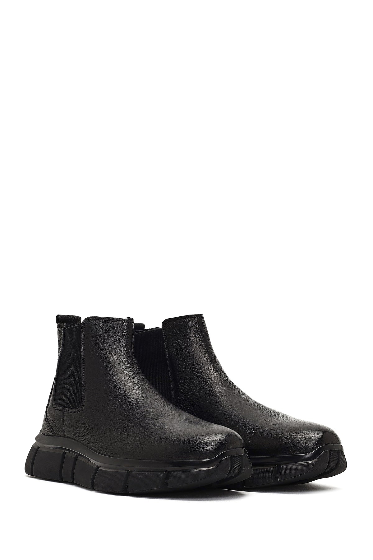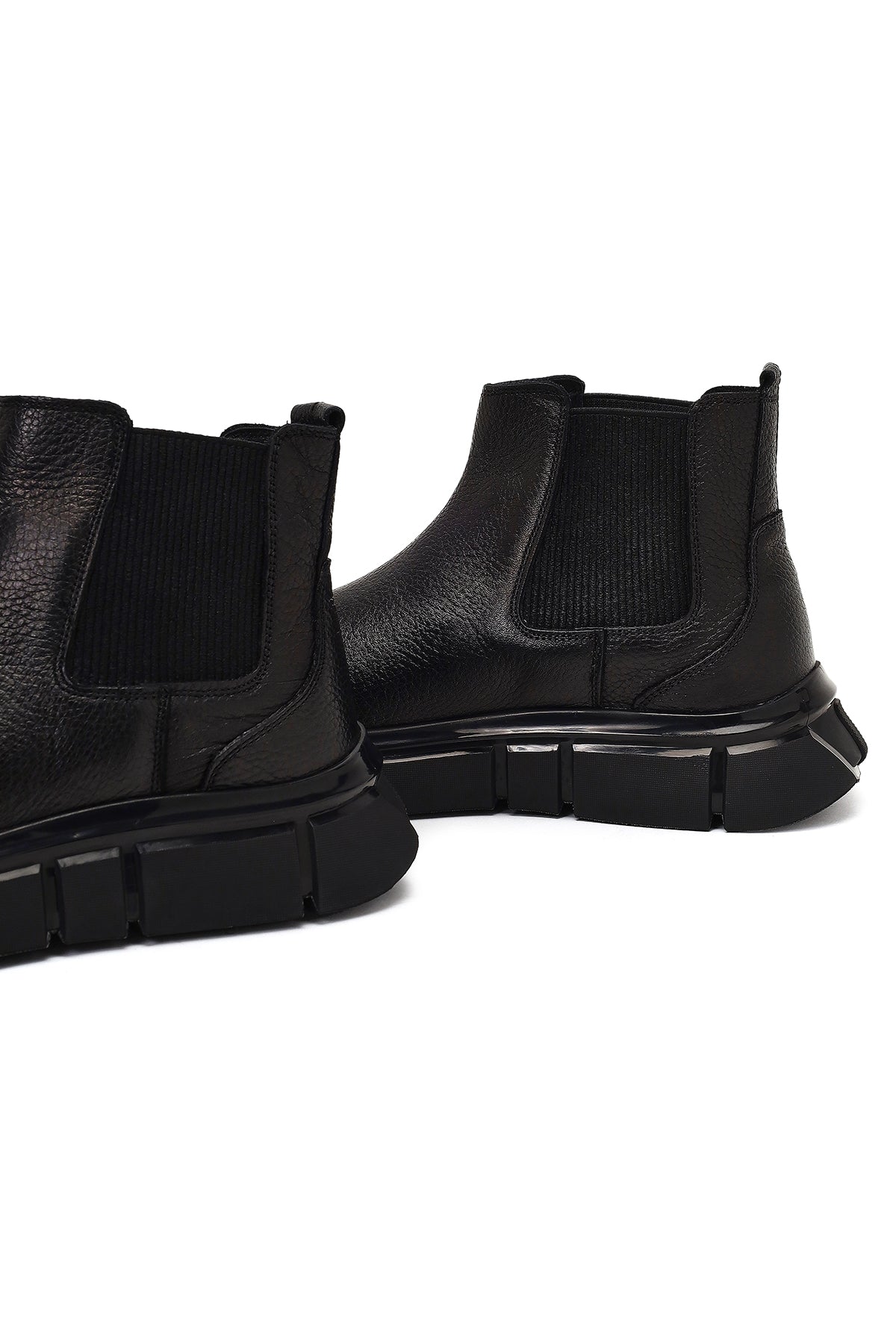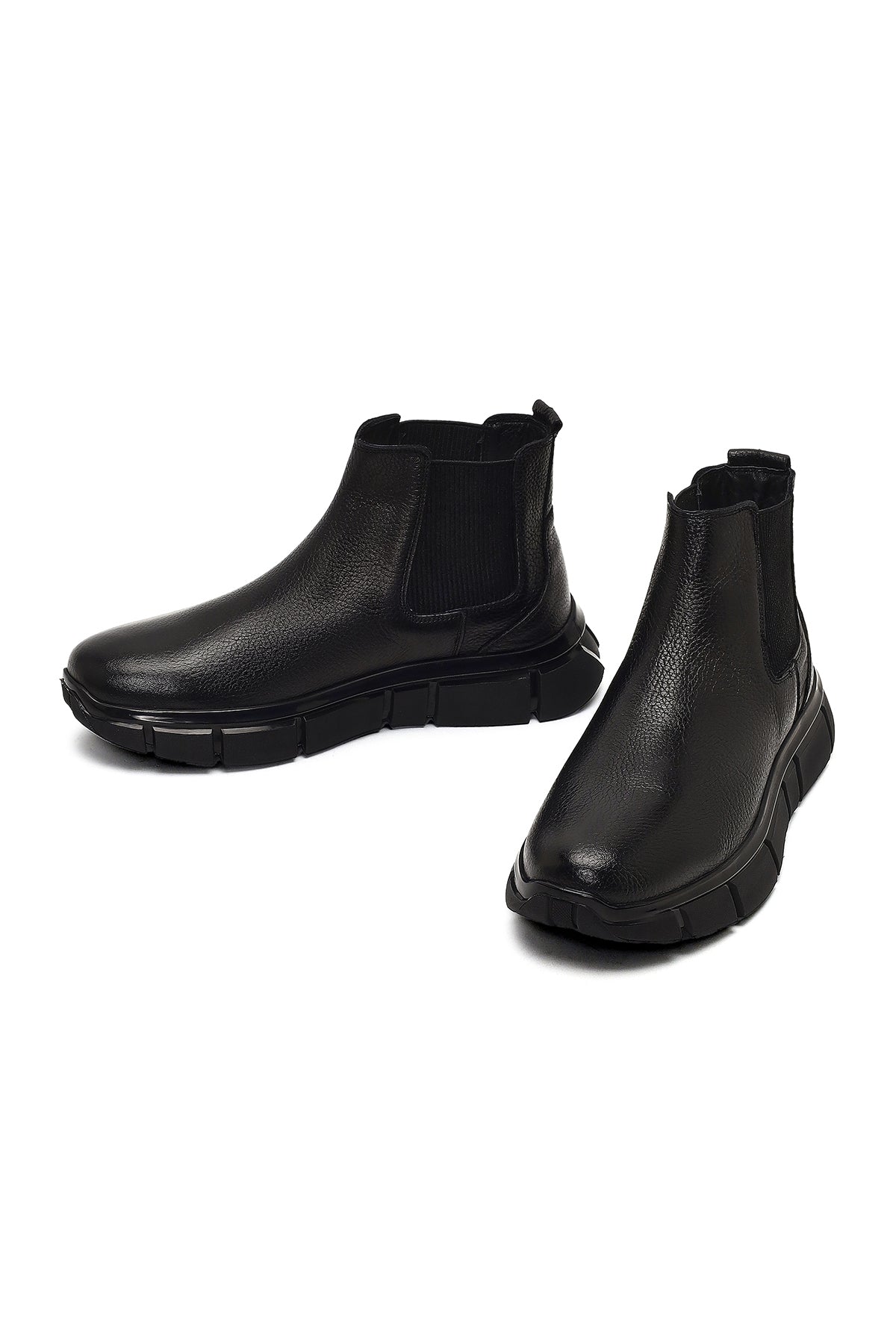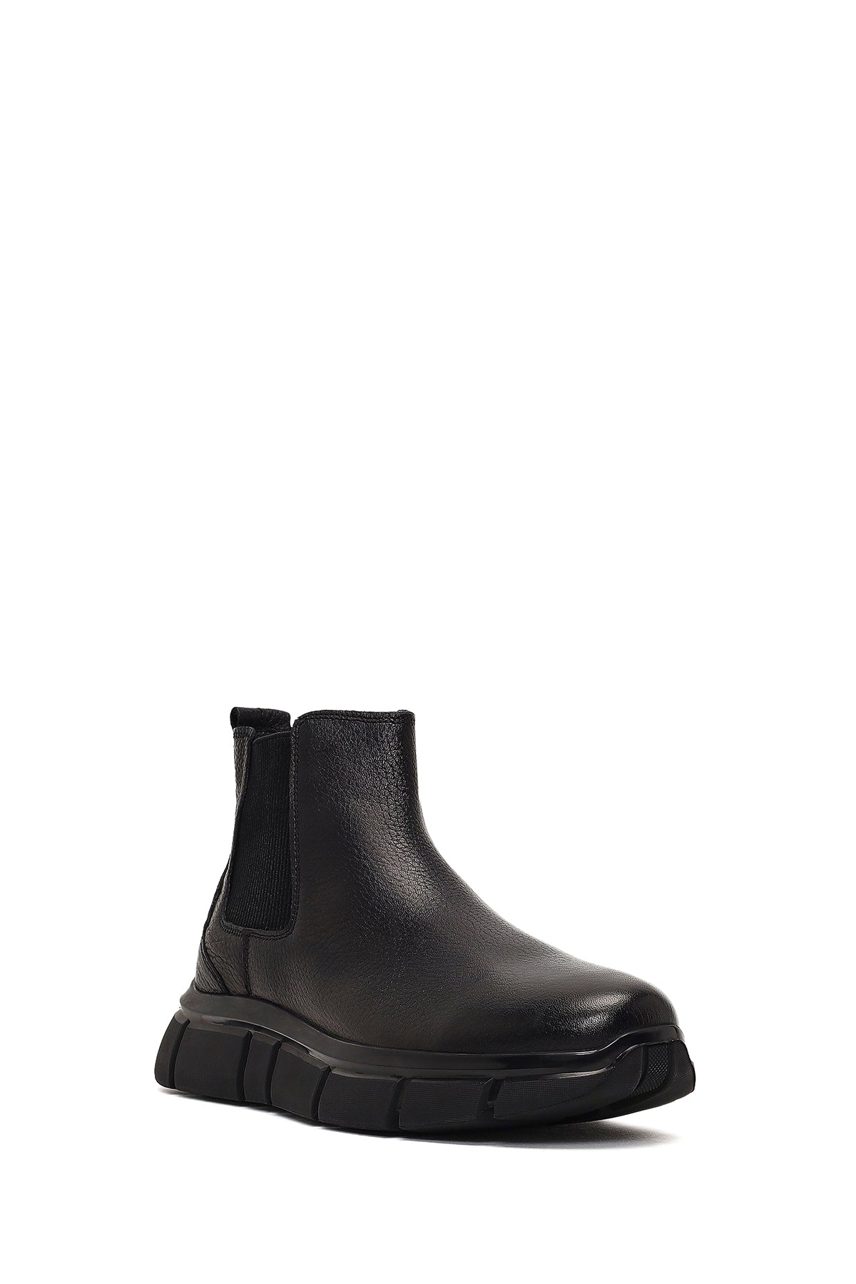 Erkek Siyah Kalın Tabanlı Deri Chelsea Bot