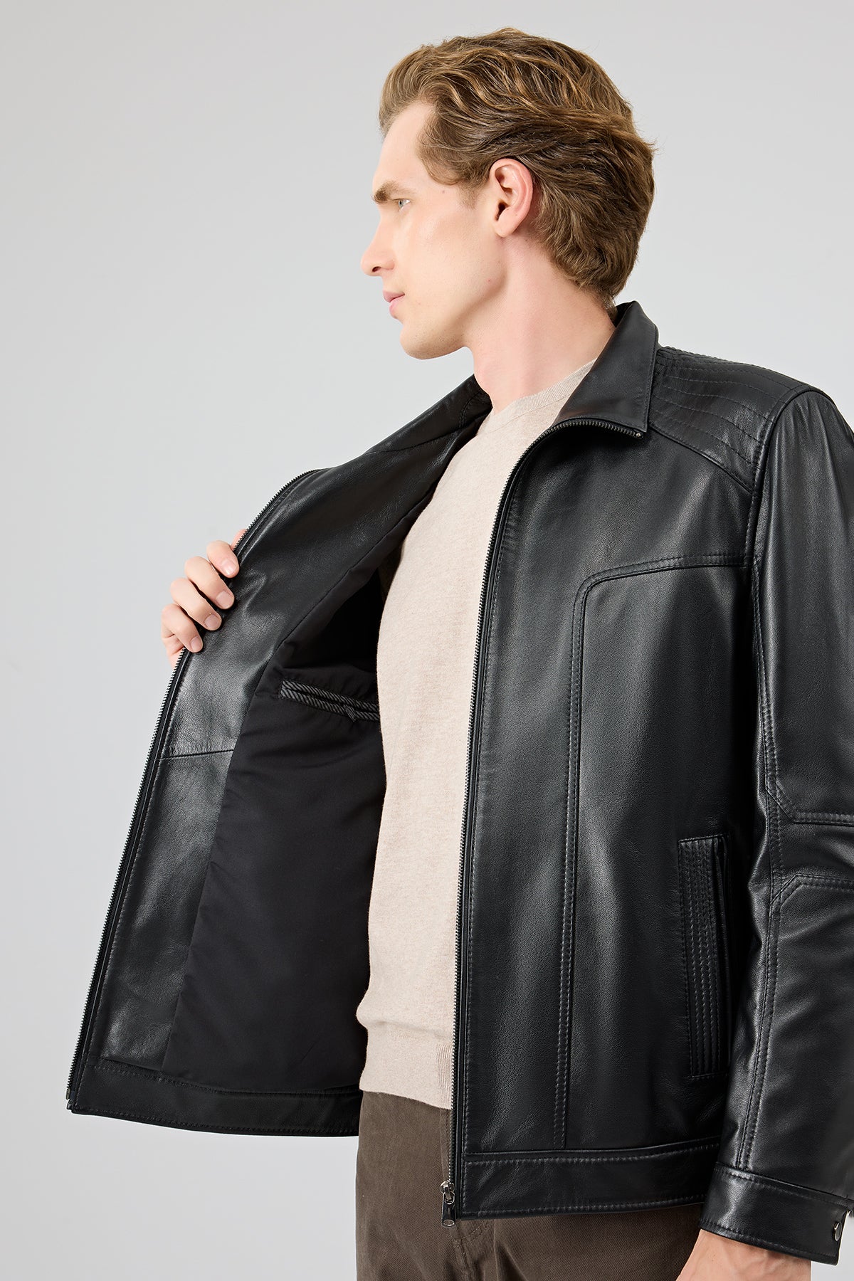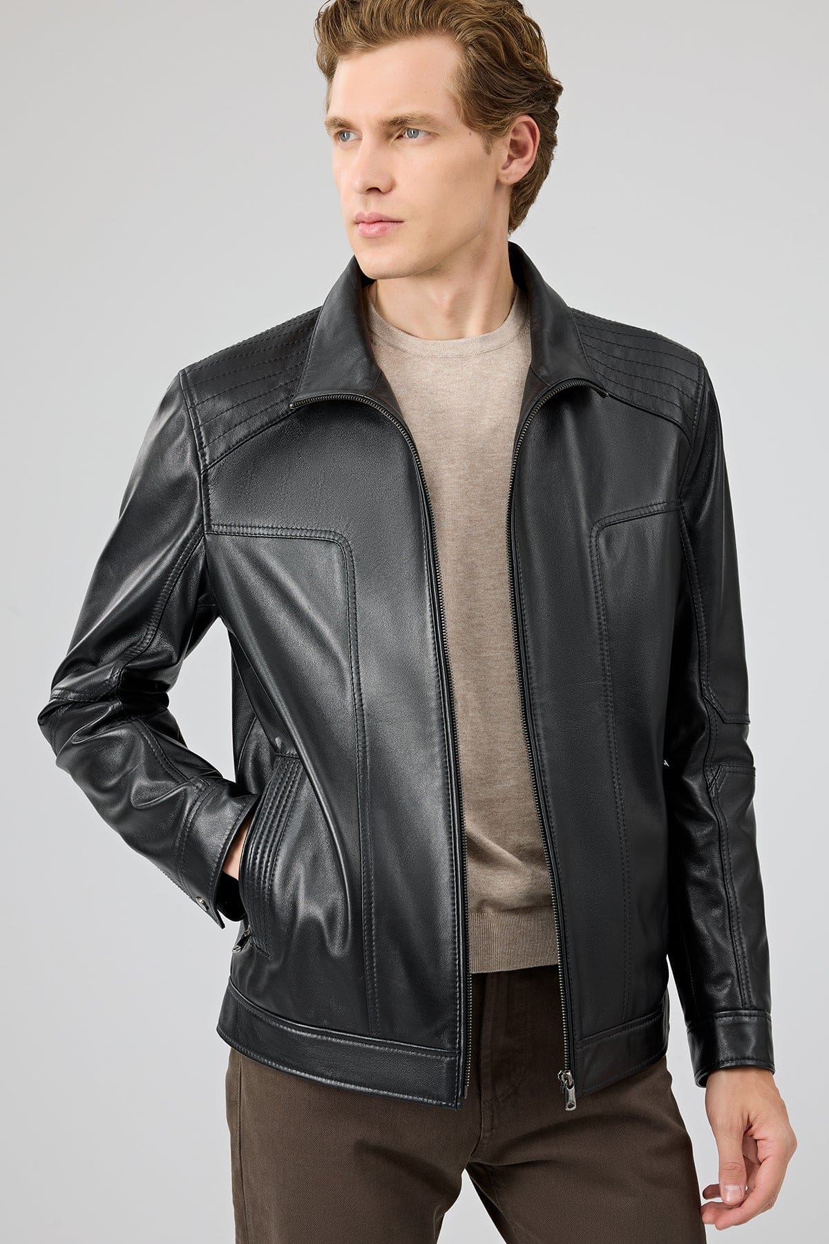کاپشن چرمی مردانه مشکی Alfred دری مد