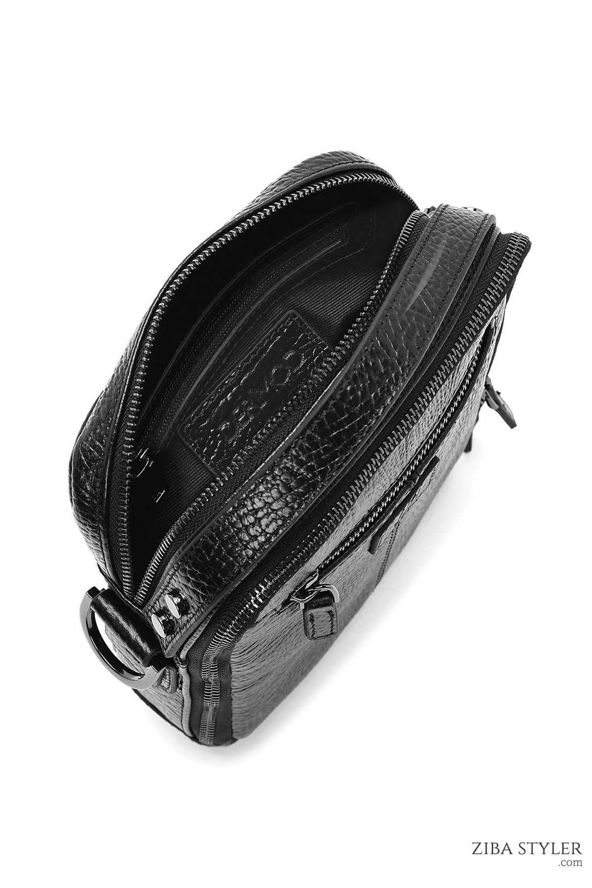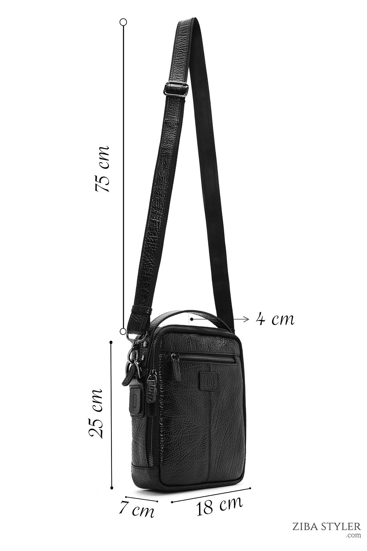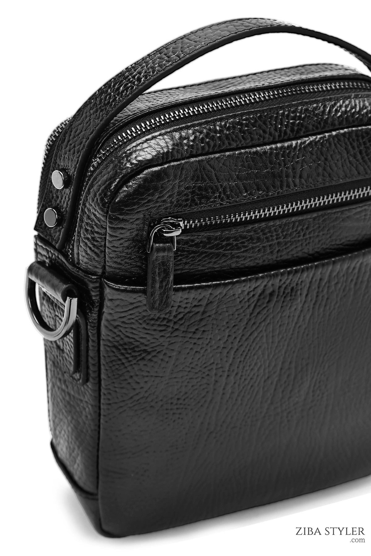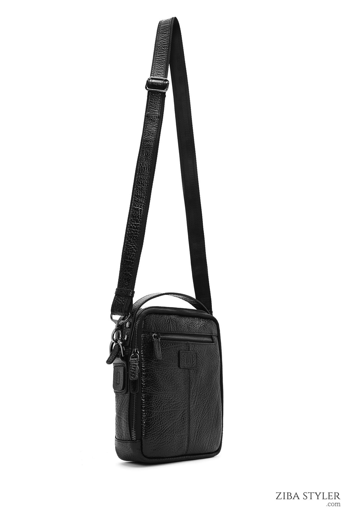 کیف دوشی چرمی مردانه مشکی بند بلند دری مد