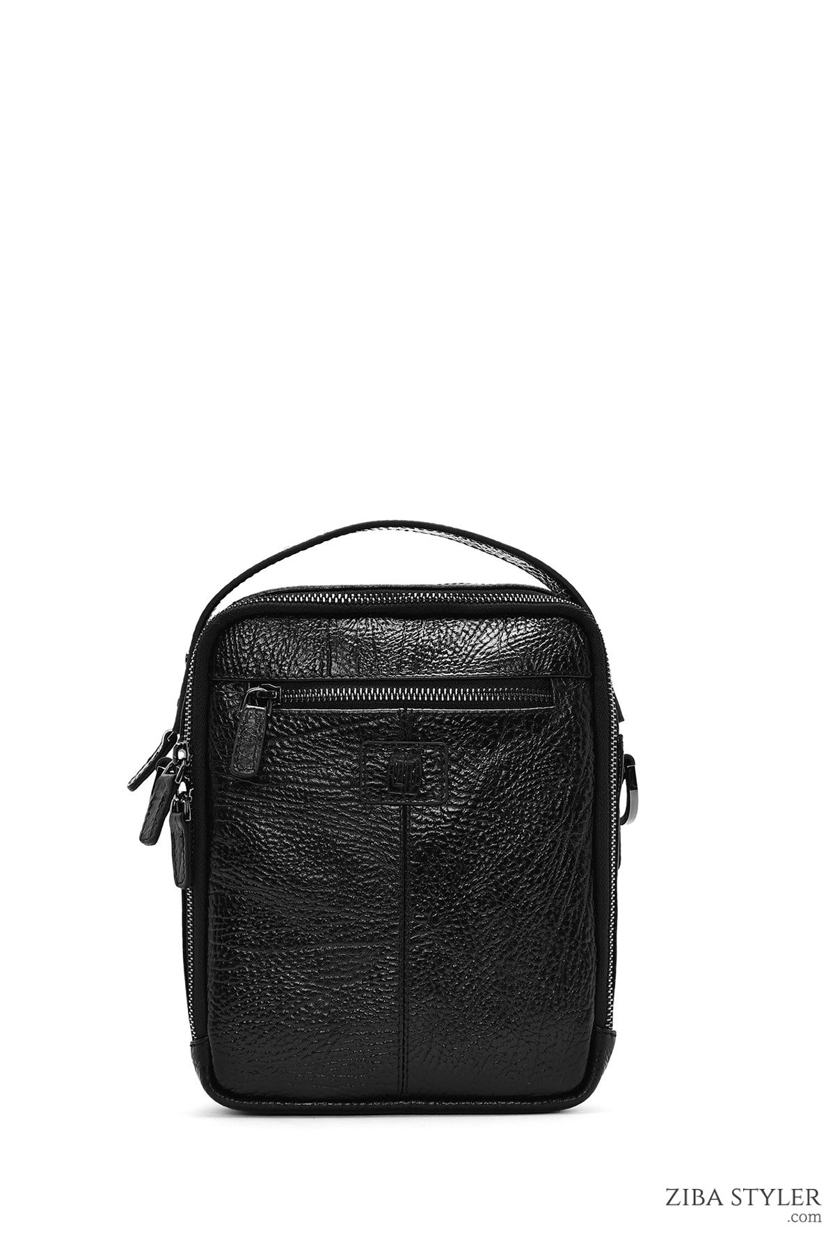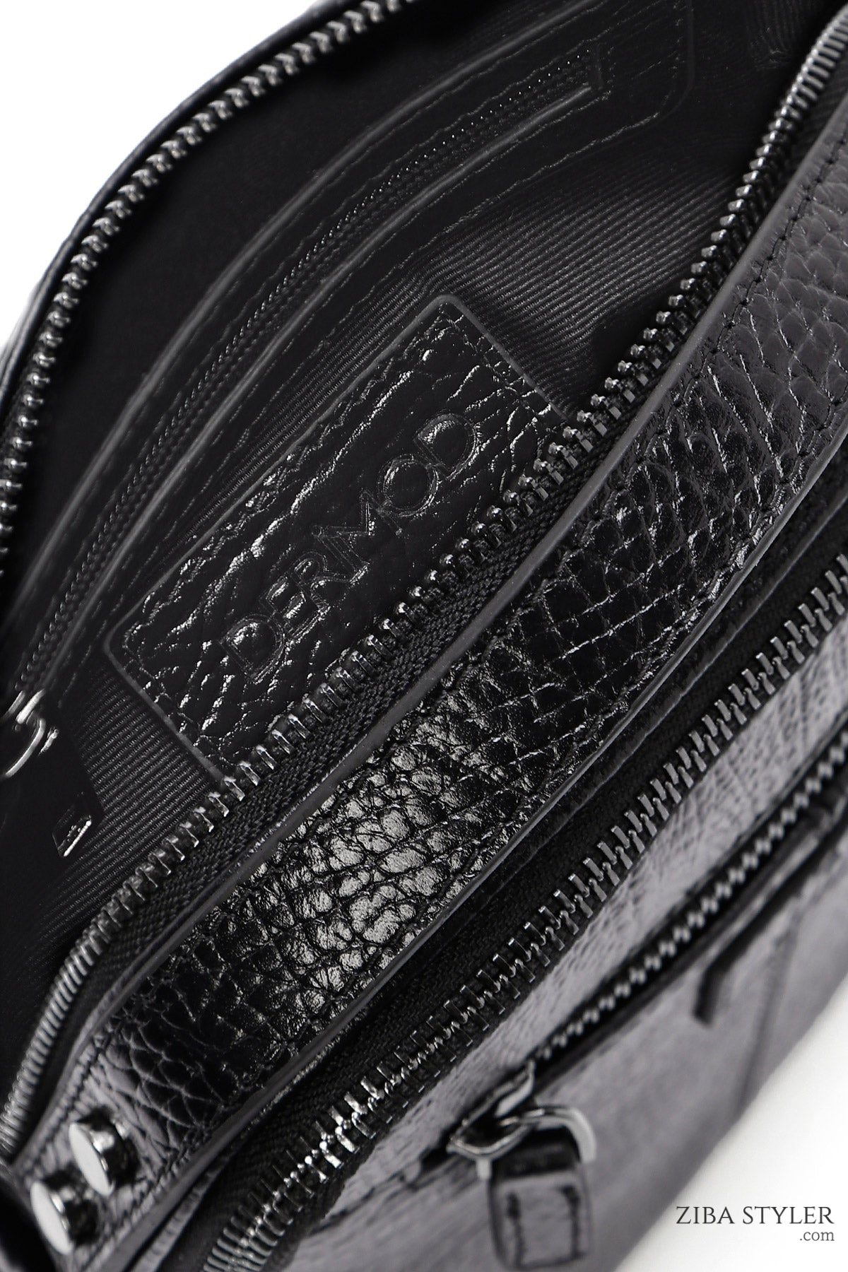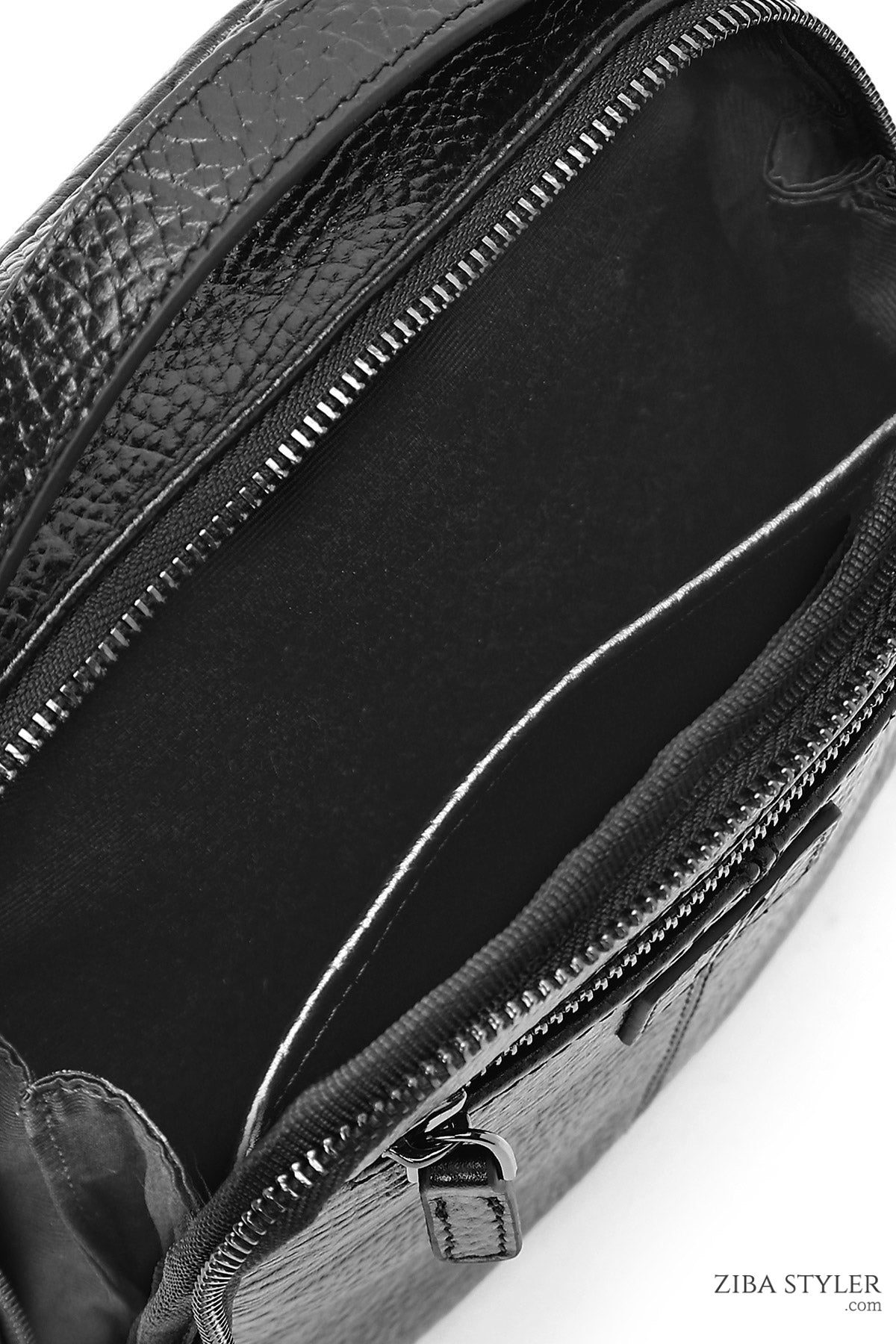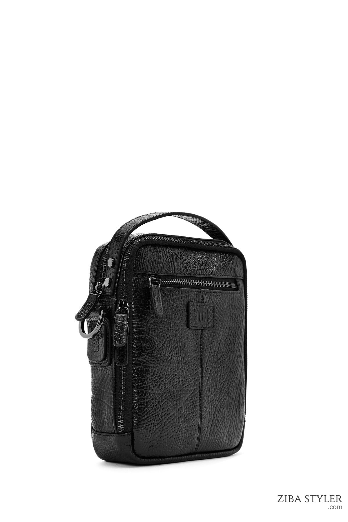 کیف دوشی چرمی مردانه مشکی بند بلند دری مد