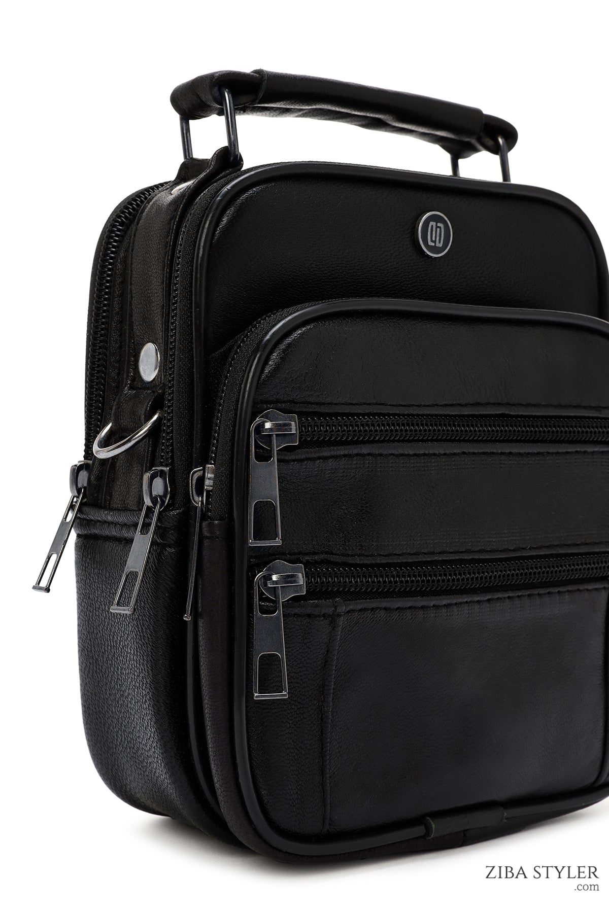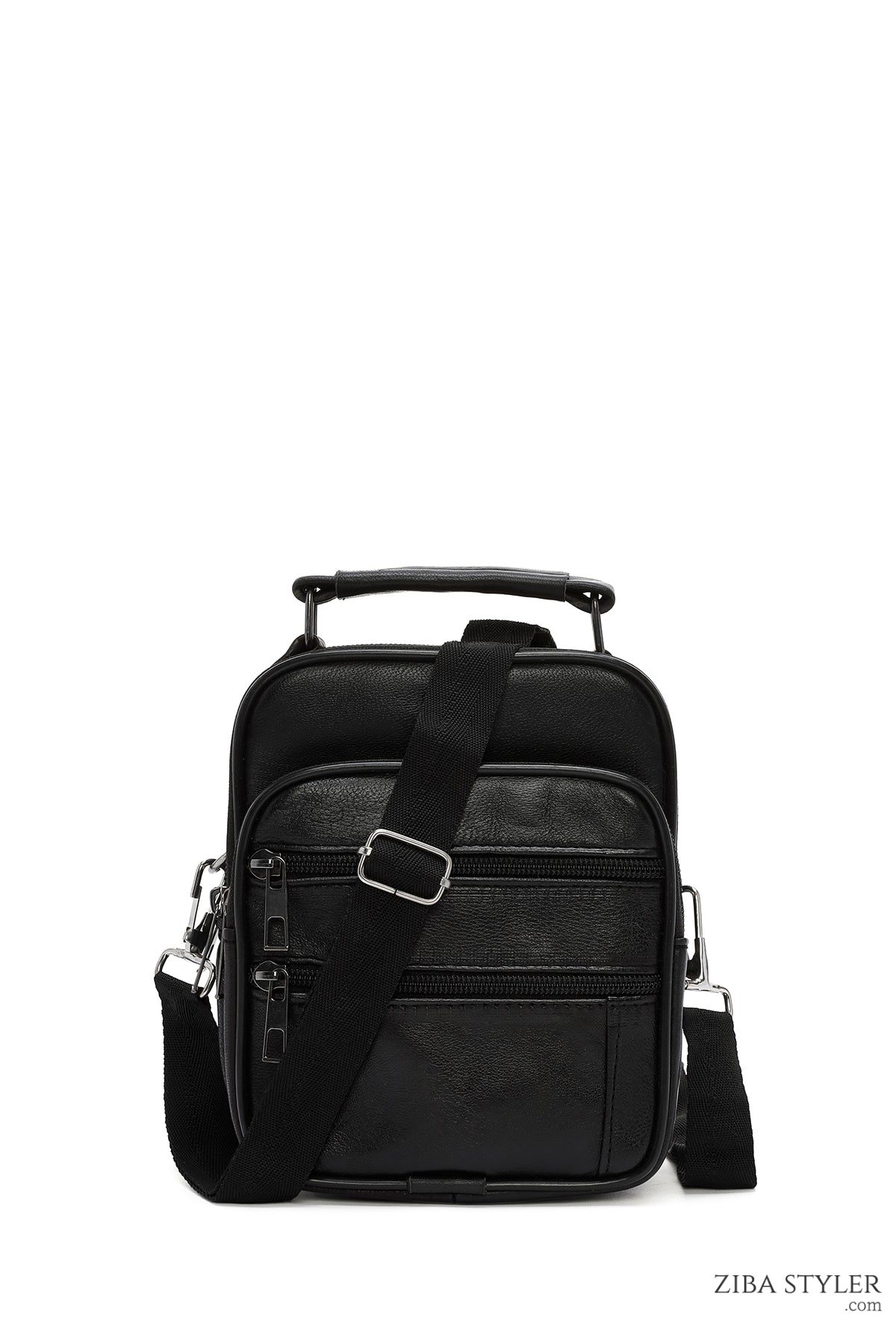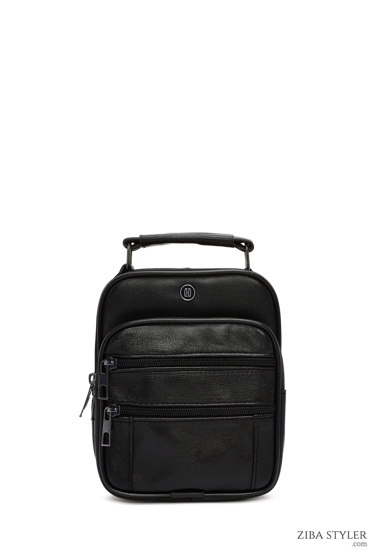 کیف دستی چرمی مردانه مشکی بند بلند دری مد