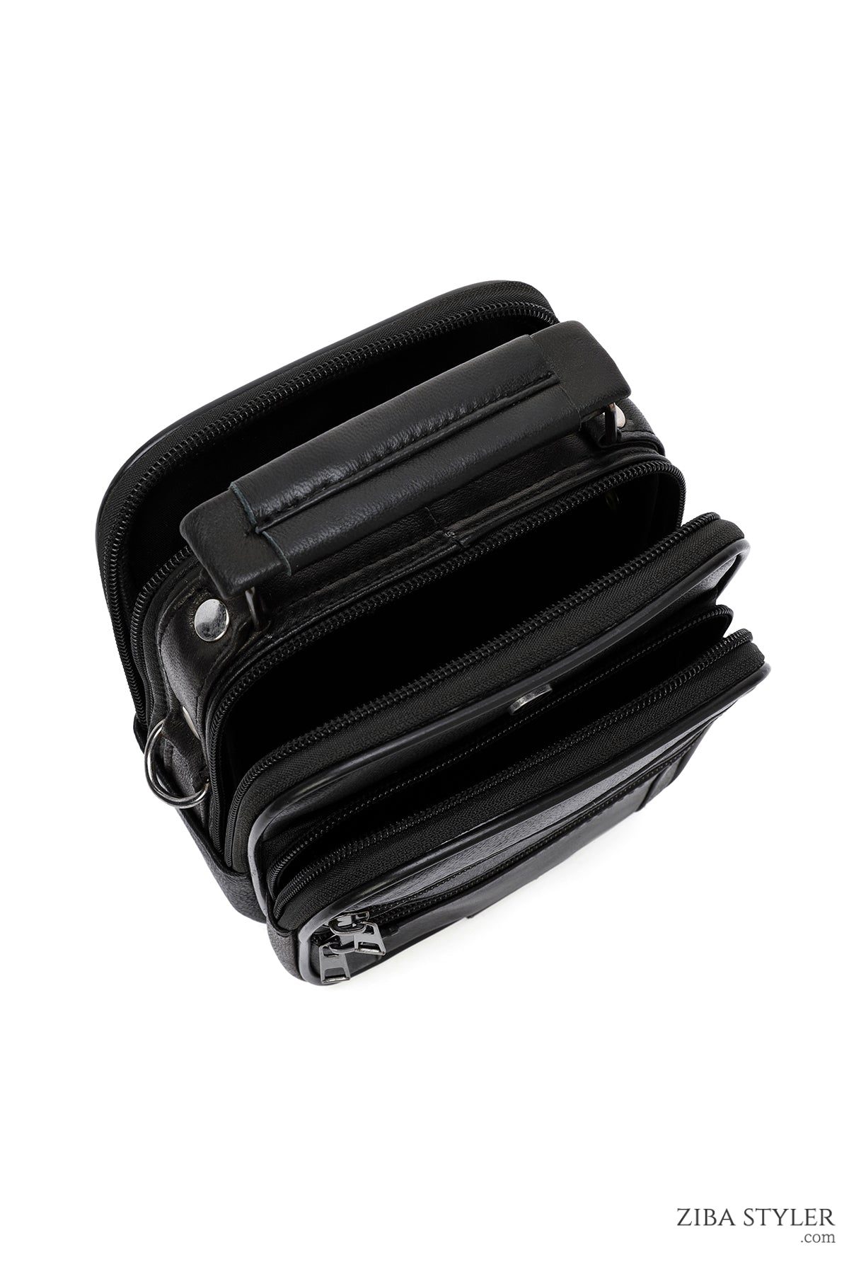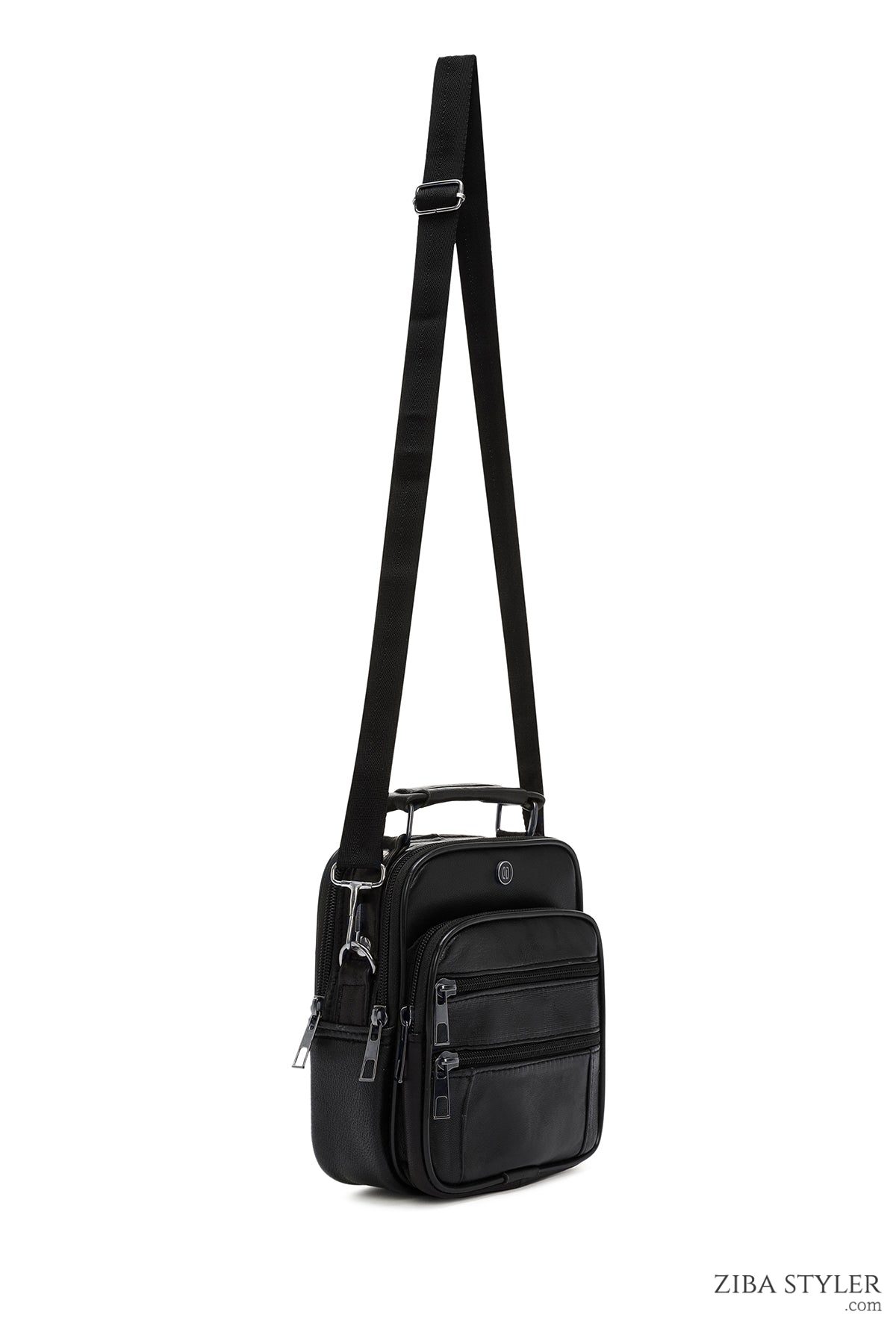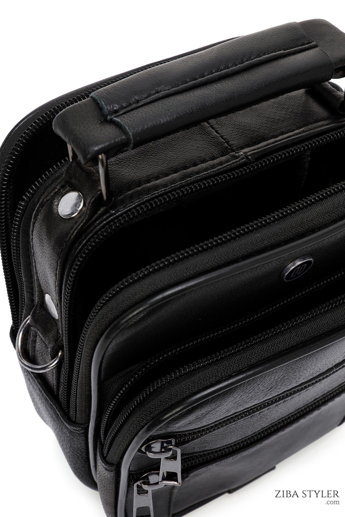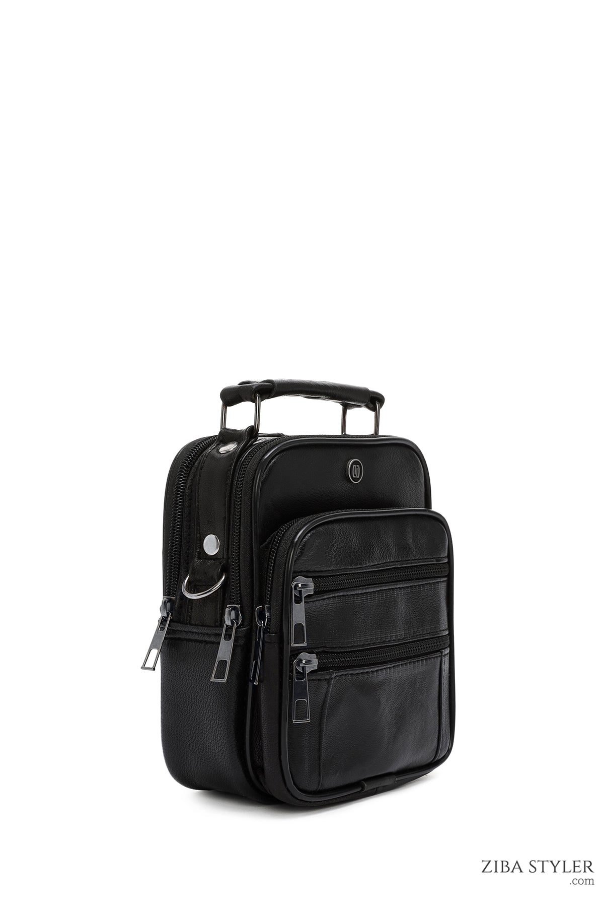 کیف دستی چرمی مردانه مشکی بند بلند دری مد