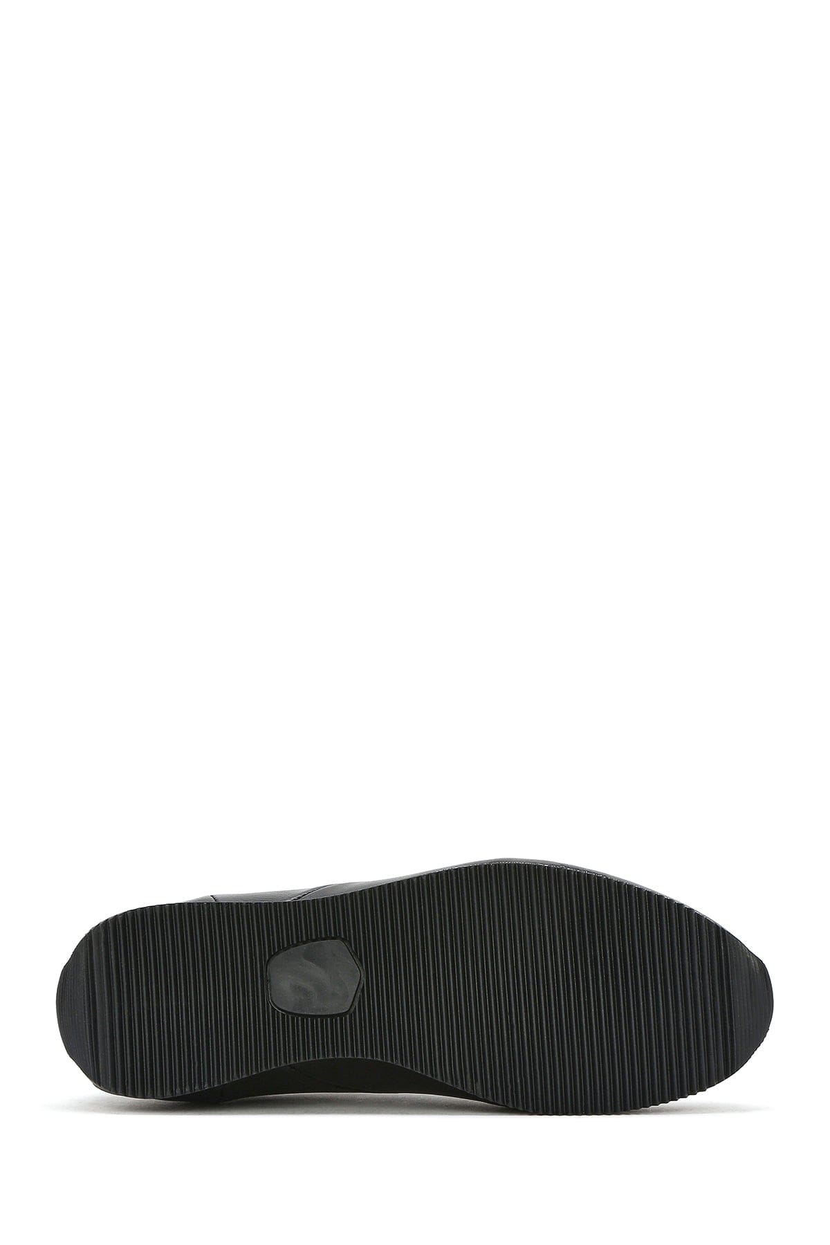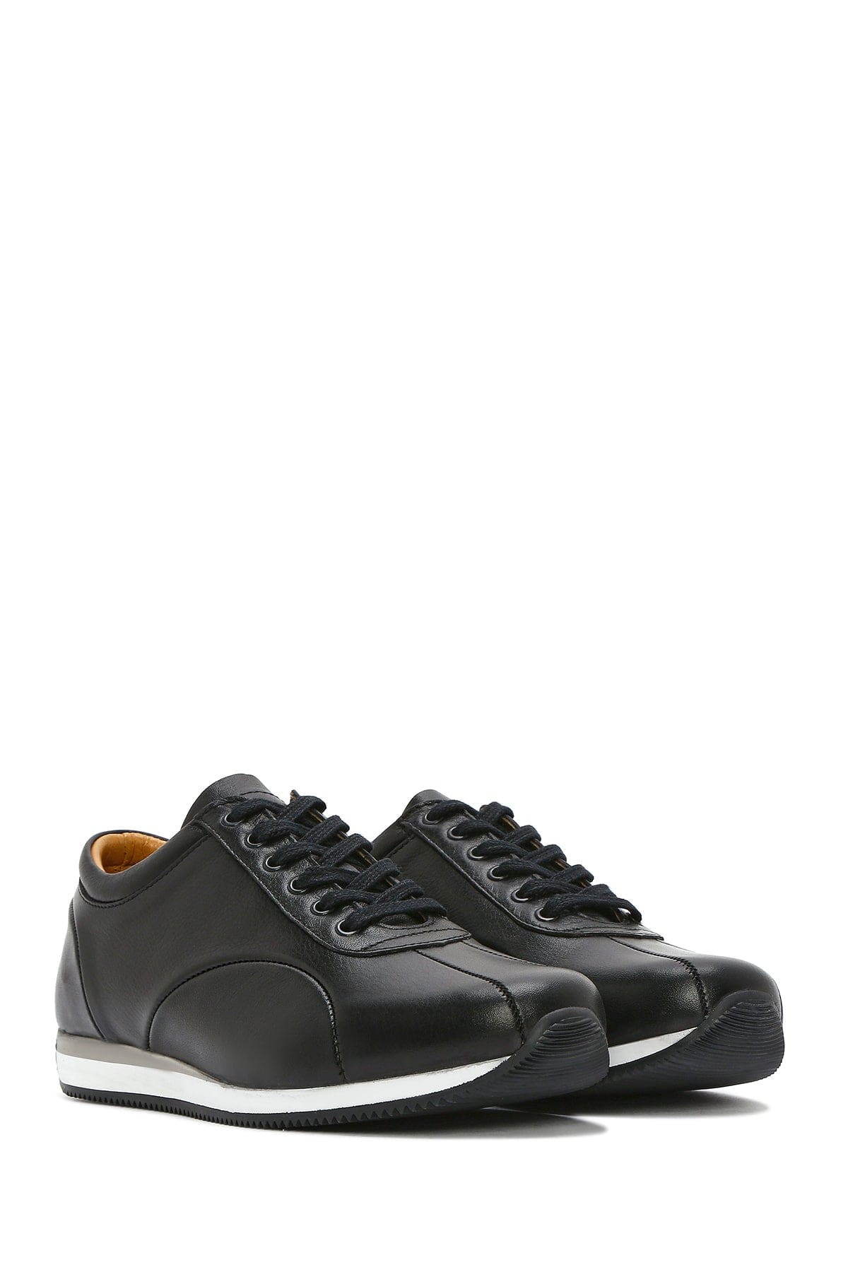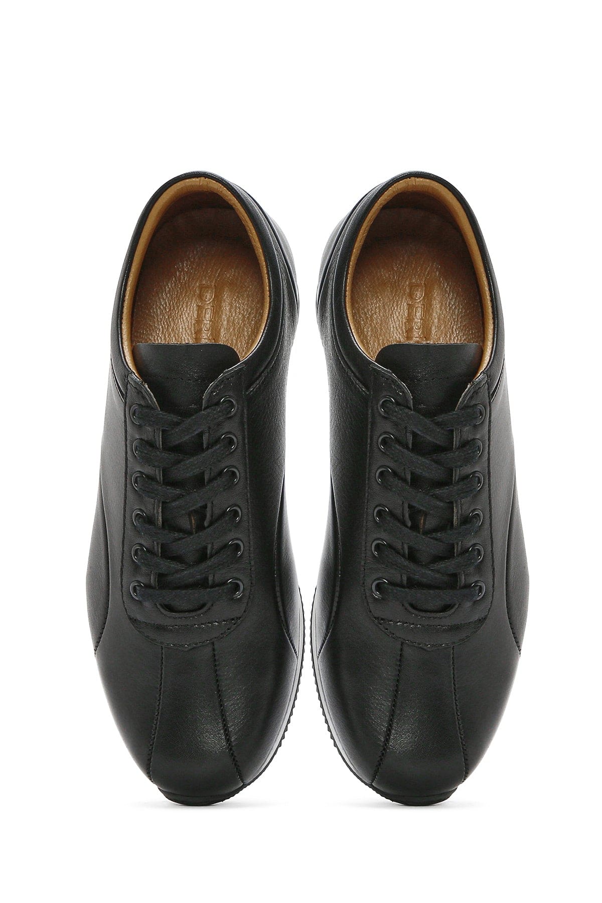 Erkek Siyah Bağcıklı Deri Casual Sneaker