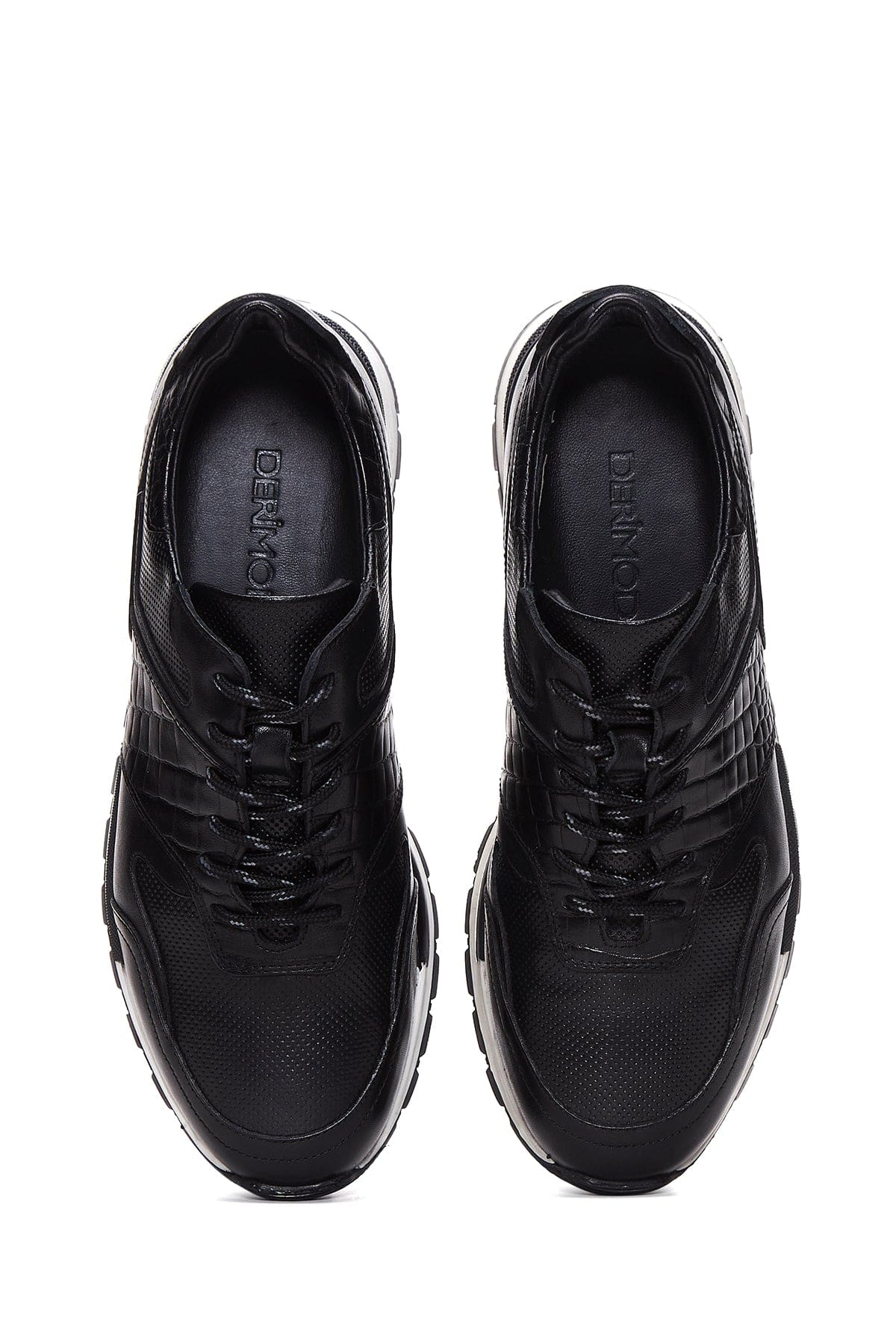 Erkek Siyah Bağcıklı Deri Casual Sneaker