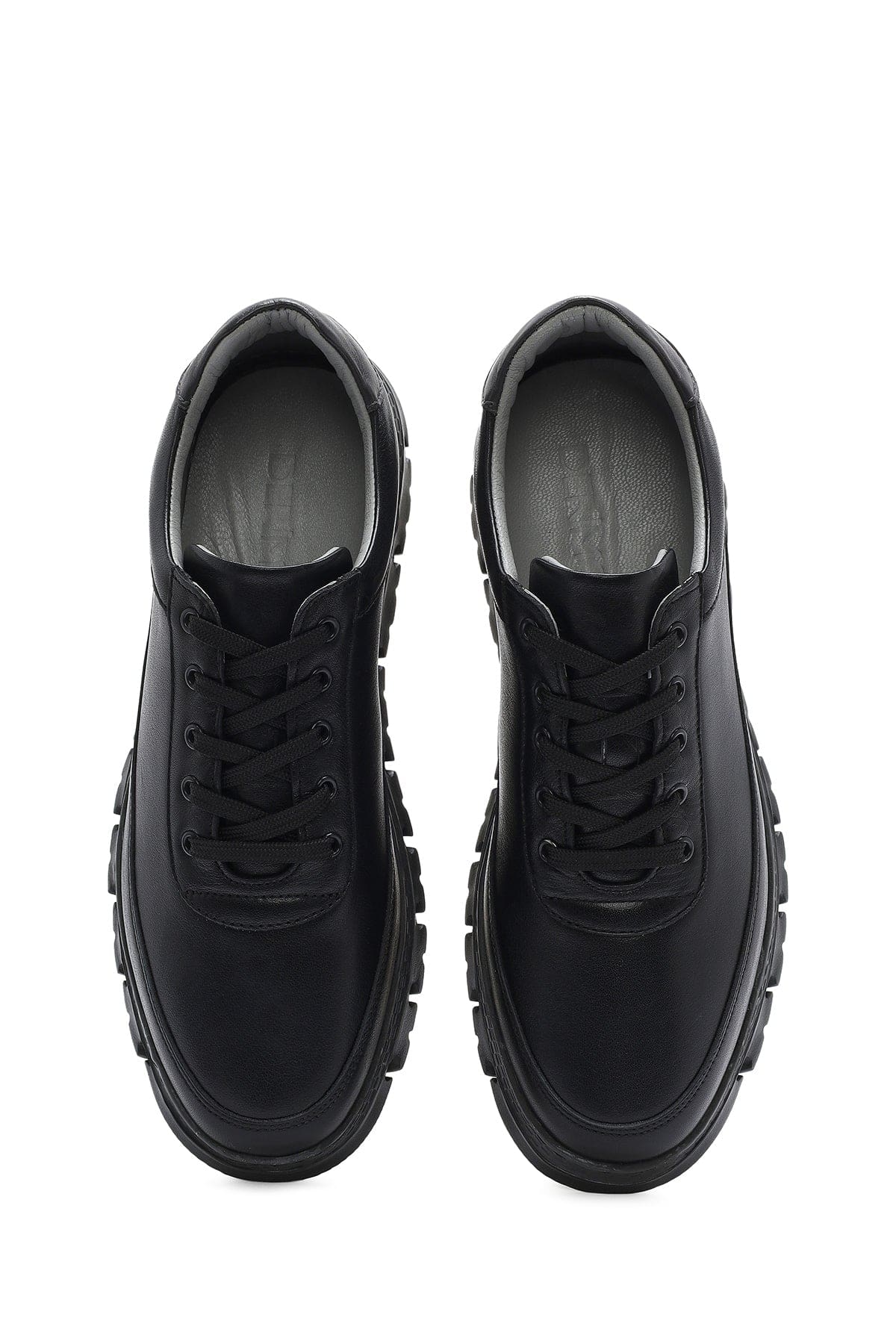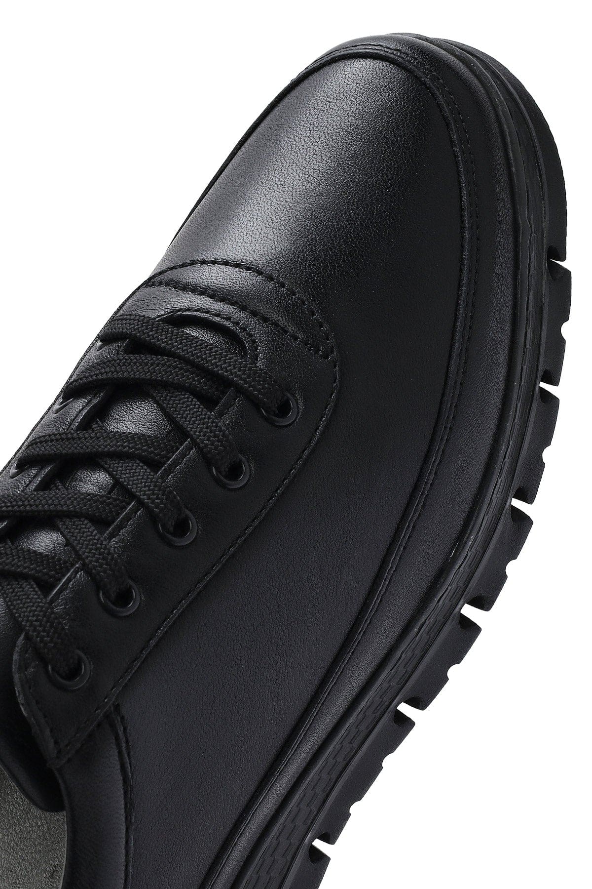 Erkek Siyah Bağcıklı Deri Casual Sneaker