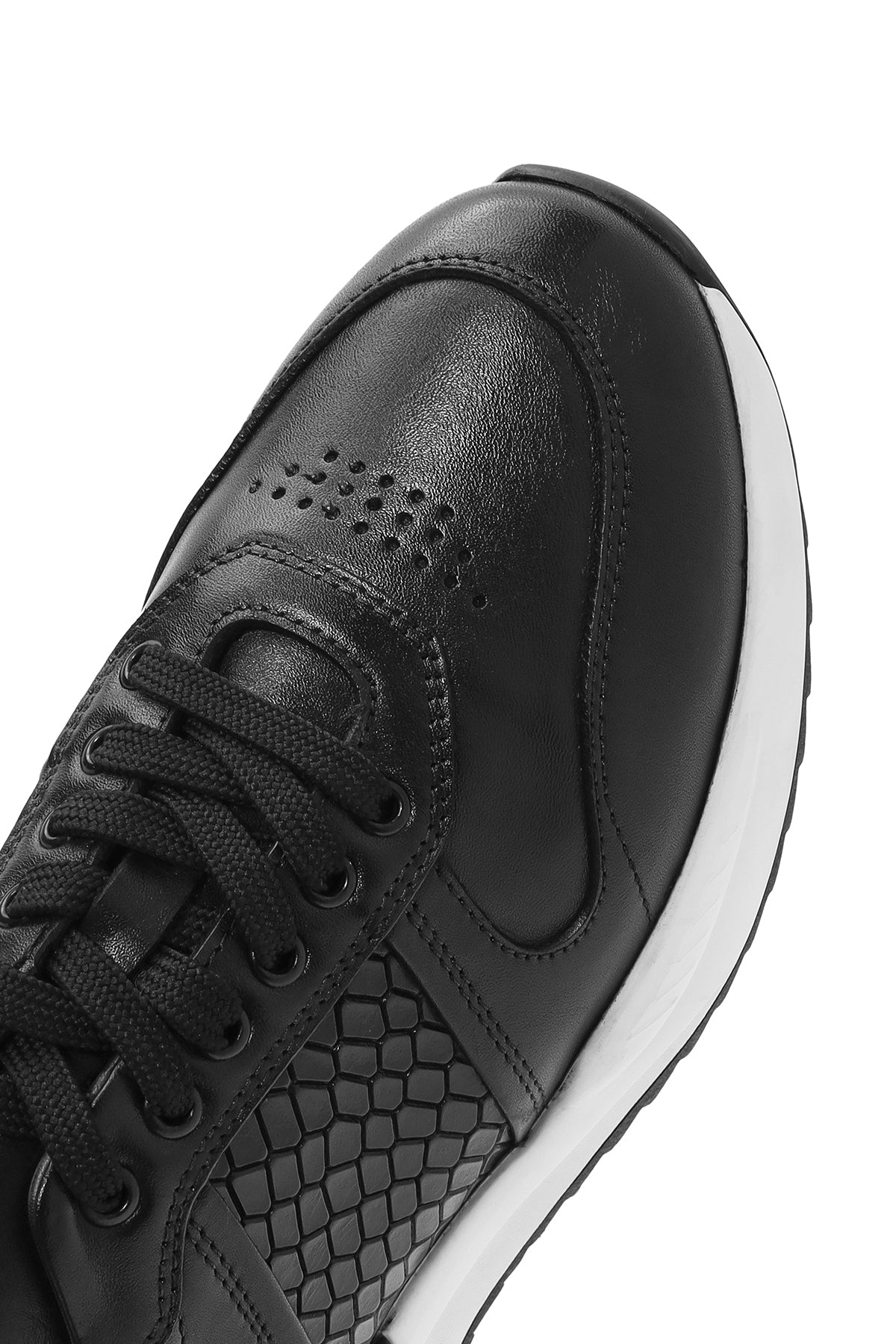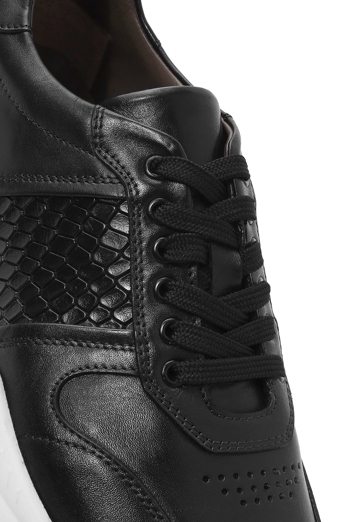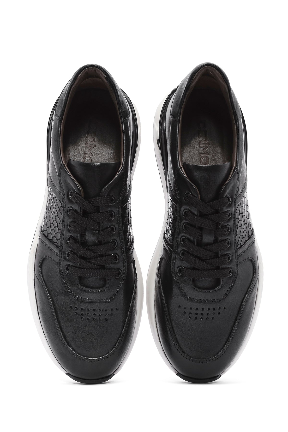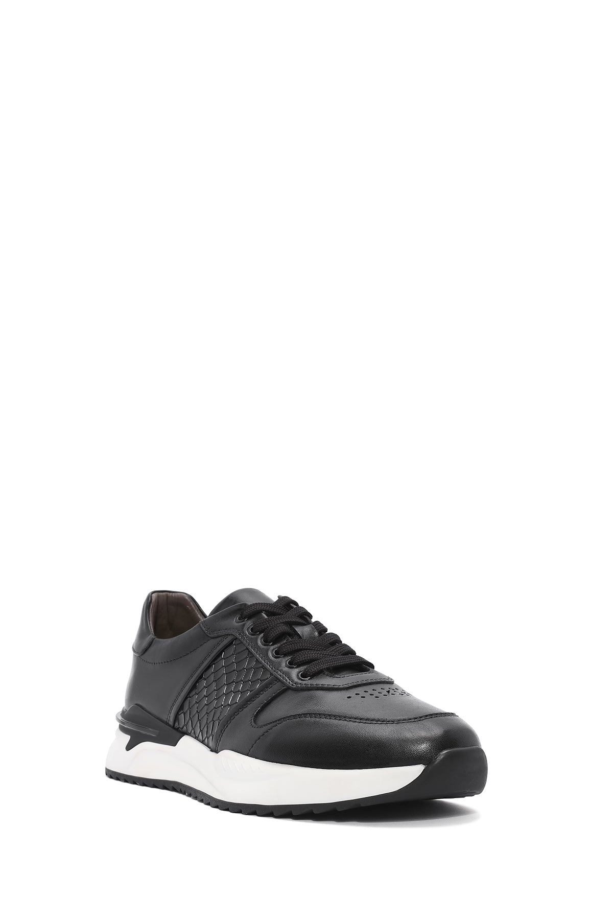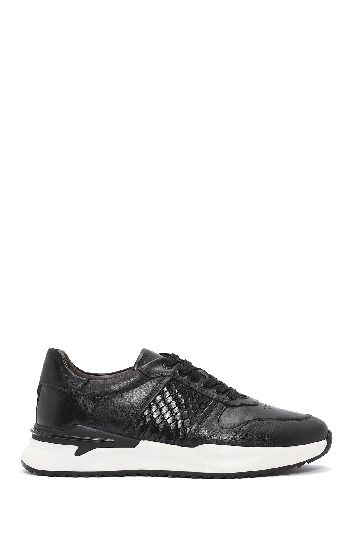 Erkek Siyah Bağcıklı Deri Casual Sneaker