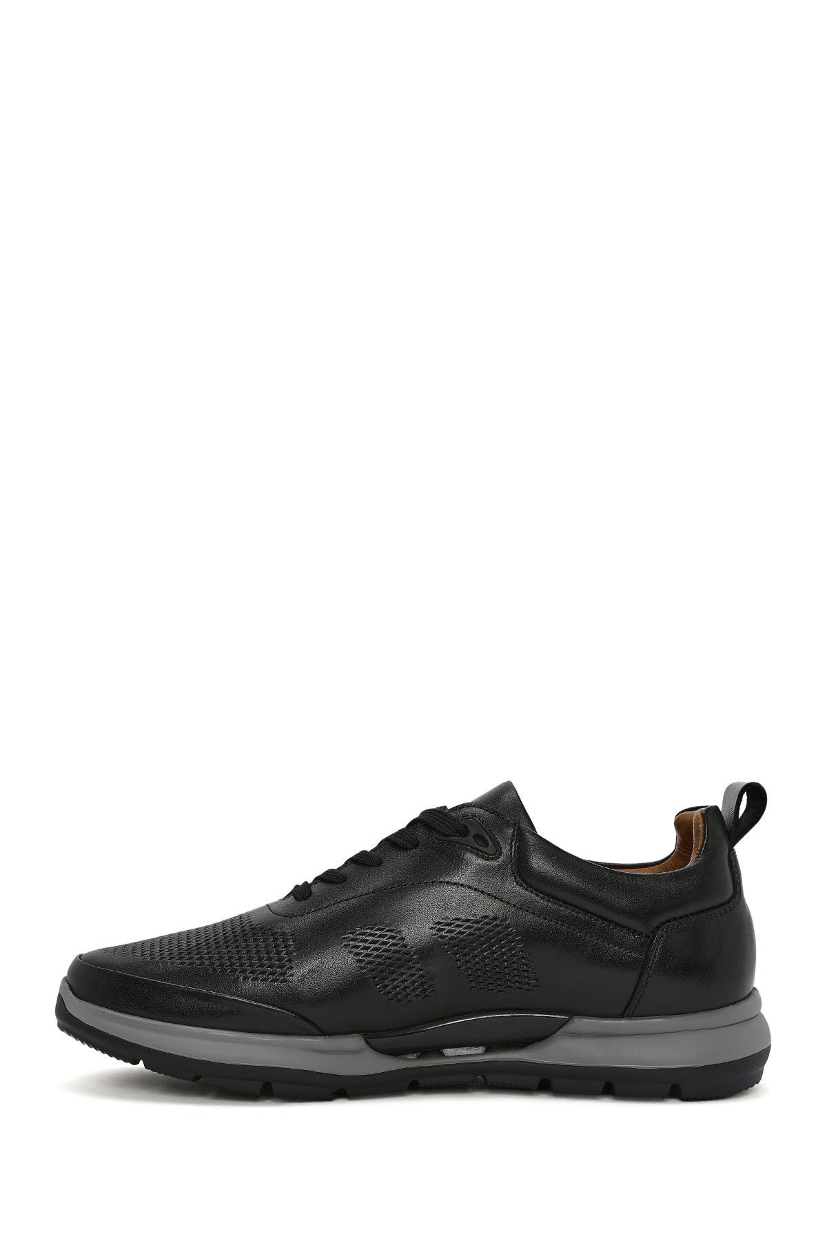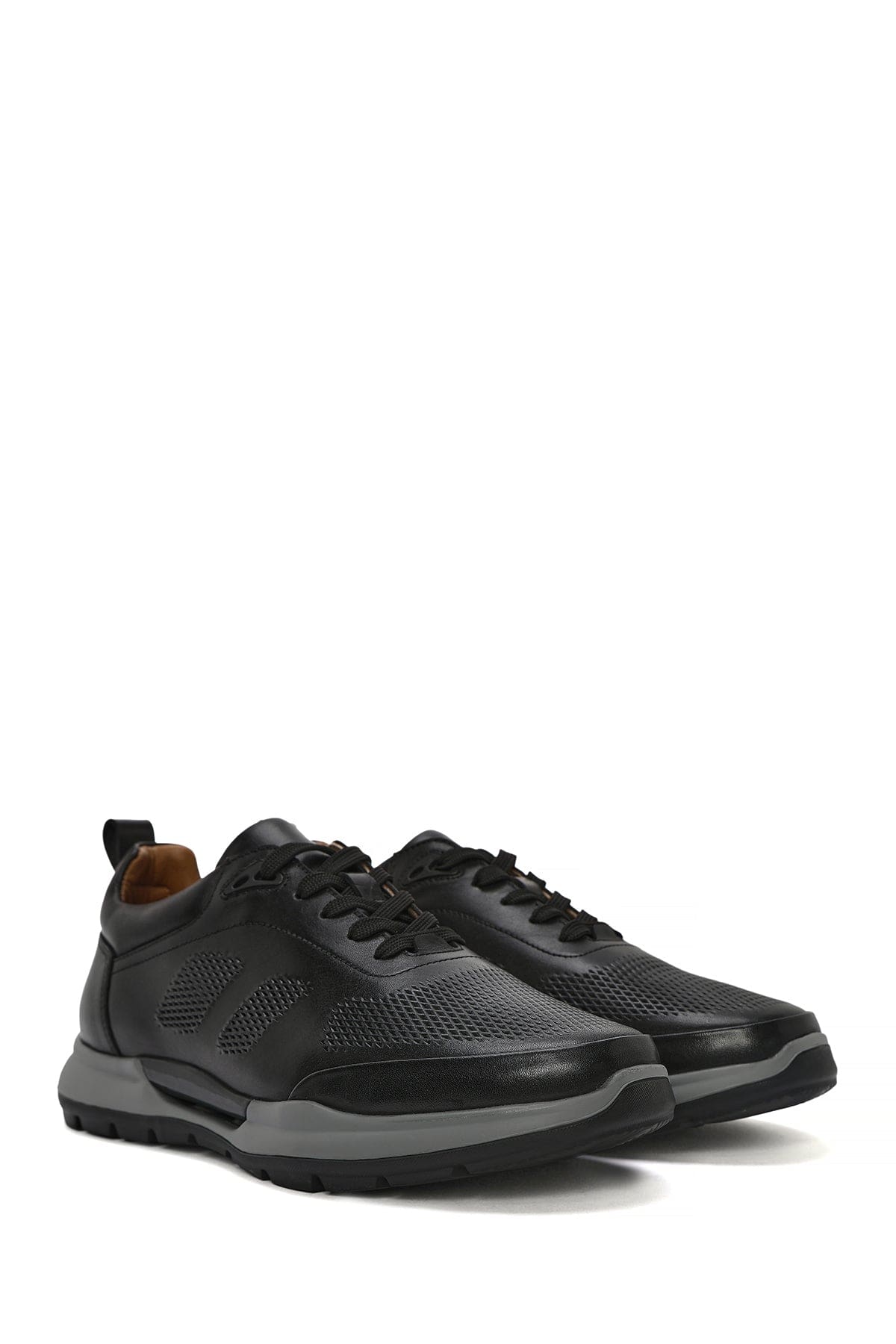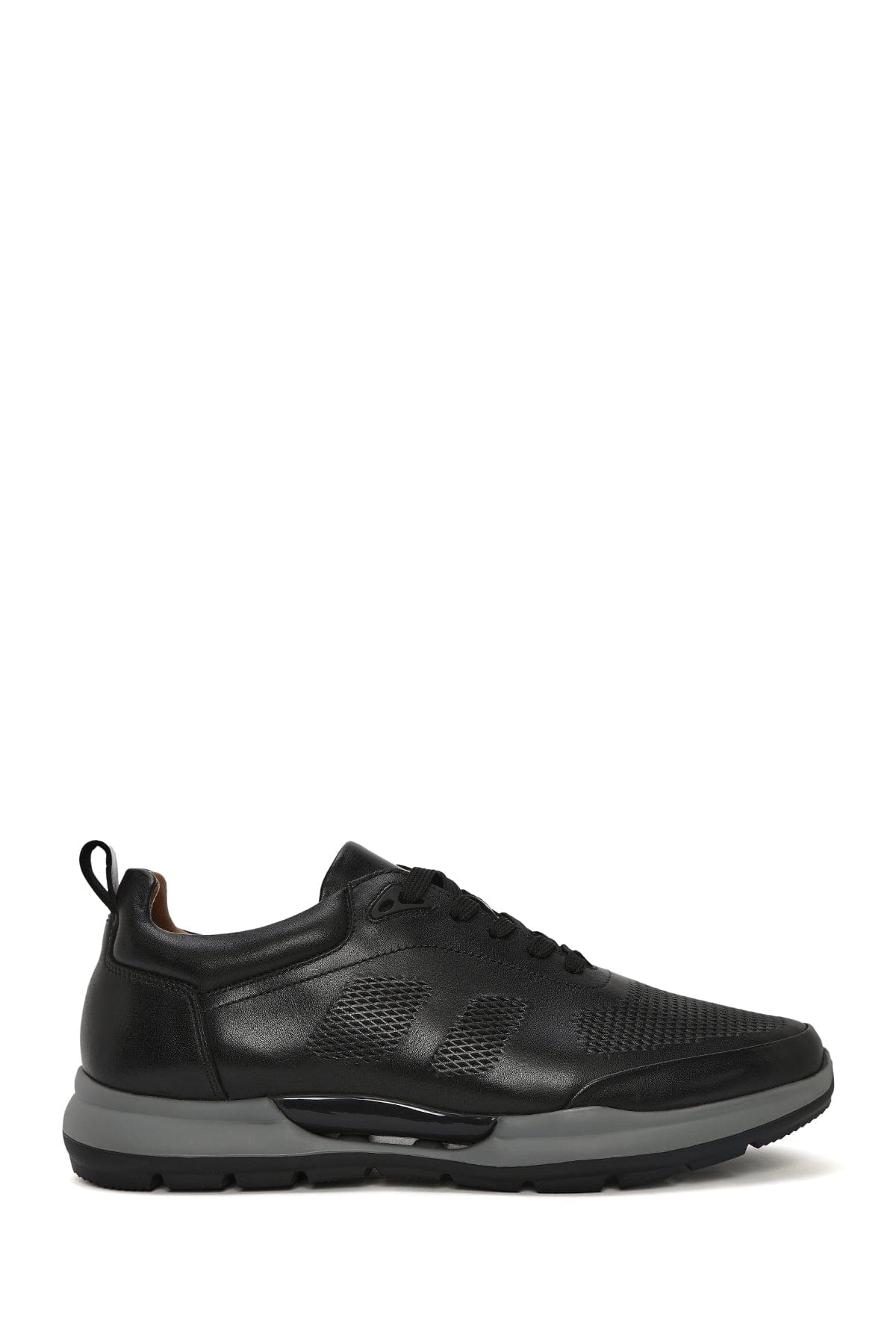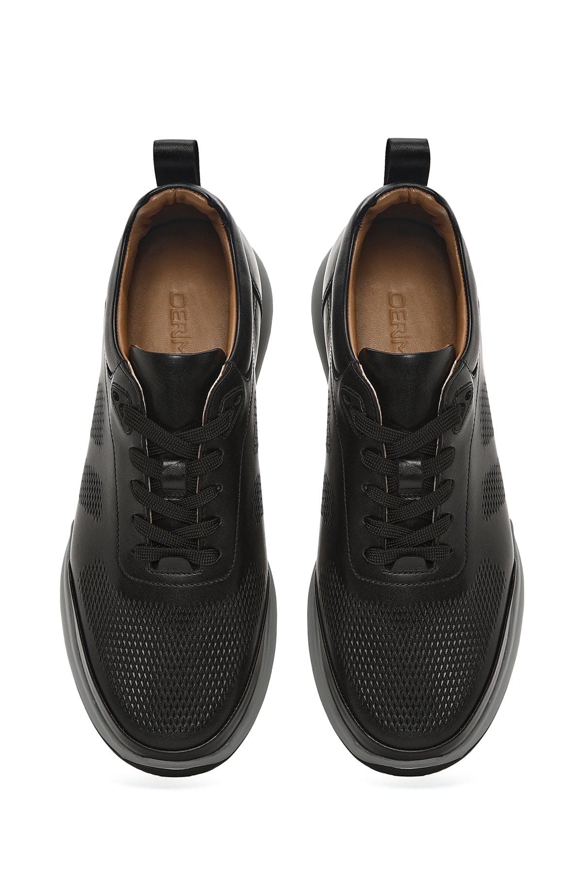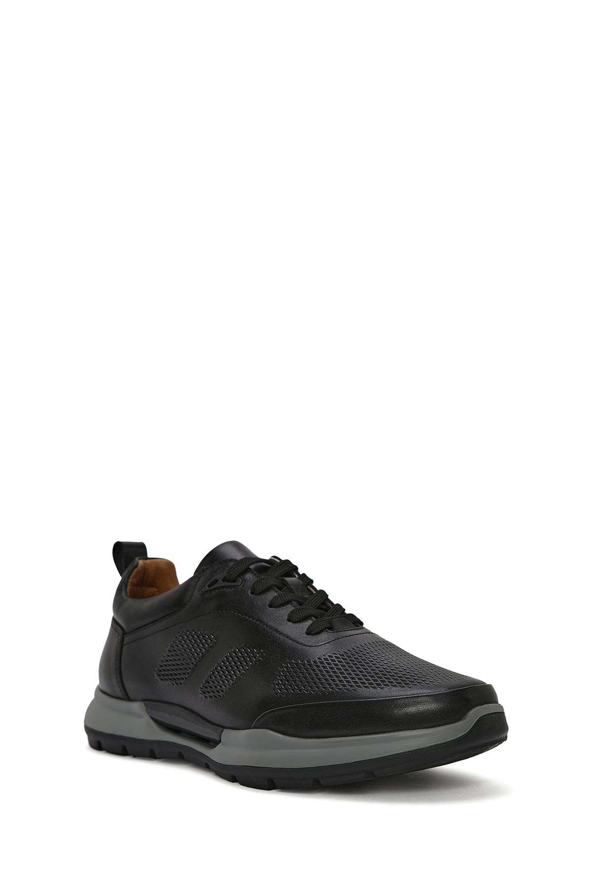 Erkek Siyah Bağcıklı Deri Casual Sneaker