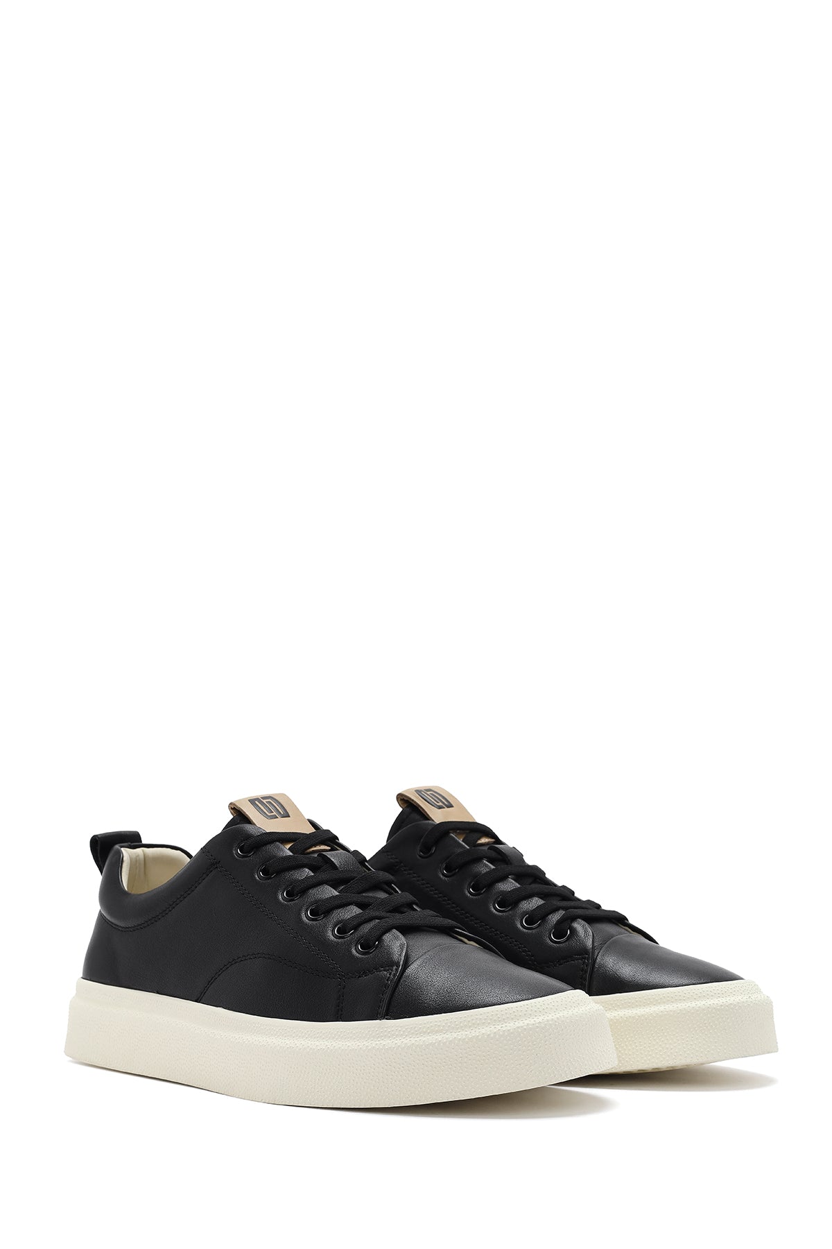 Erkek Siyah Bağcıklı Deri Sneaker