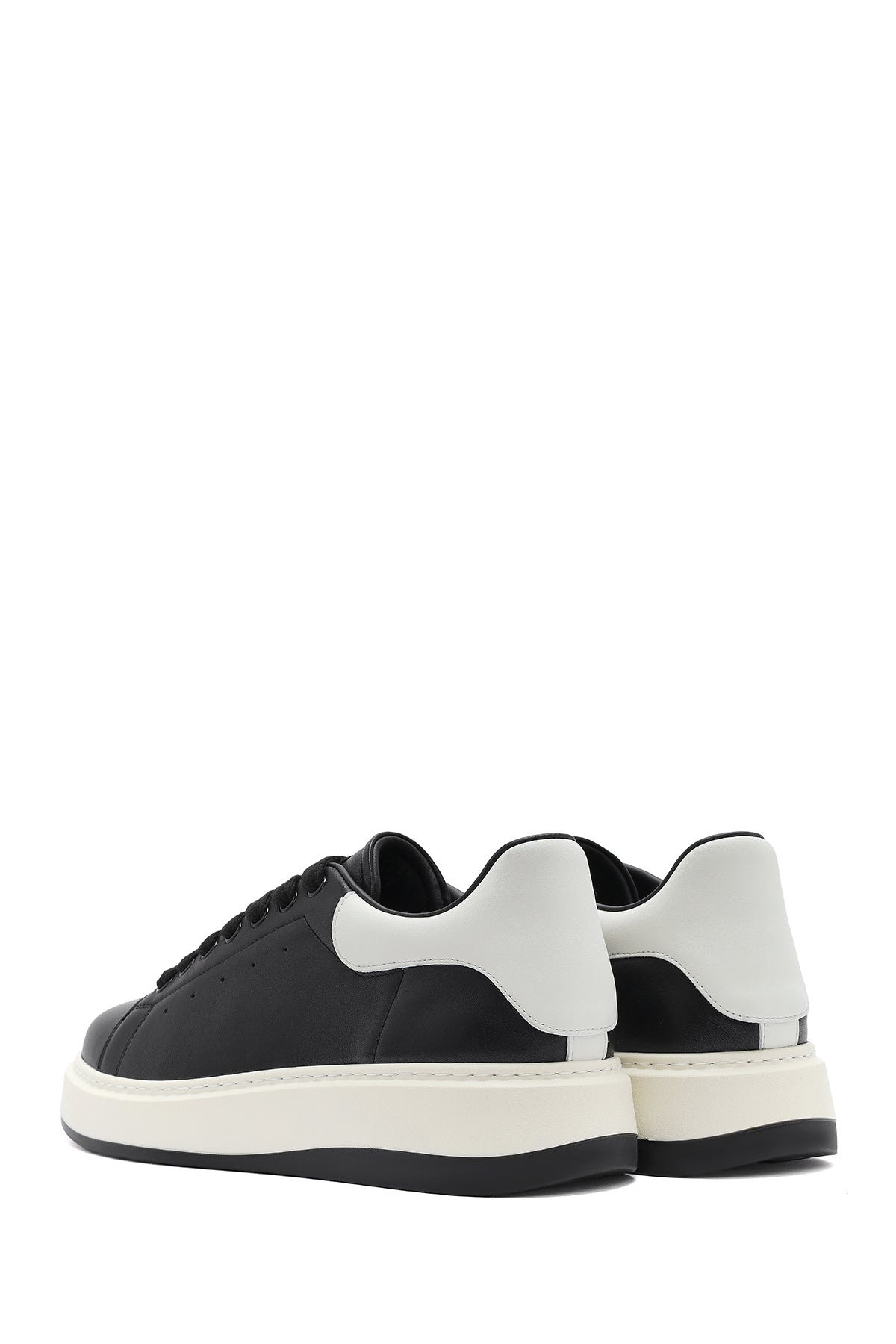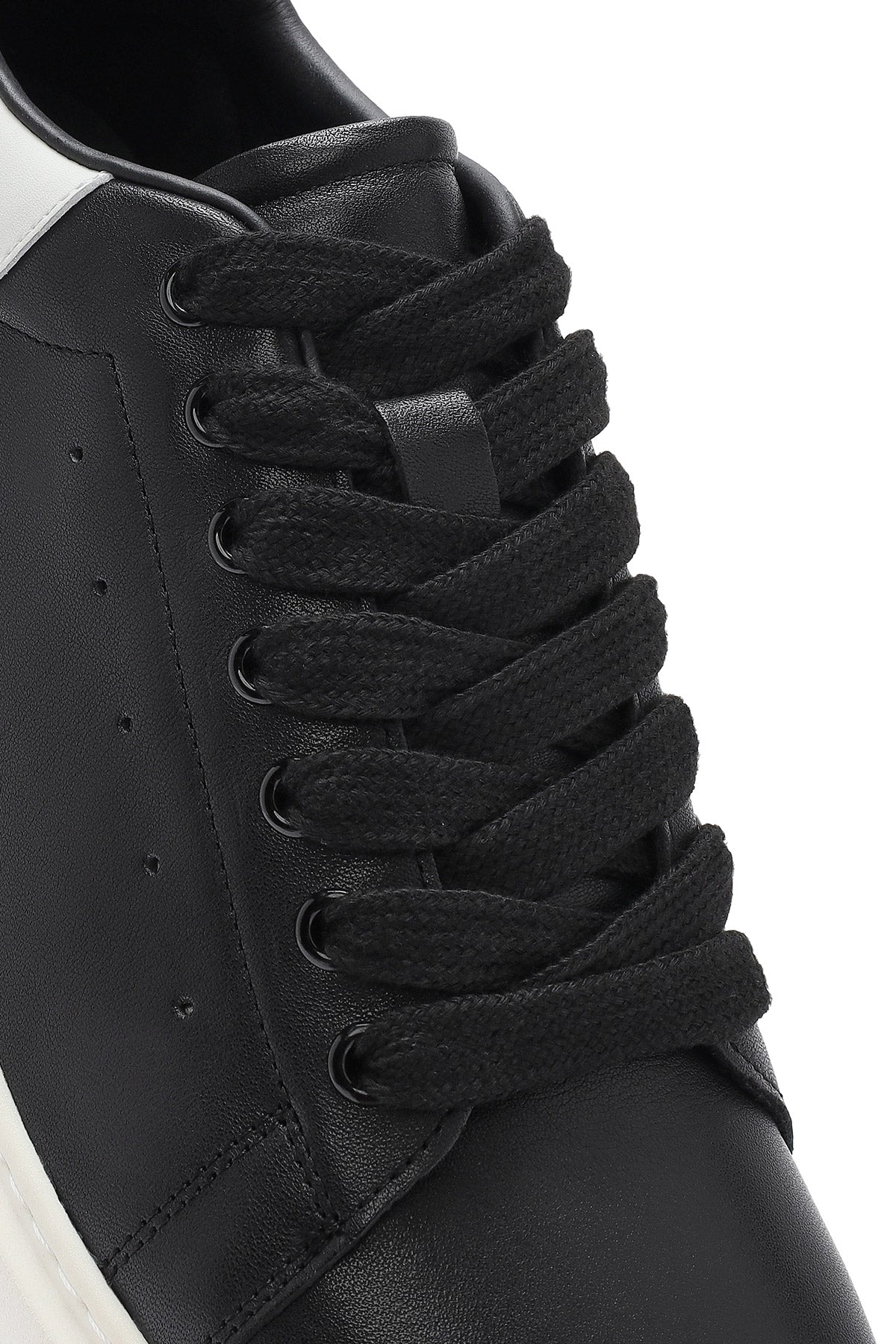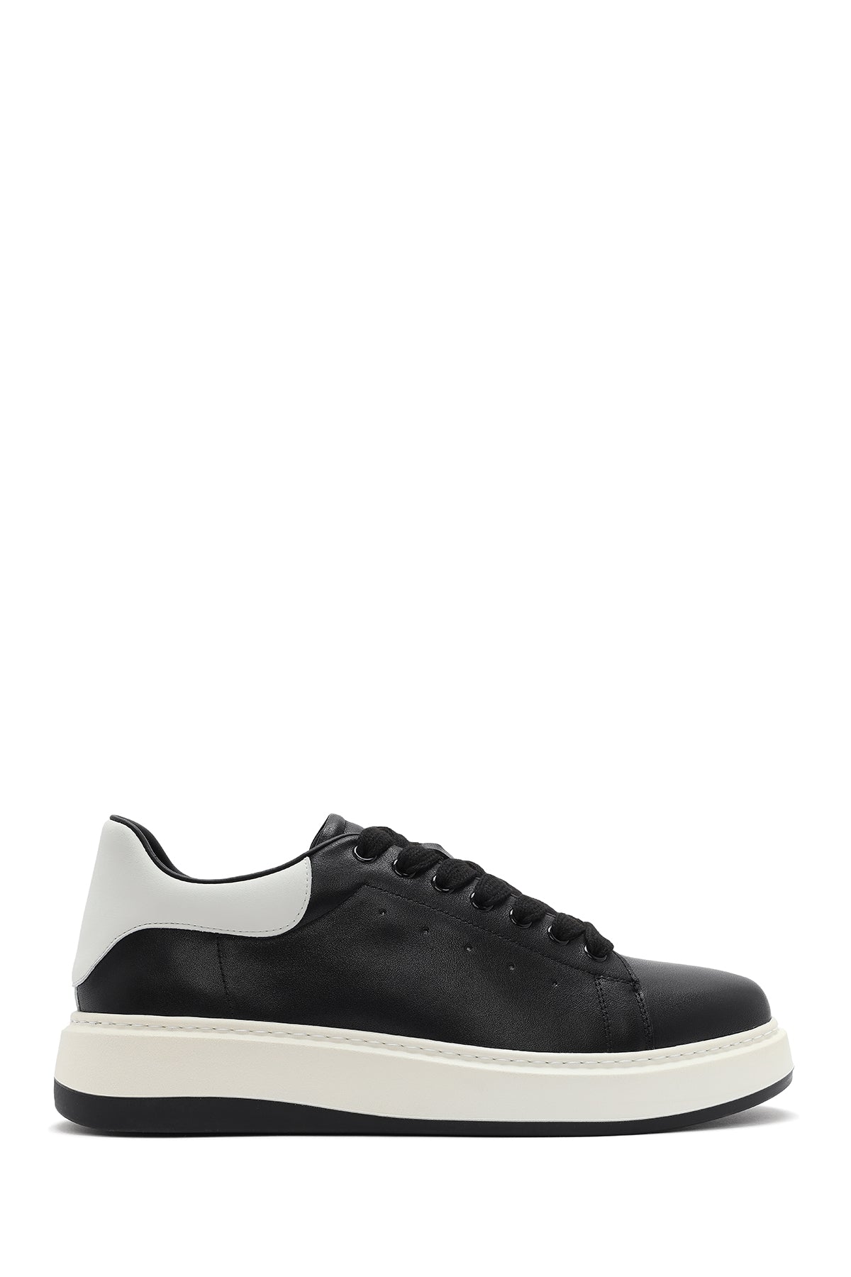 Erkek Siyah Bağcıklı Deri Sneaker