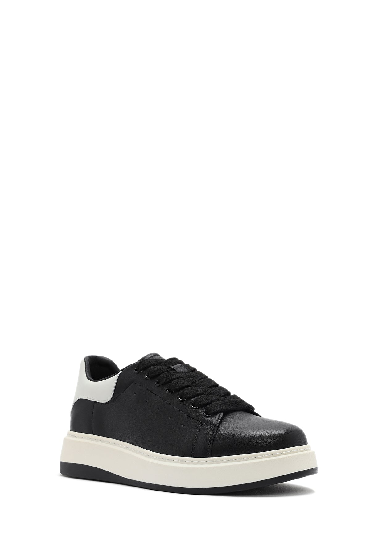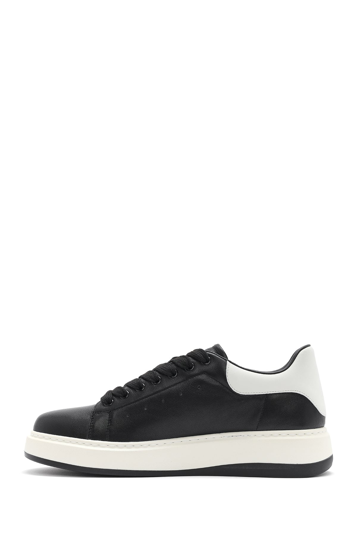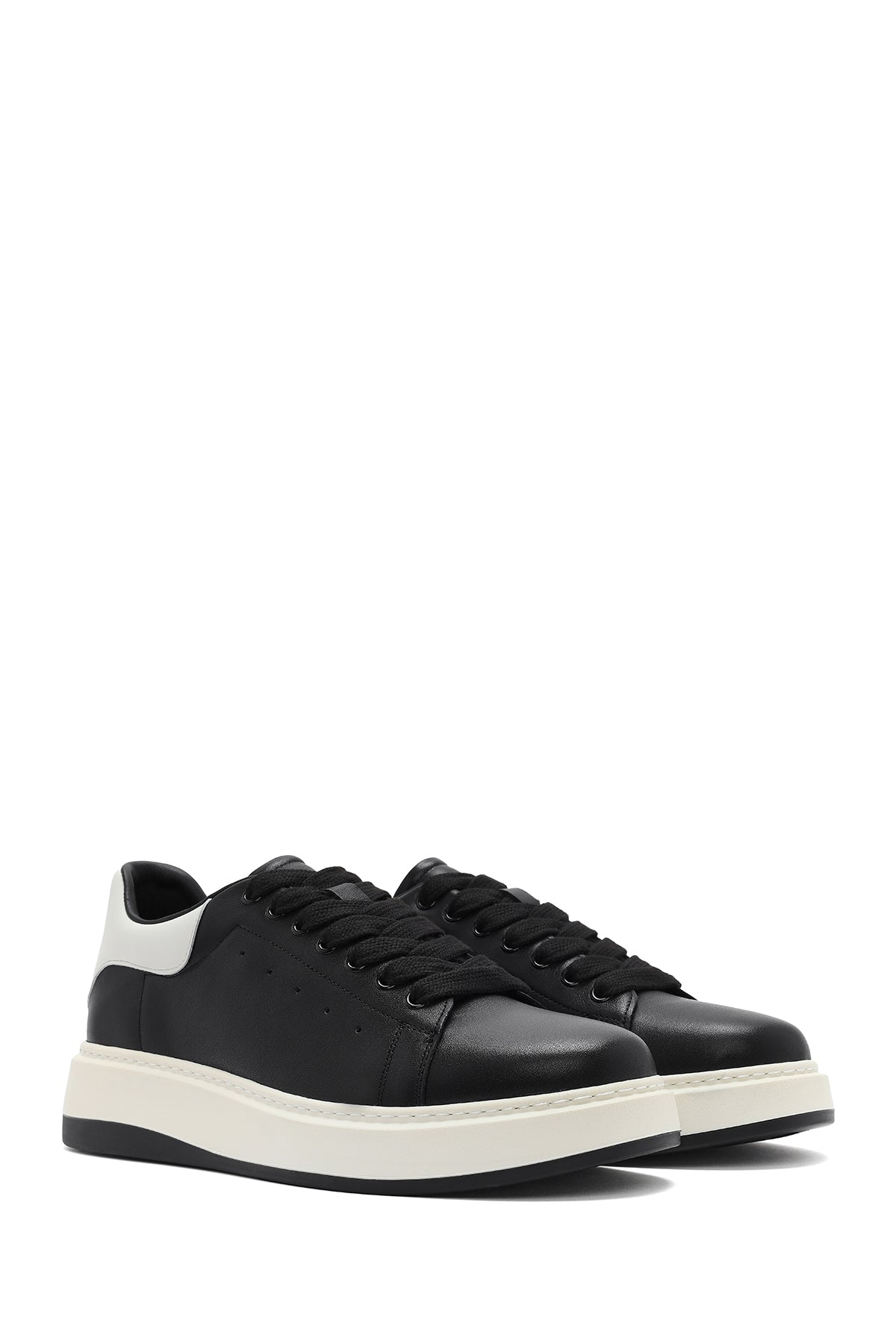 Erkek Siyah Bağcıklı Deri Sneaker