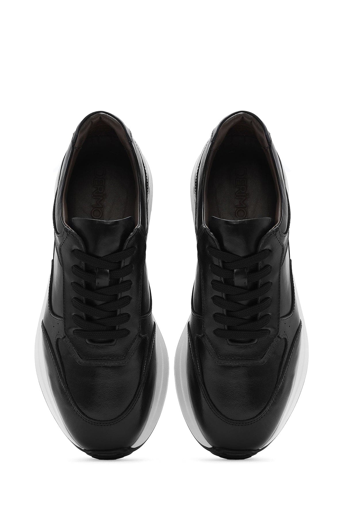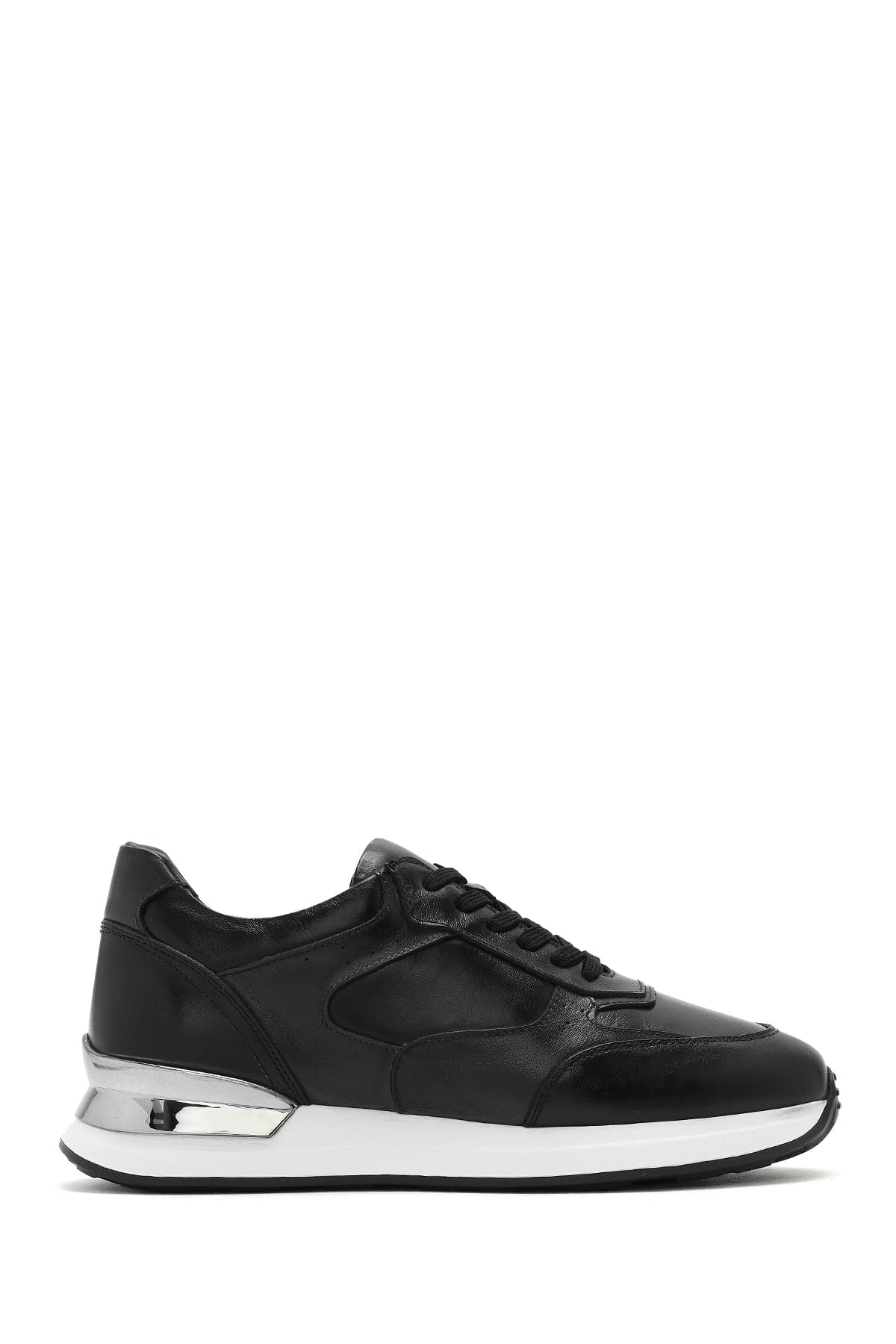 Erkek Siyah Bağcıklı Deri Sneaker