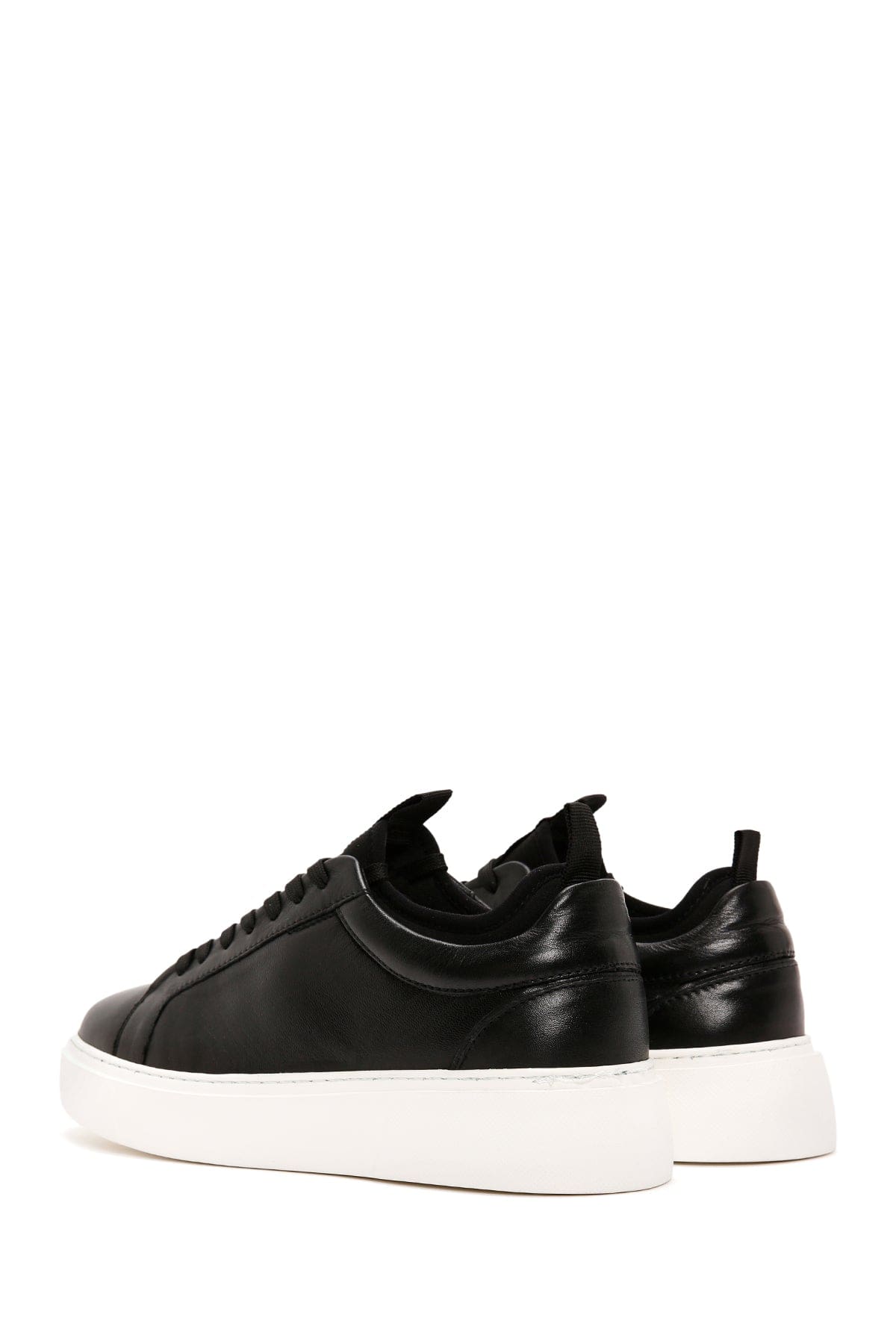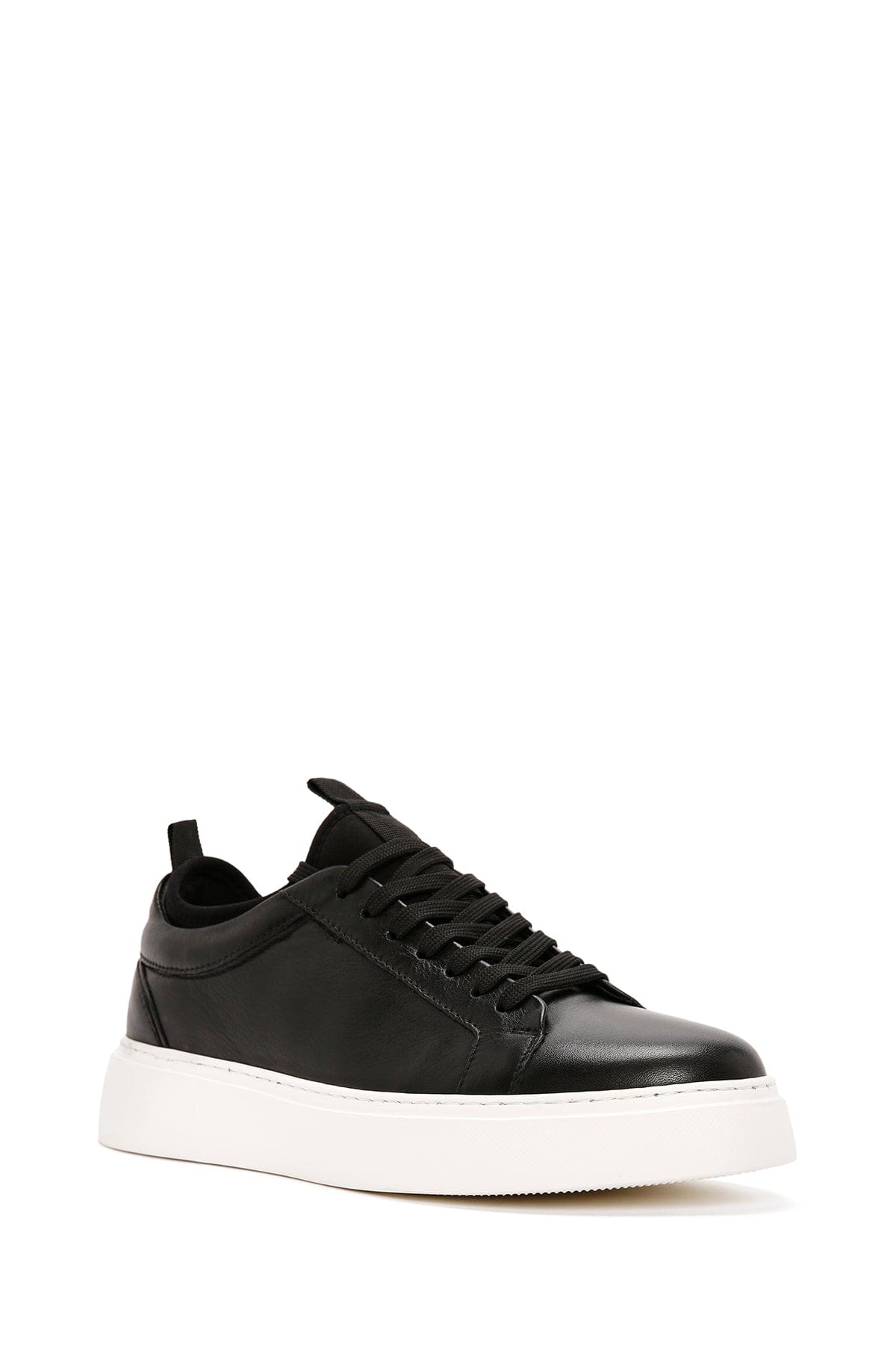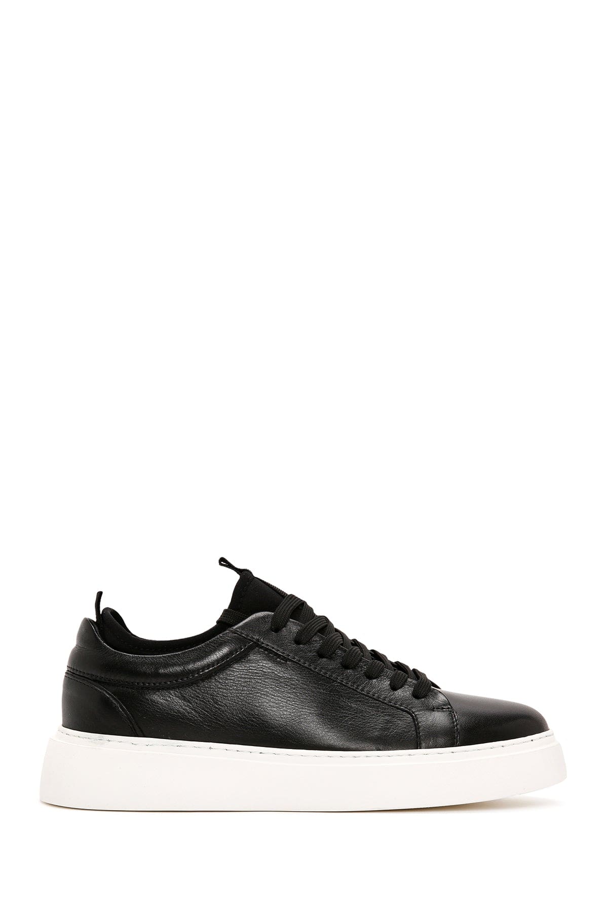 Erkek Siyah Bağcıklı Deri Sneaker