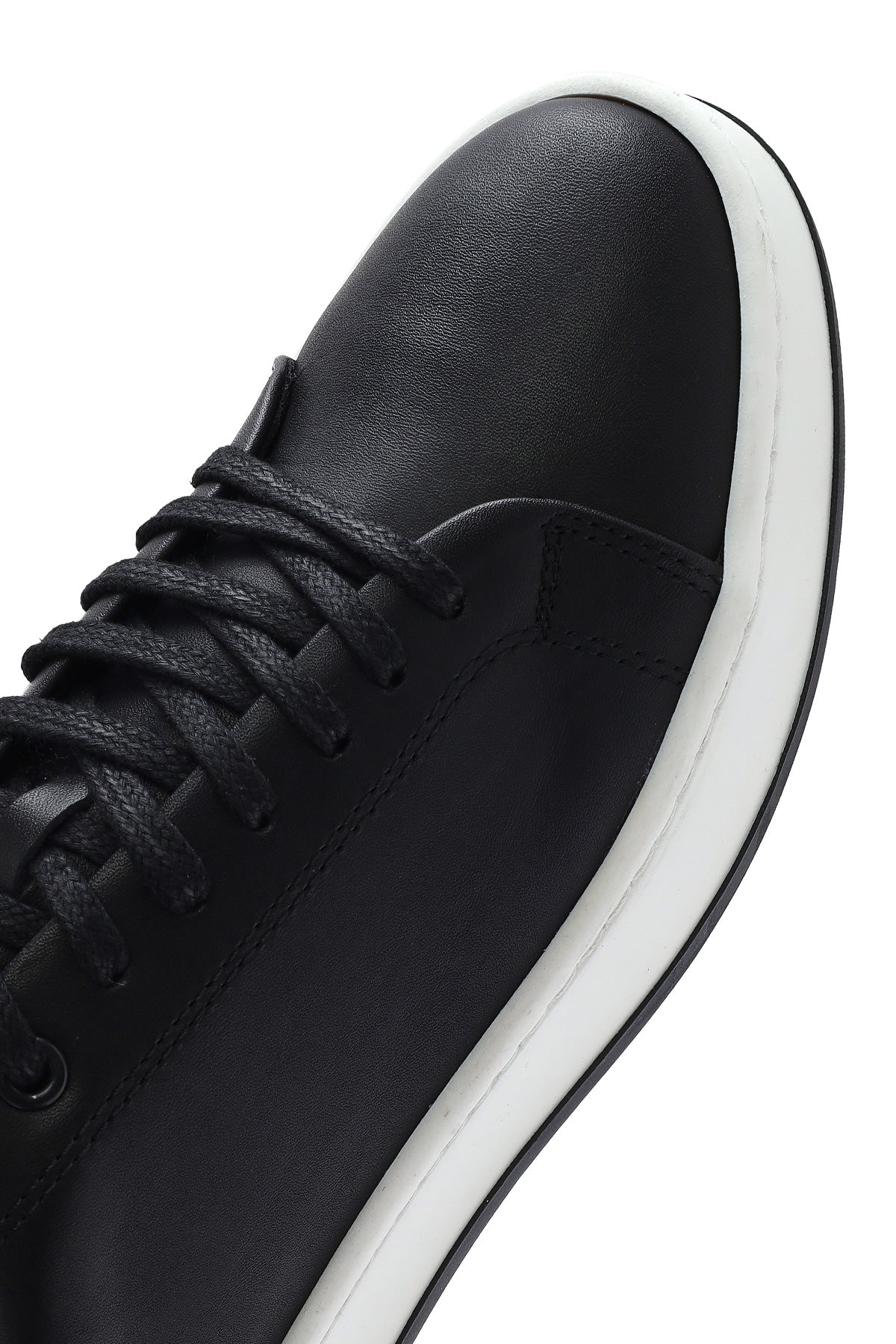 Erkek Siyah Bağcıklı Deri Sneaker