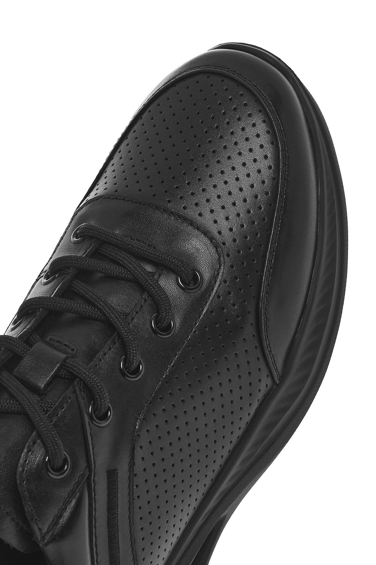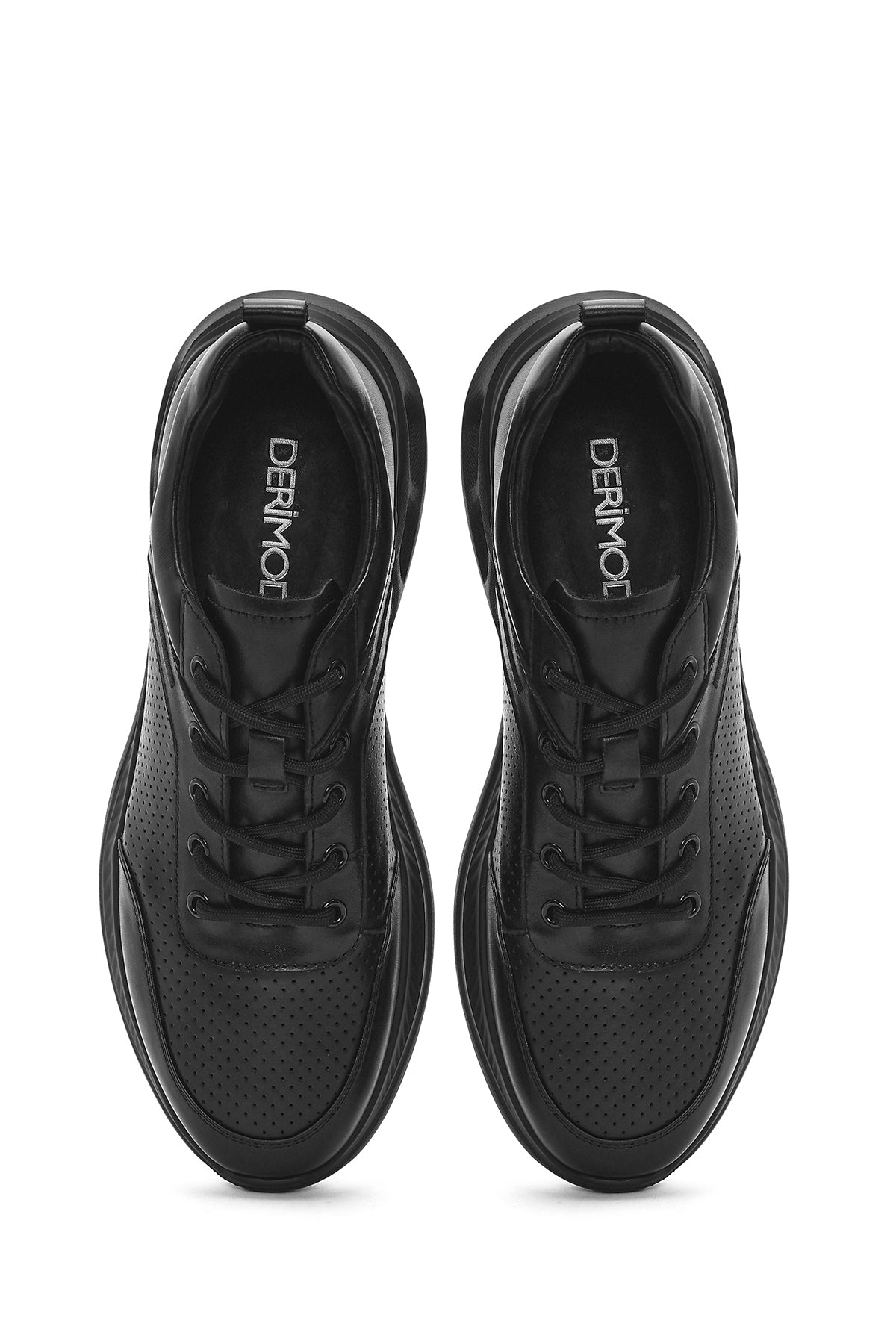 Erkek Siyah Bağcıklı Deri Sneaker
