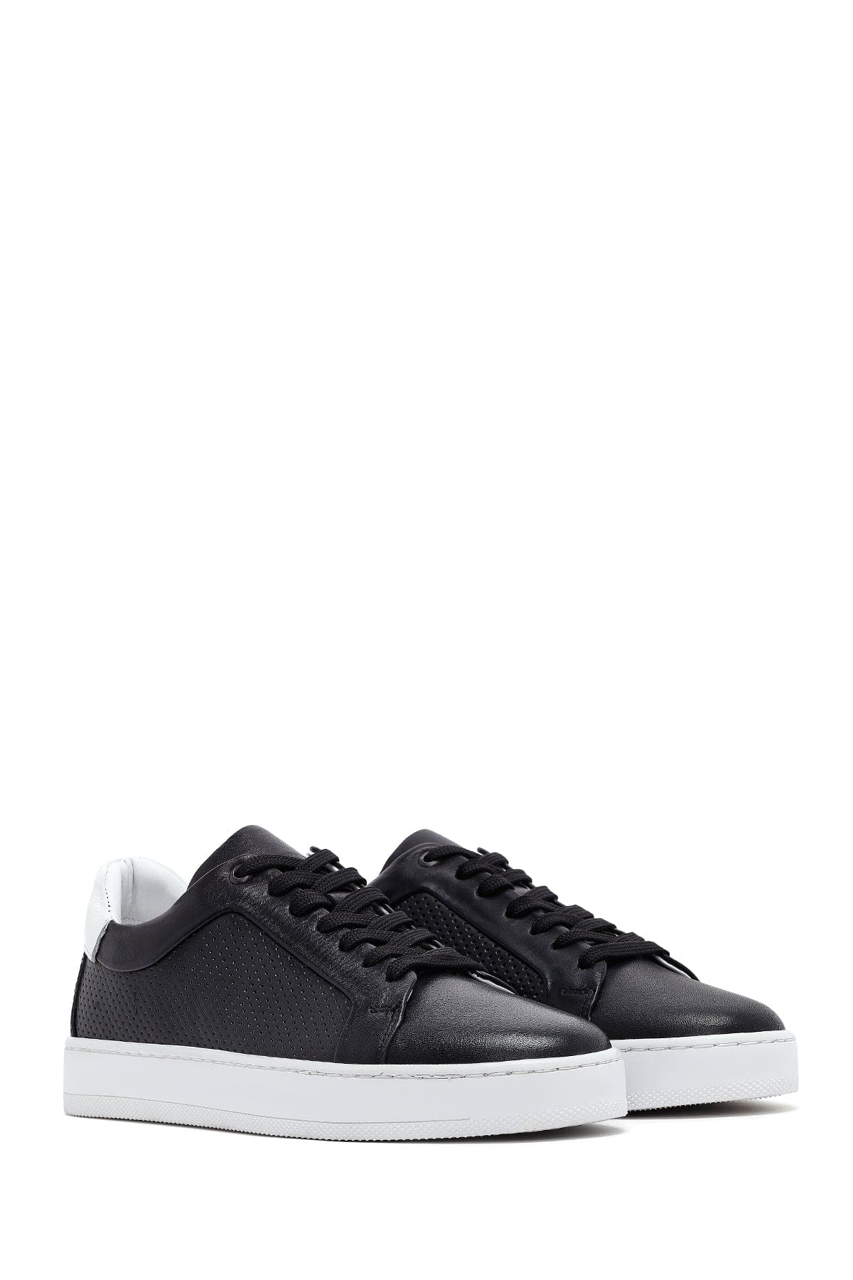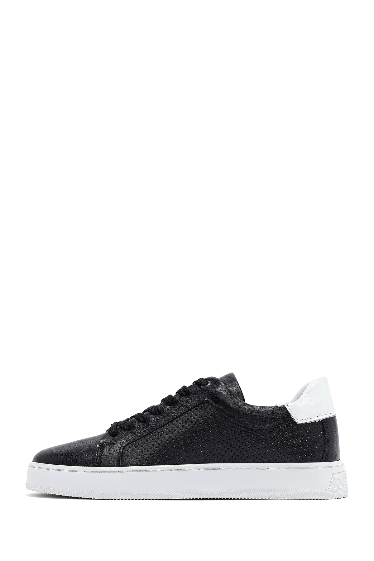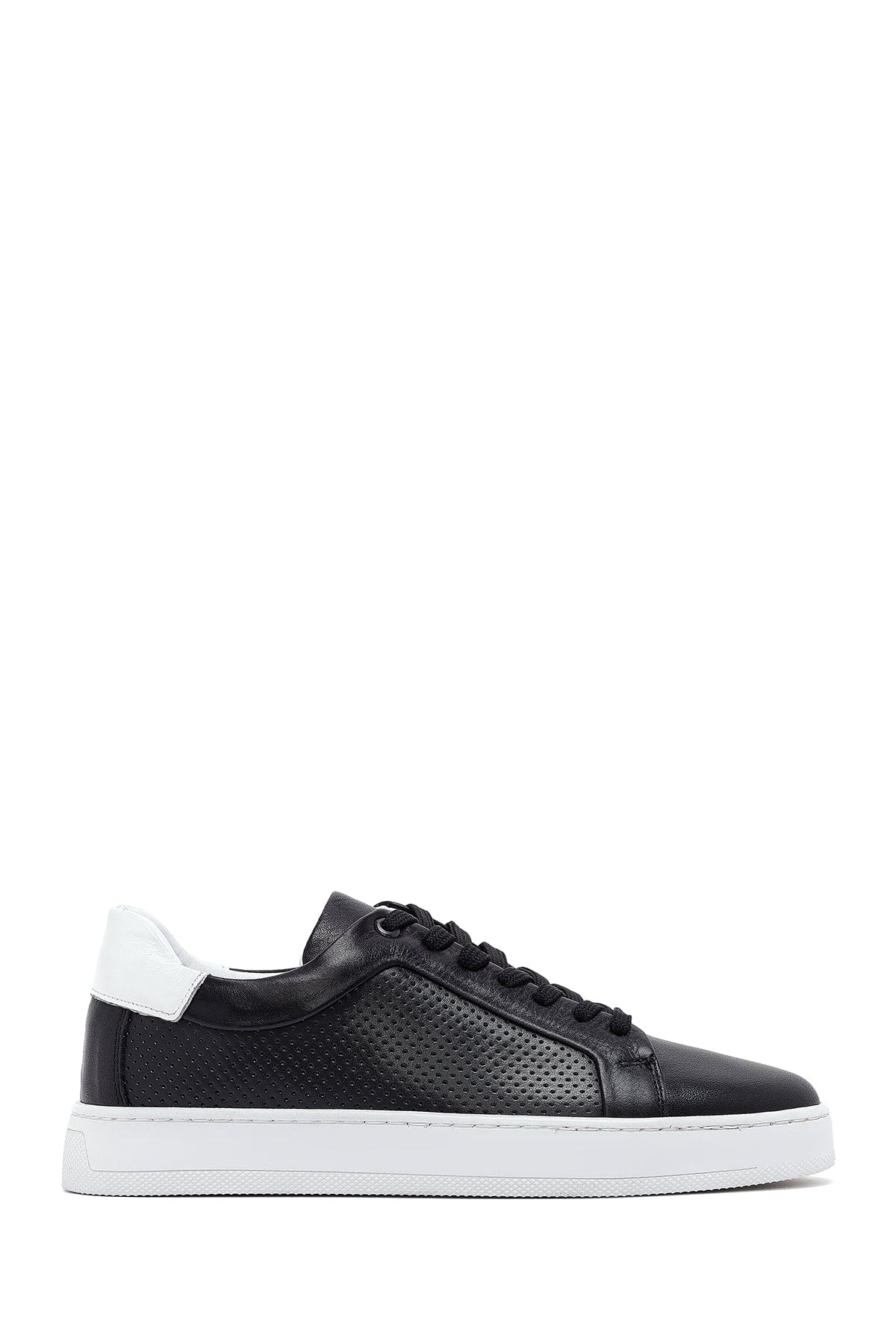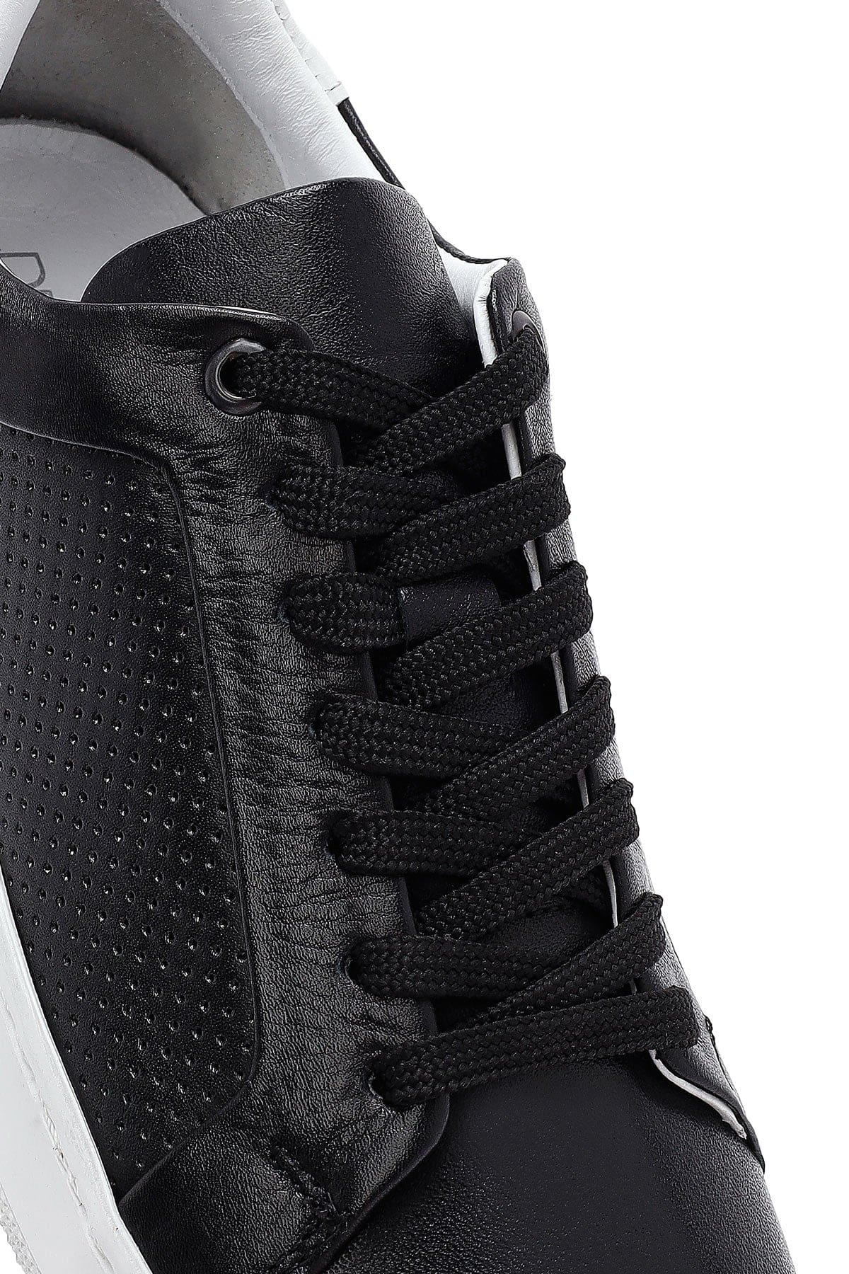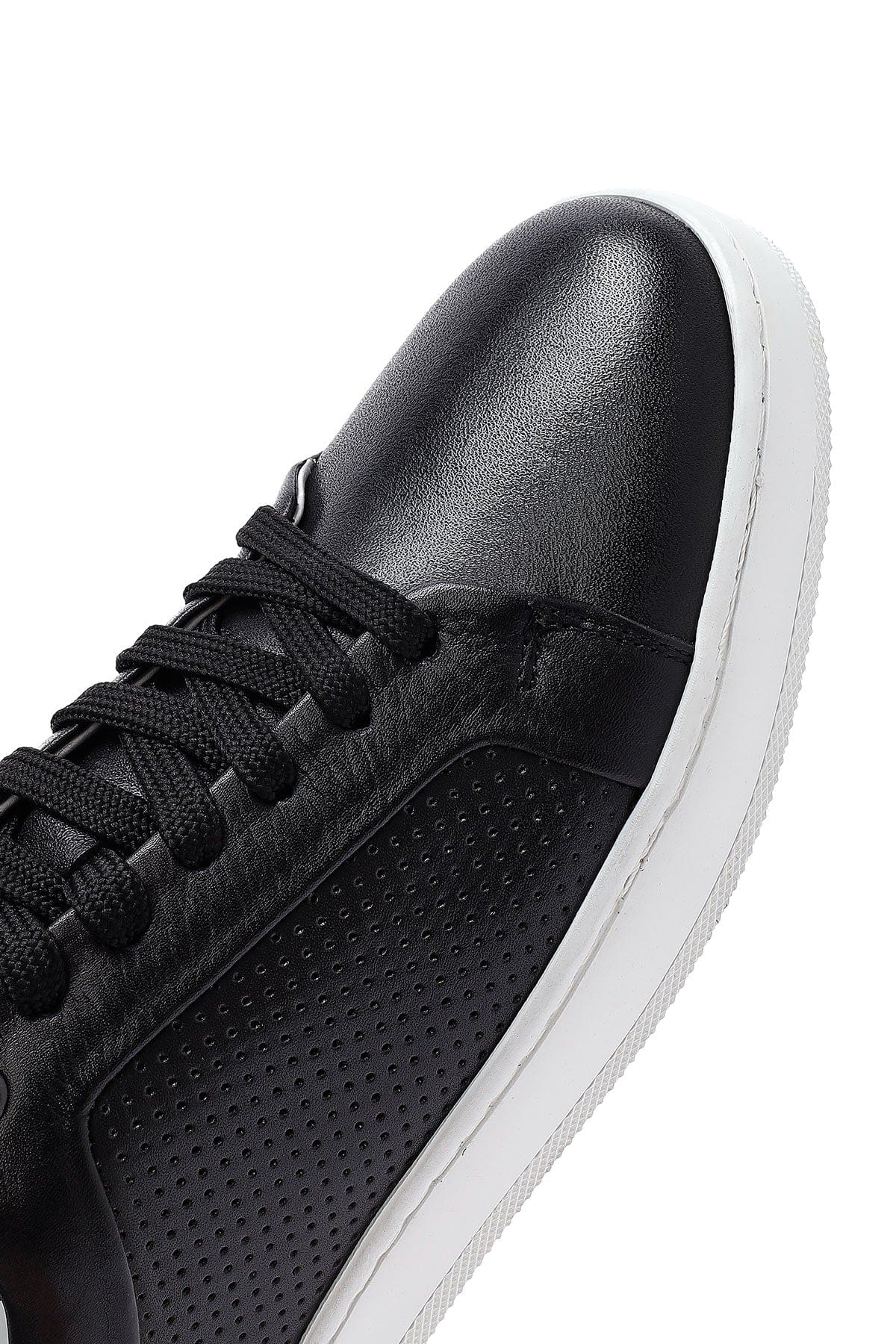Erkek Siyah Bağcıklı Deri Sneaker