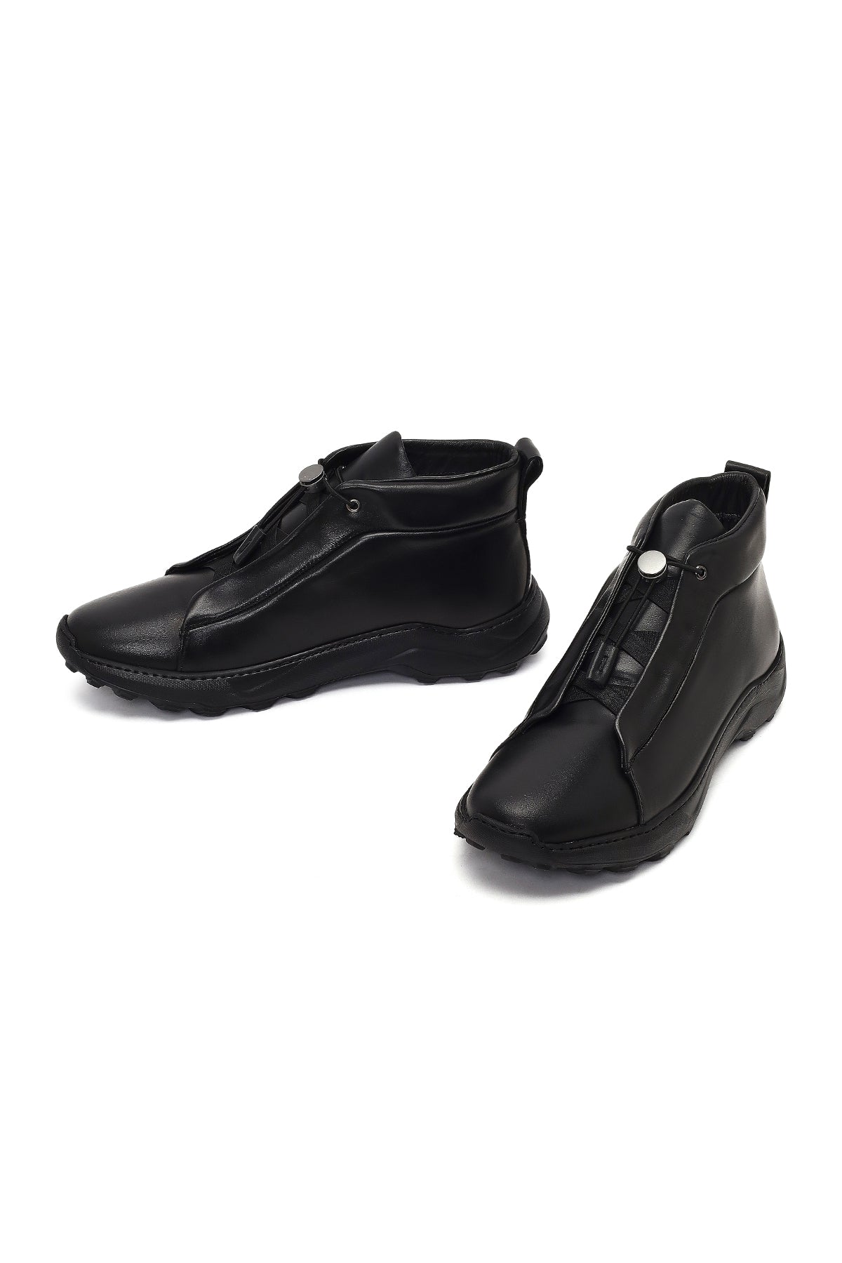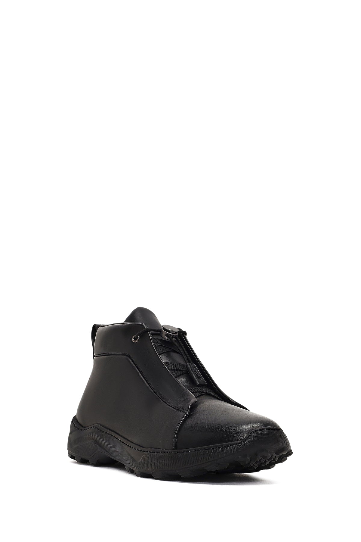 Erkek Siyah Bağcıklı Kalın Tabanlı Deri Casual Bot