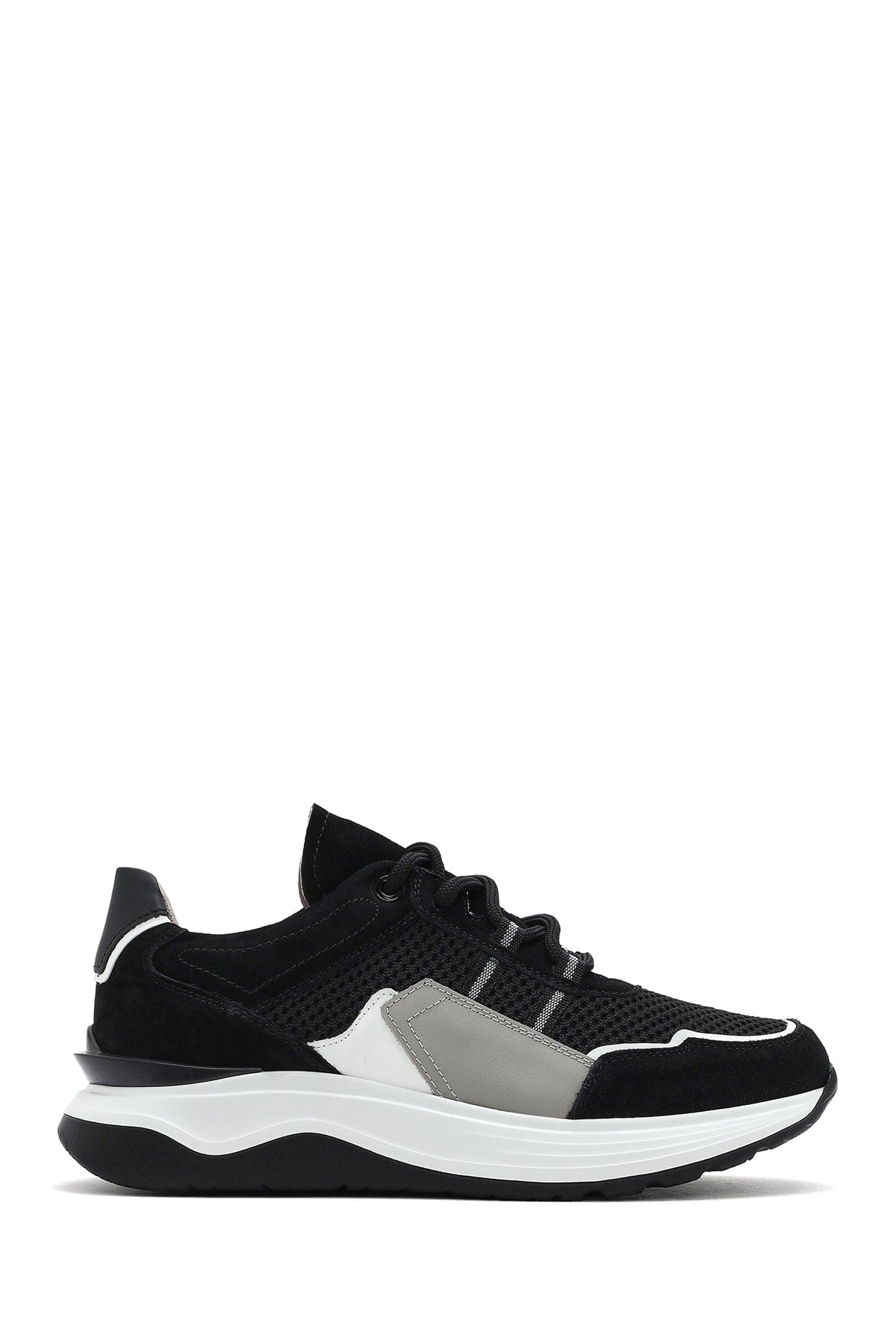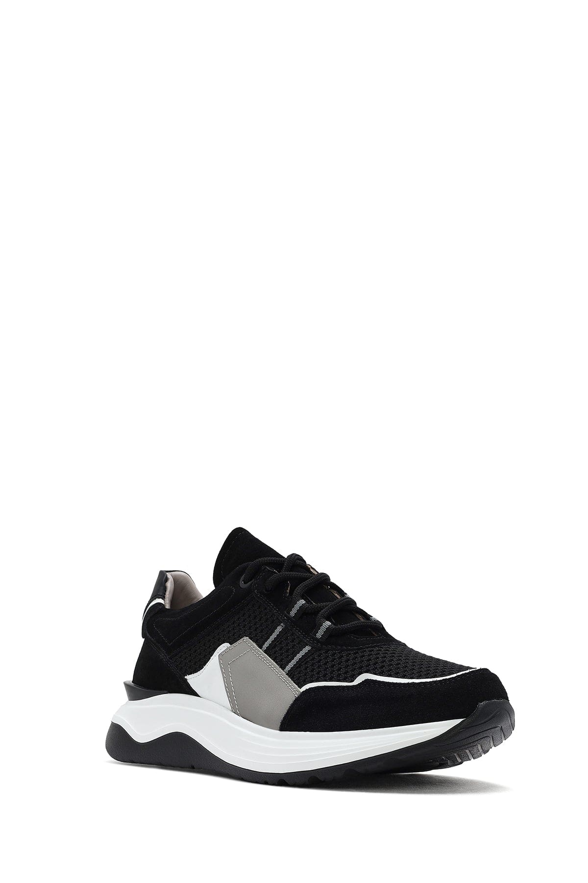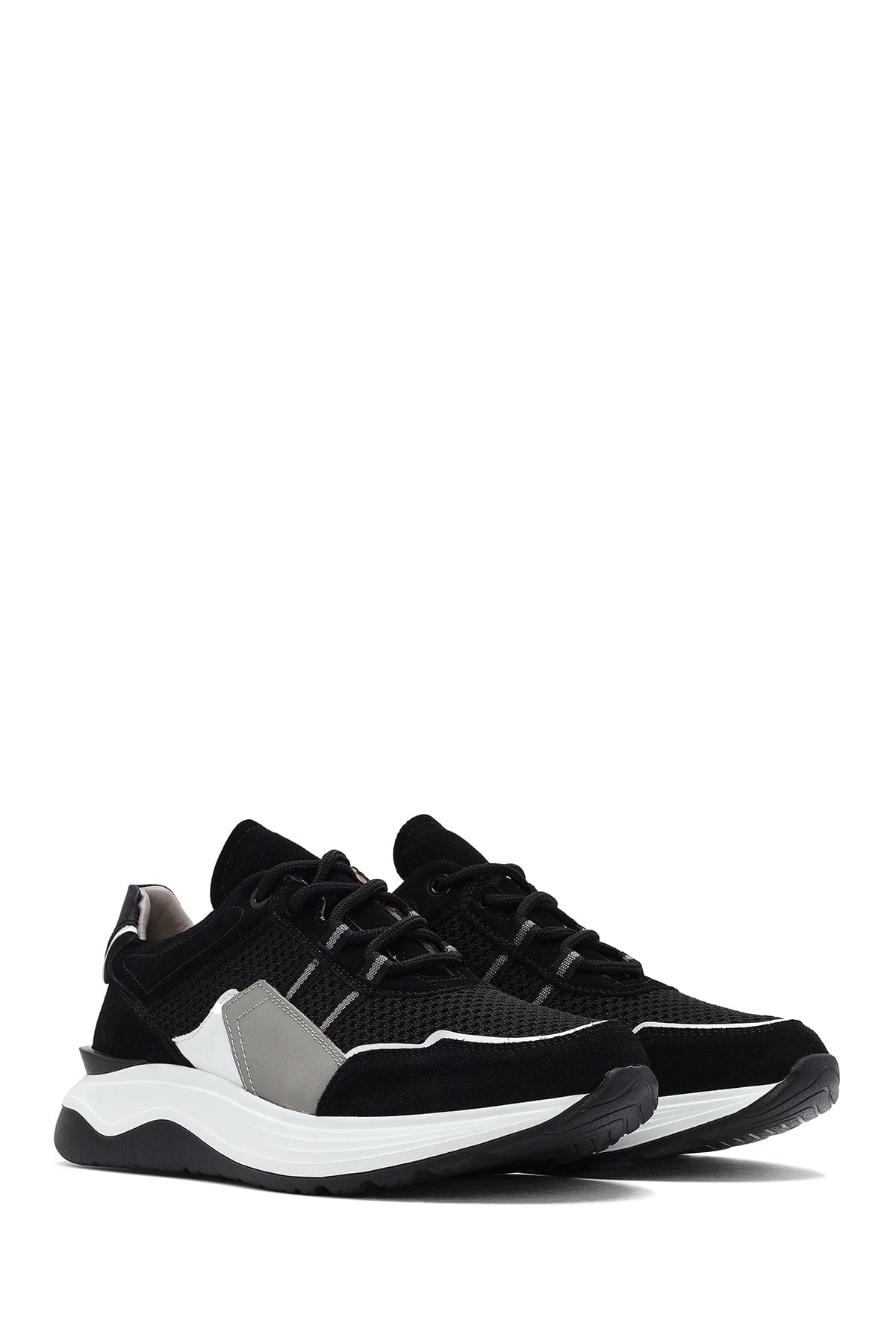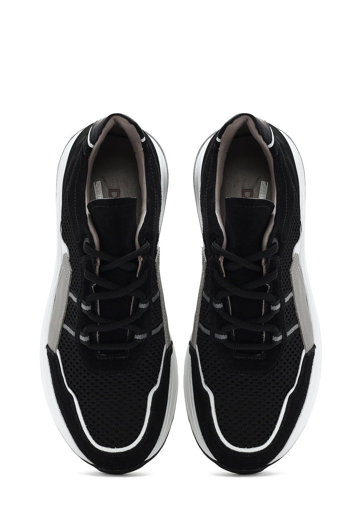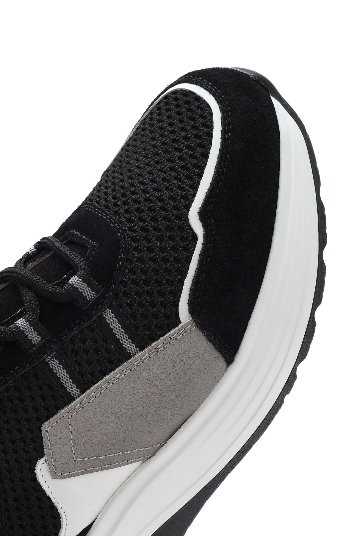 Erkek Siyah Bağcıklı Kalın Tabanlı Deri Sneaker