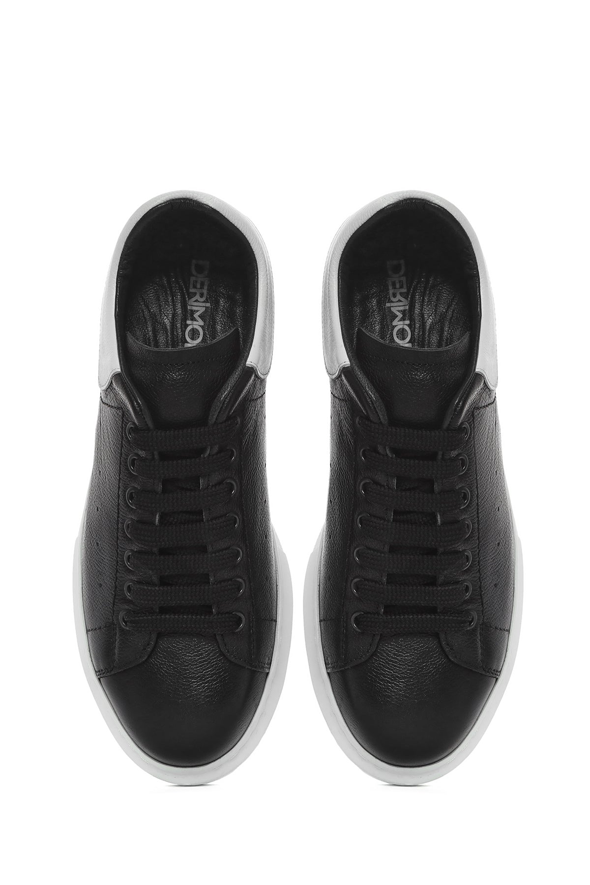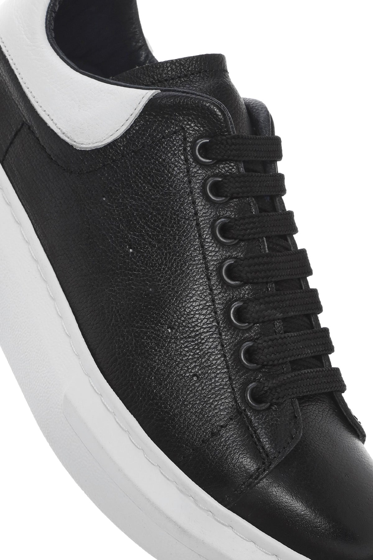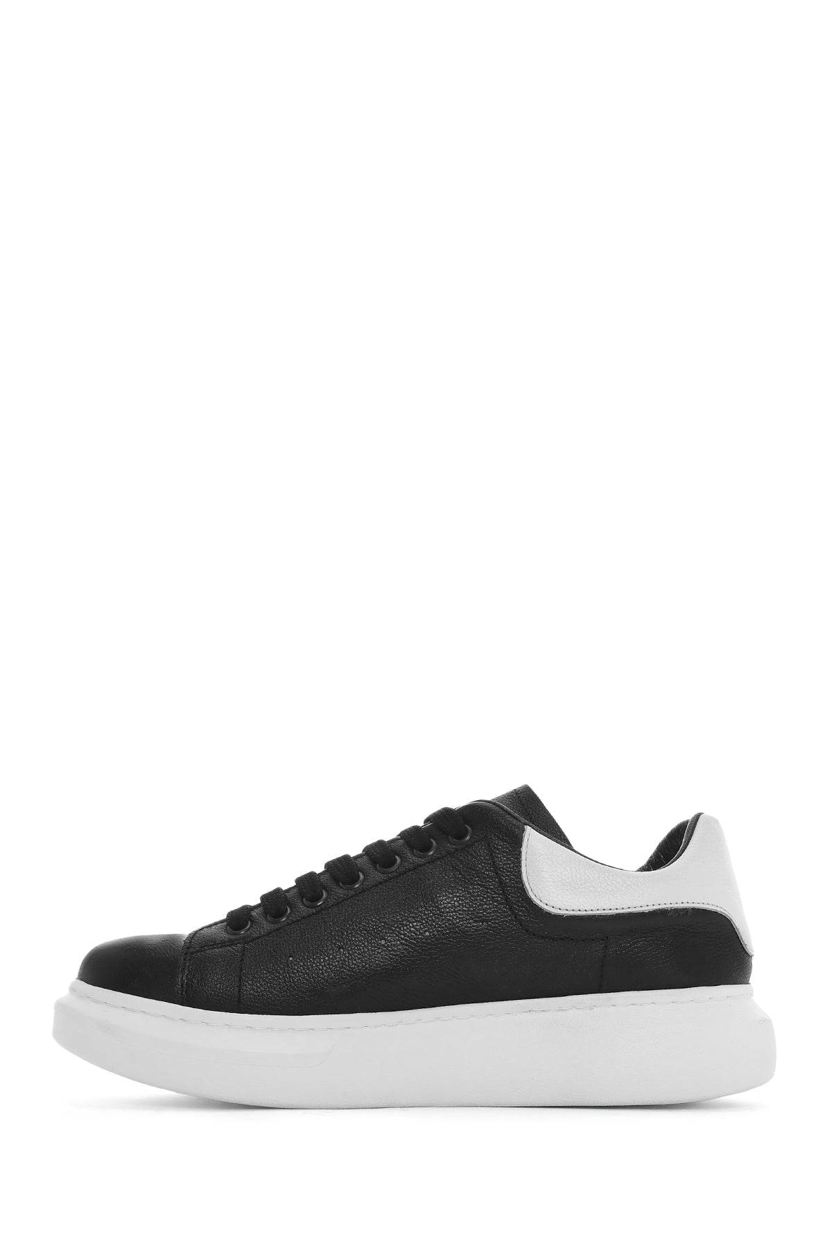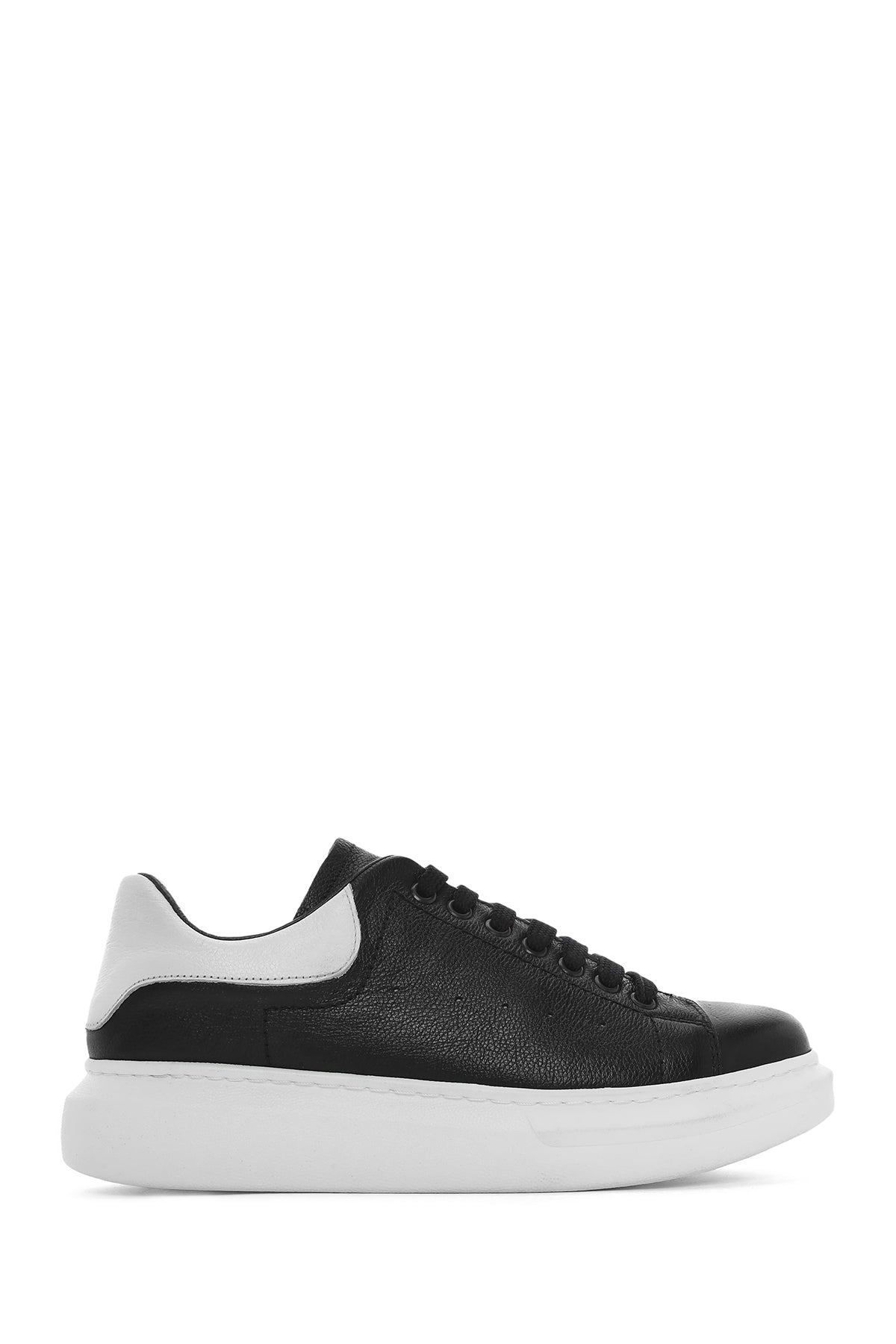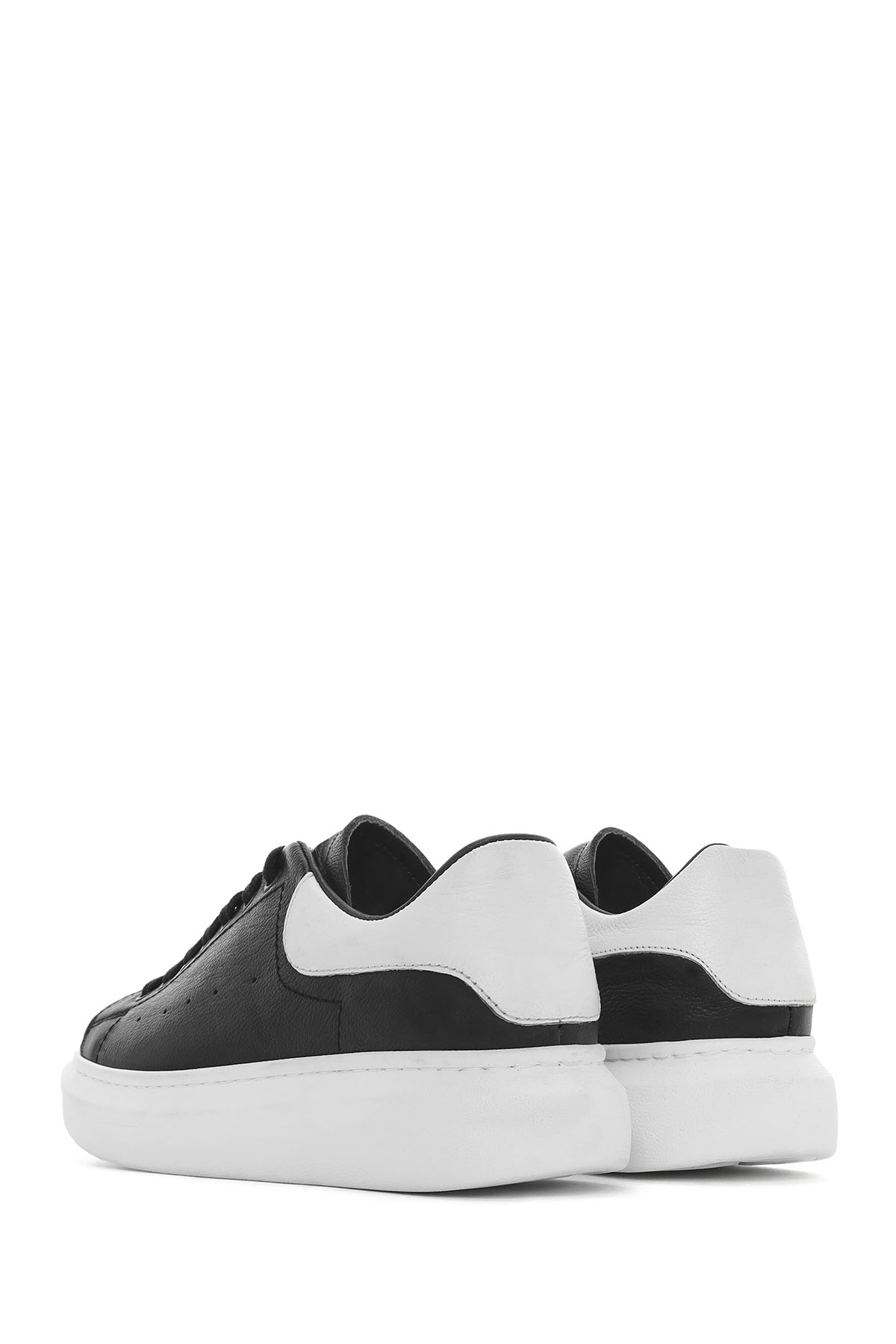 Erkek Siyah Bağcıklı Kalın Tabanlı Deri Sneaker