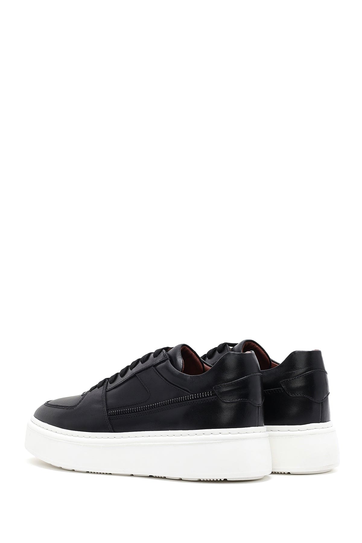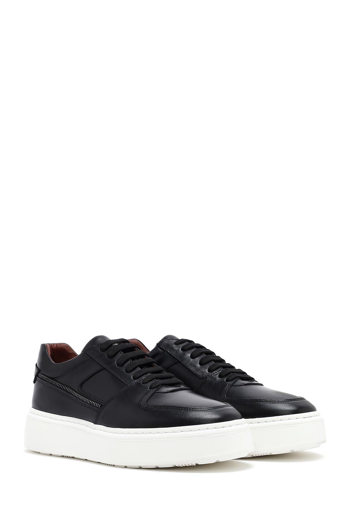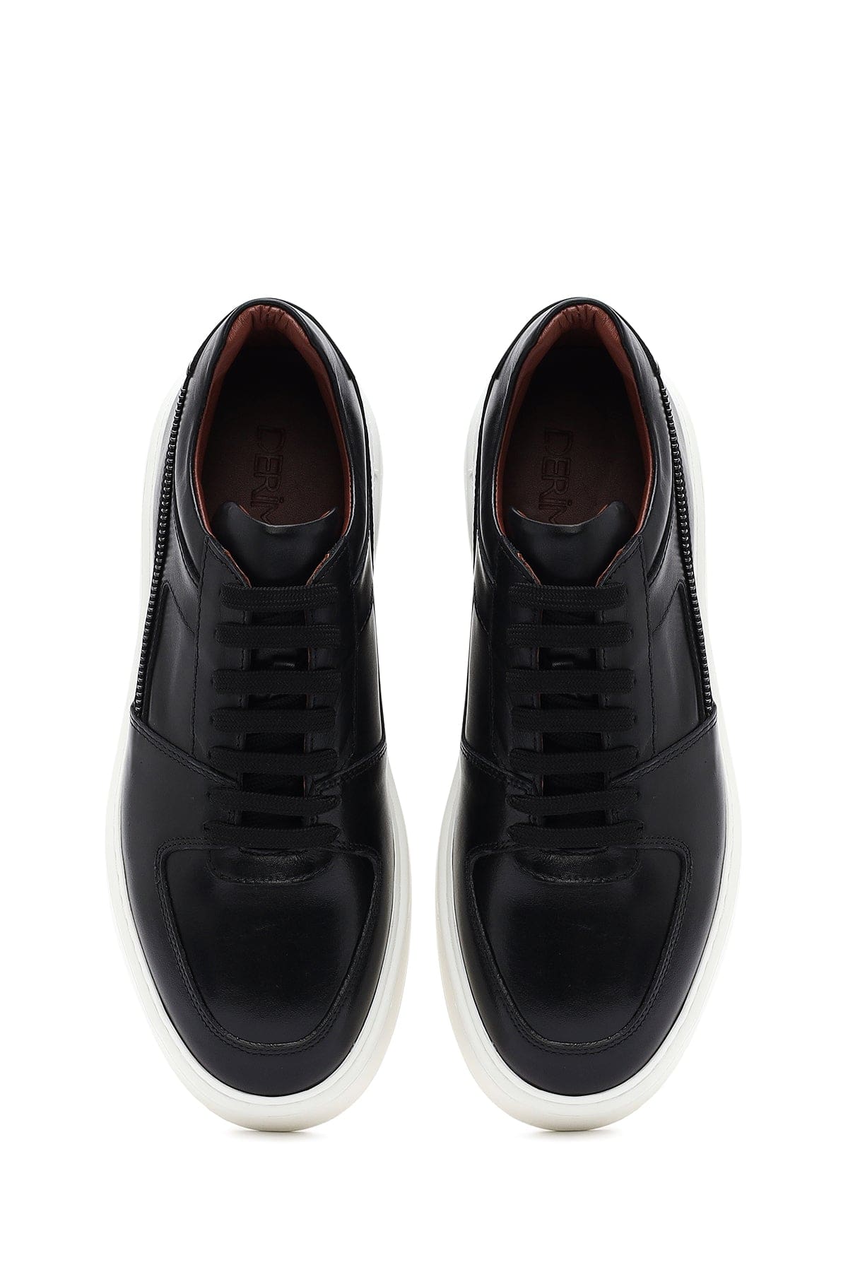 Erkek Siyah Bağcıklı Kalın Tabanlı Deri Sneaker