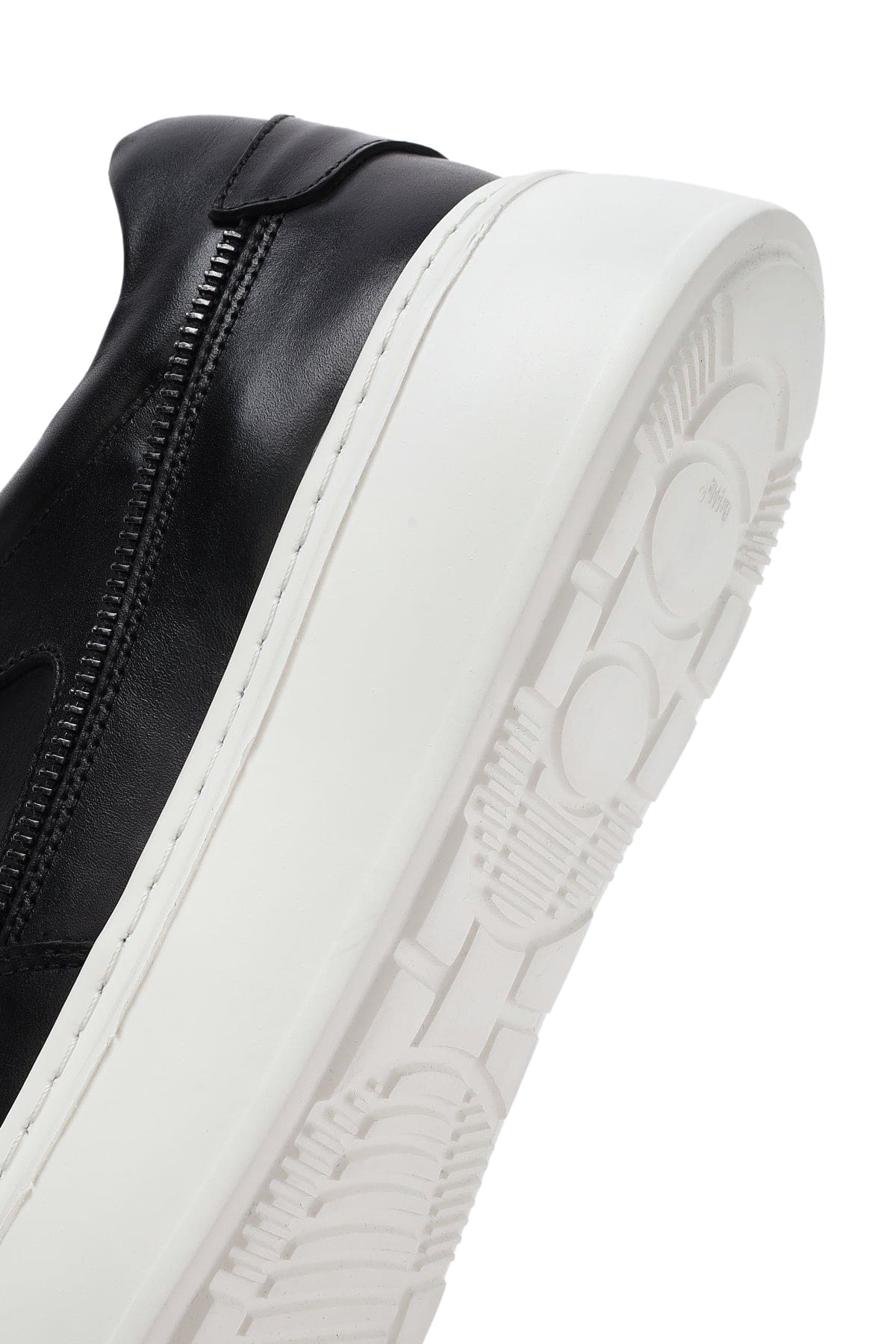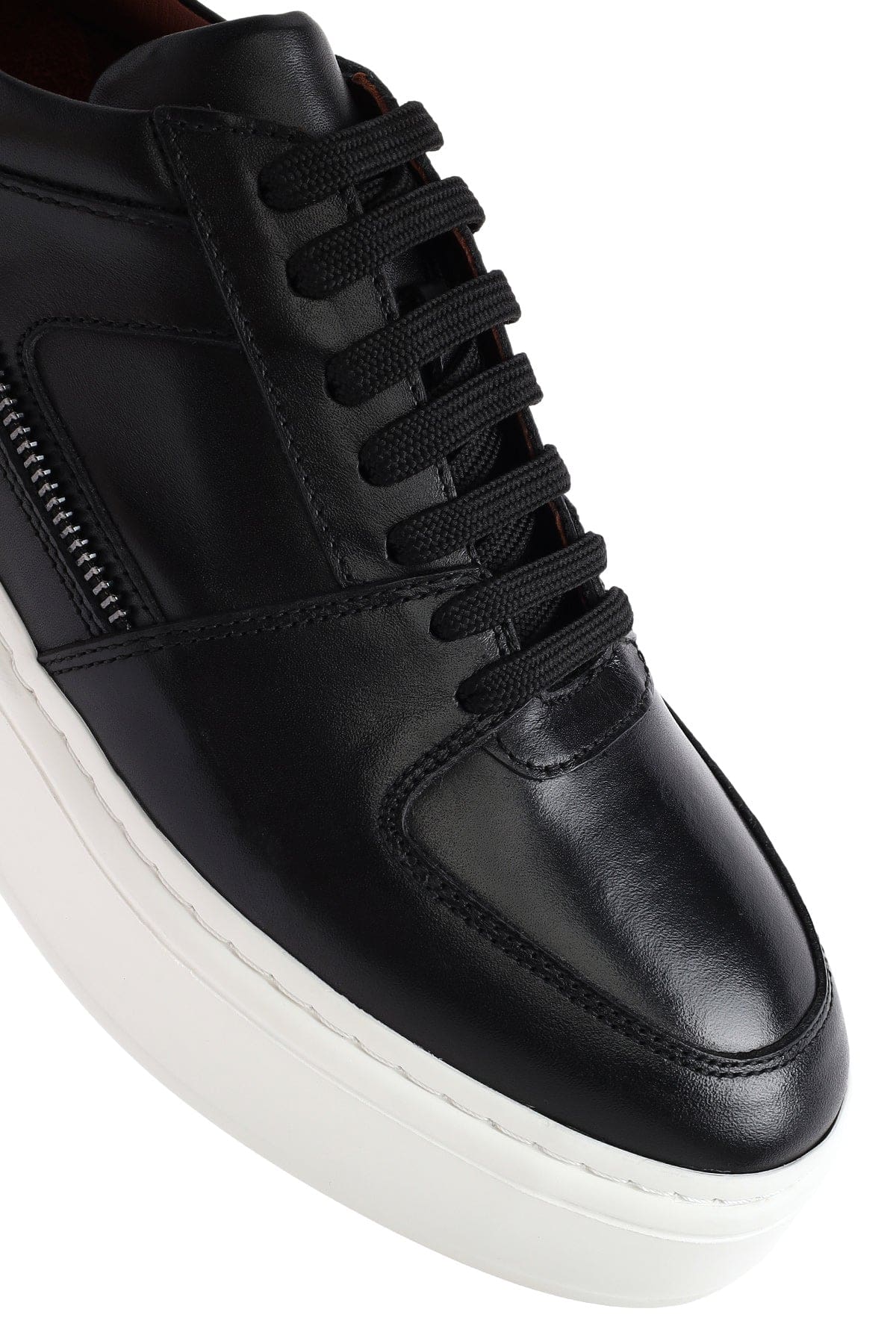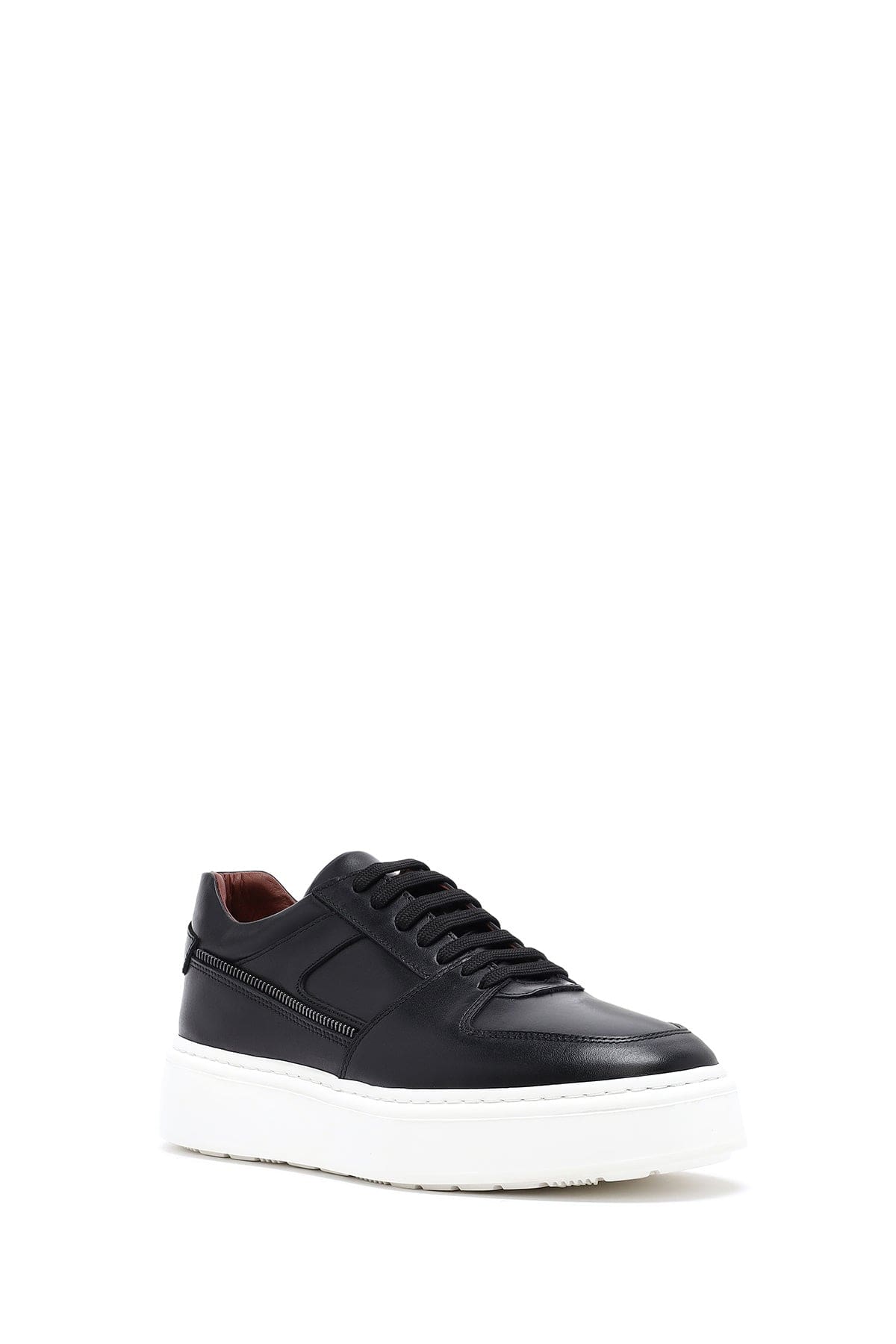 Erkek Siyah Bağcıklı Kalın Tabanlı Deri Sneaker
