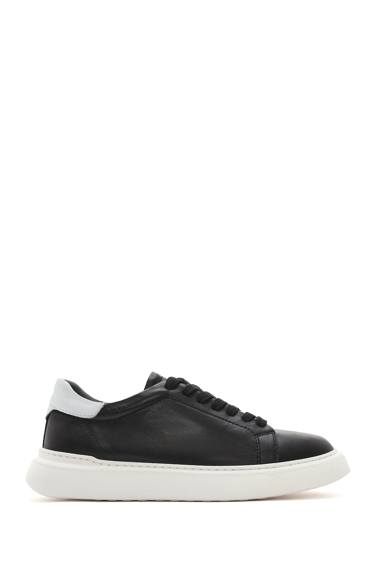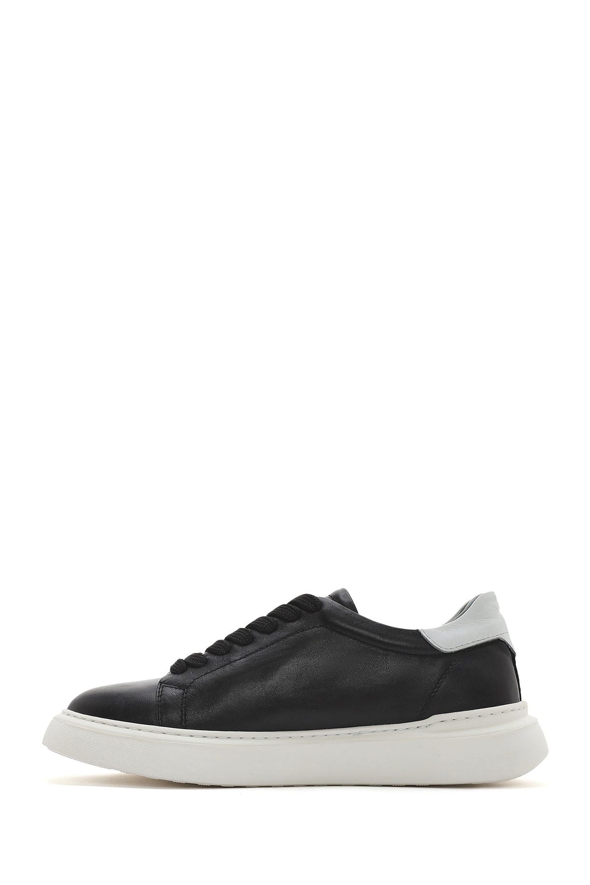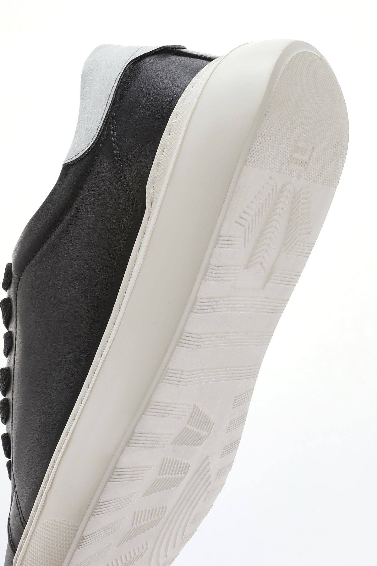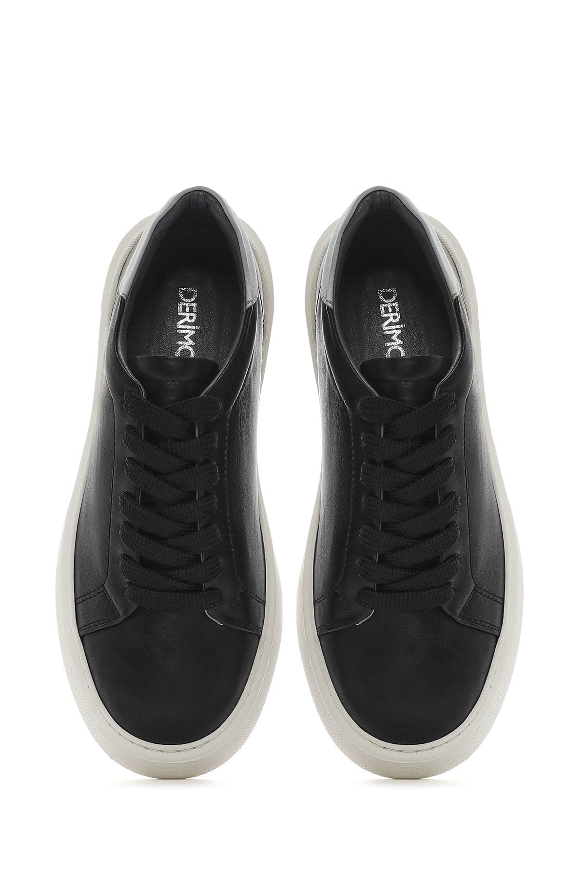Erkek Siyah Bağcıklı Kalın Tabanlı Deri Sneaker