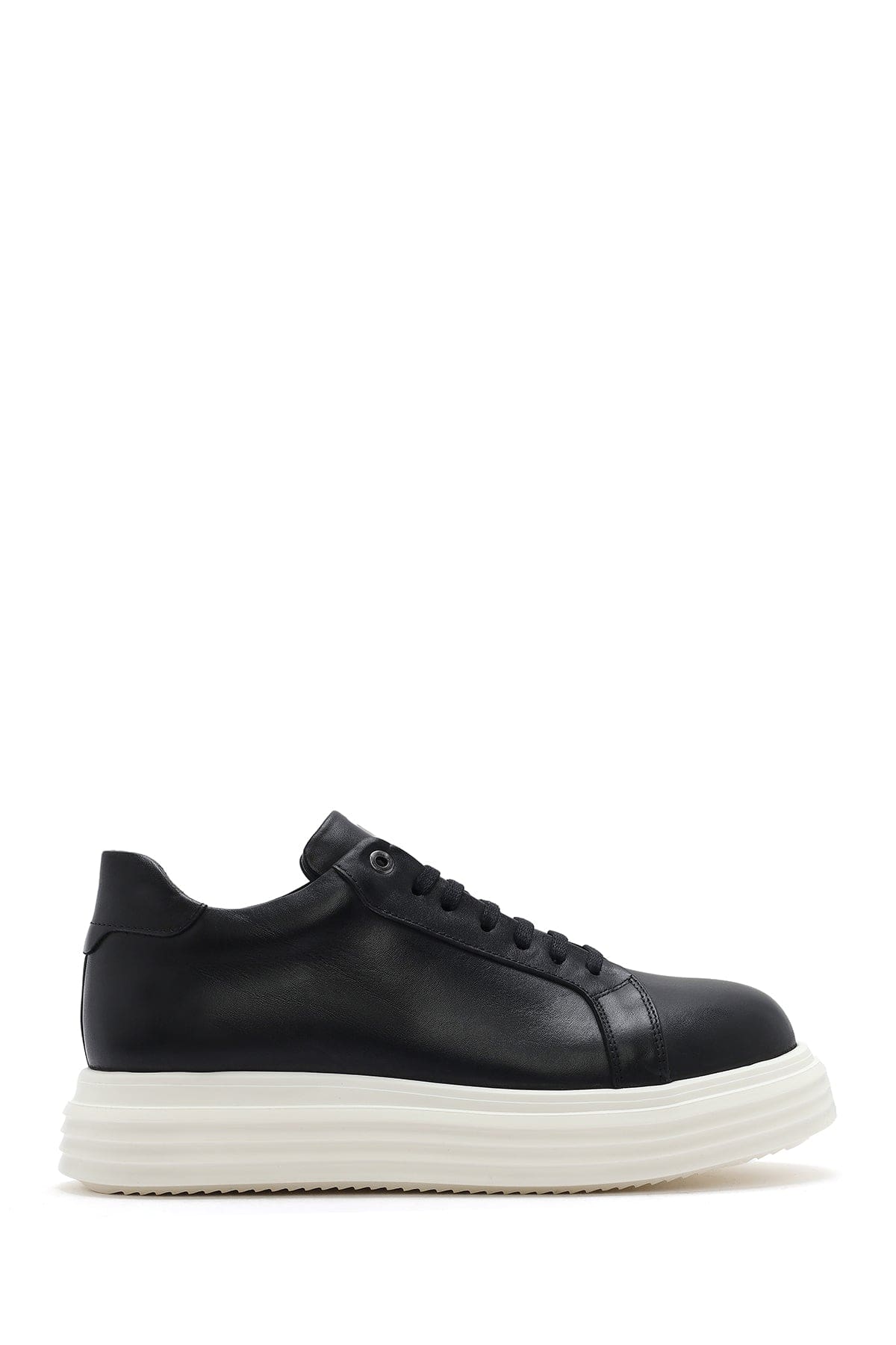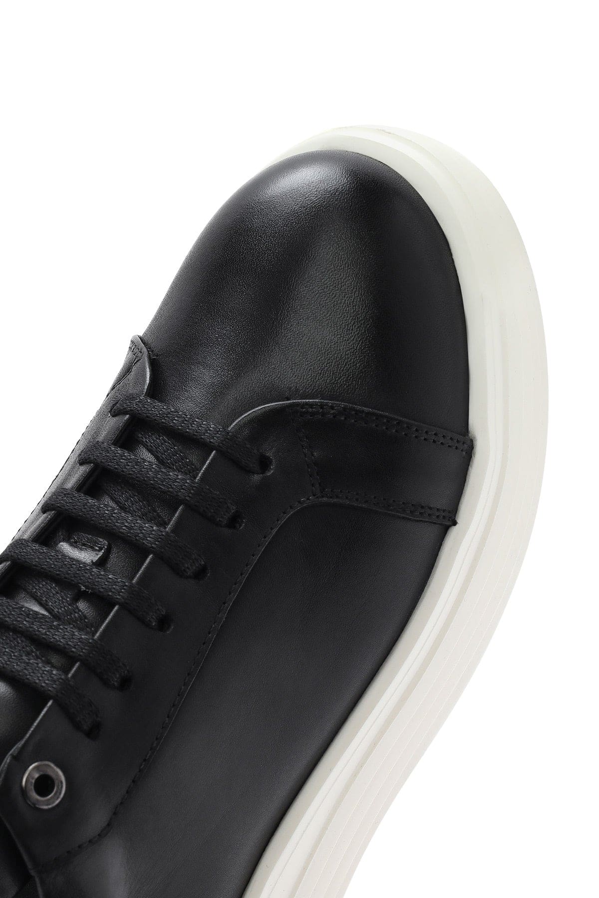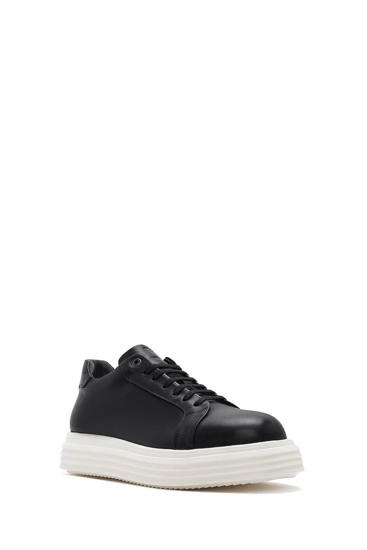 Erkek Siyah Kalın Tabanlı Bağcıklı Deri Sneaker
