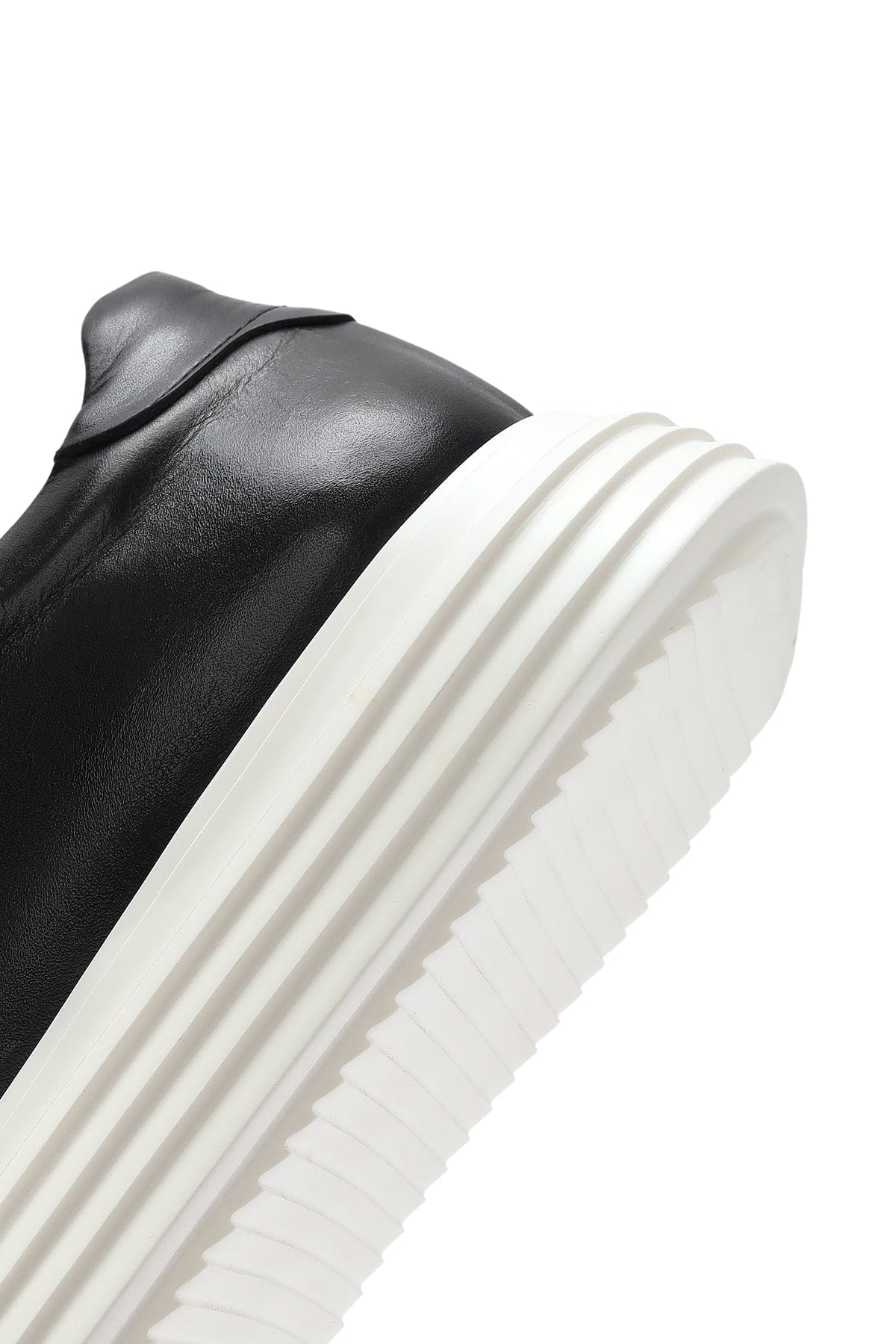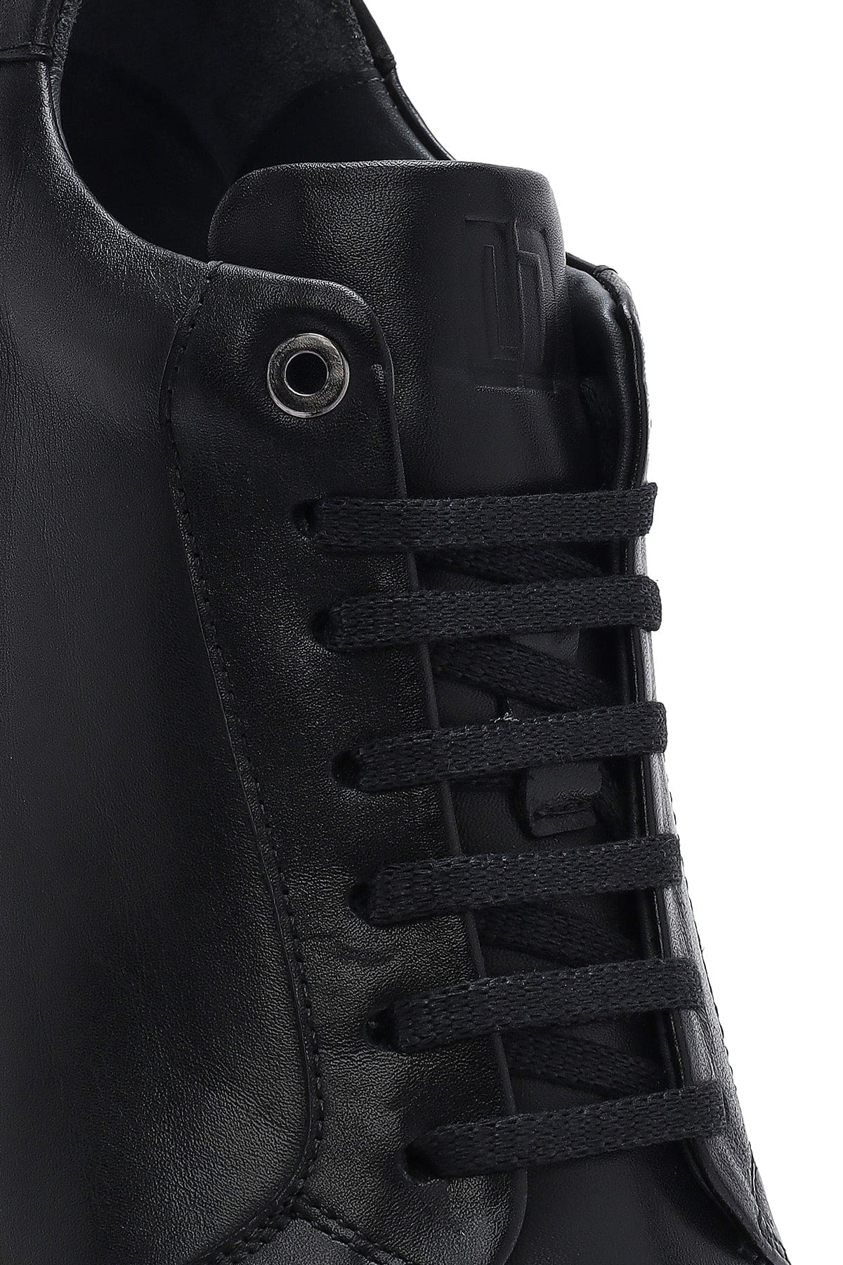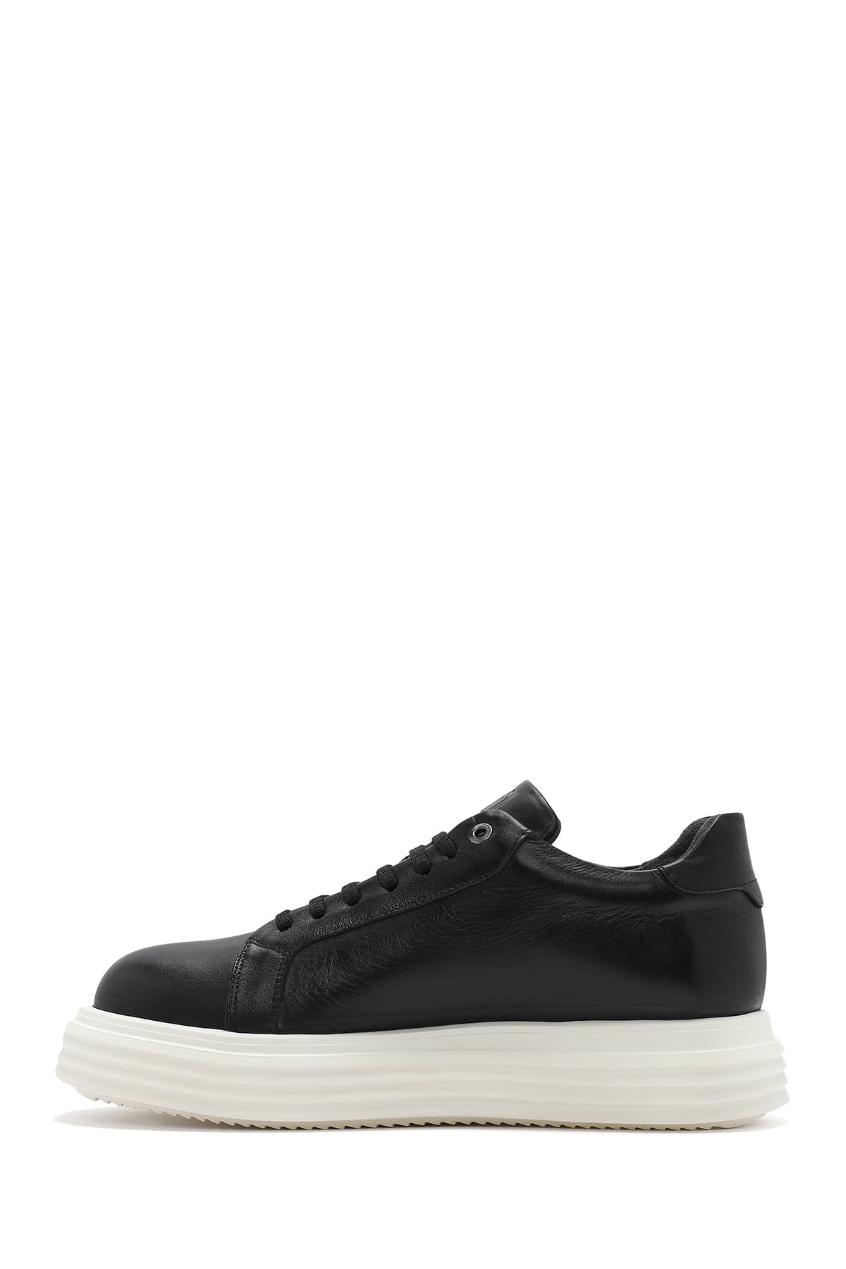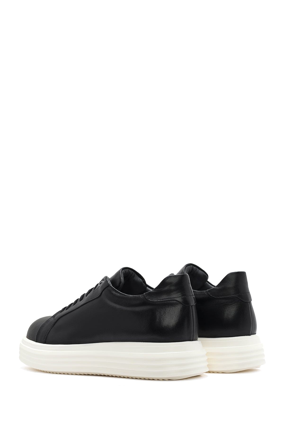 Erkek Siyah Kalın Tabanlı Bağcıklı Deri Sneaker