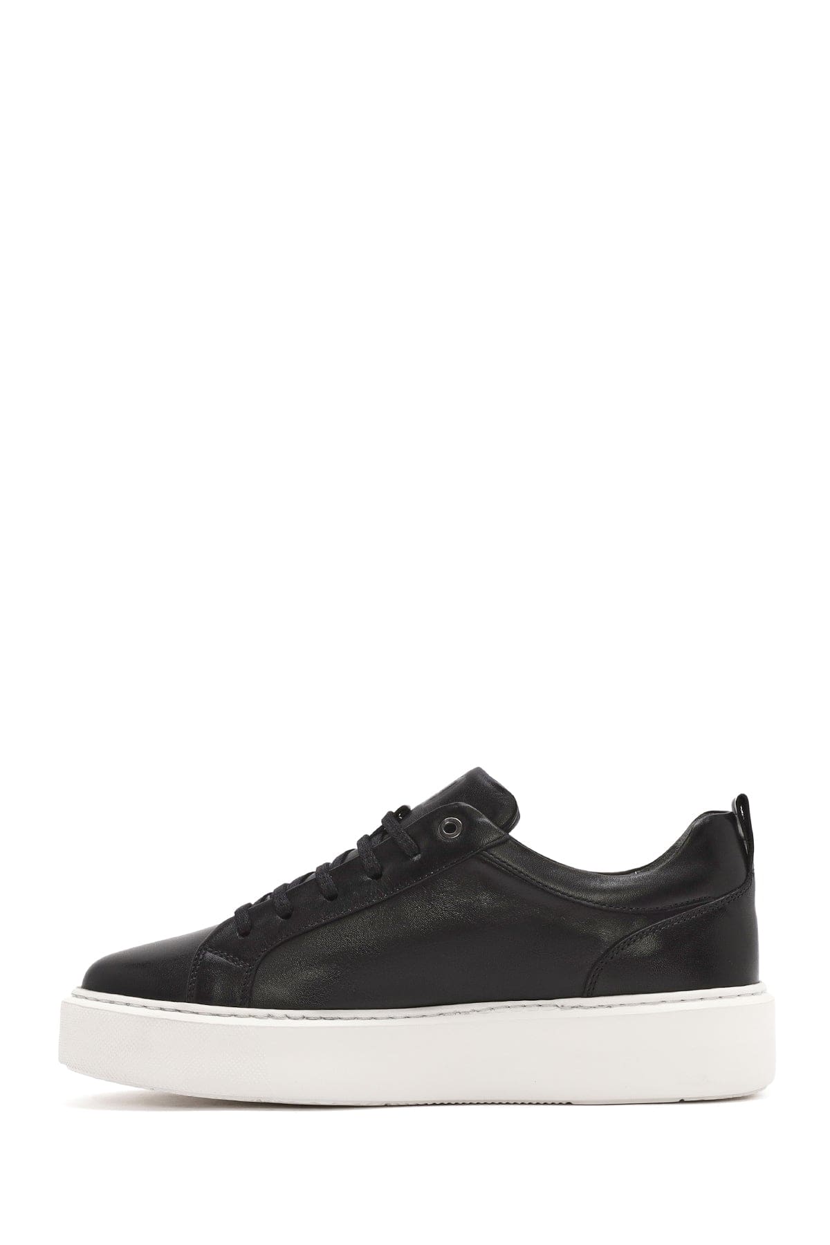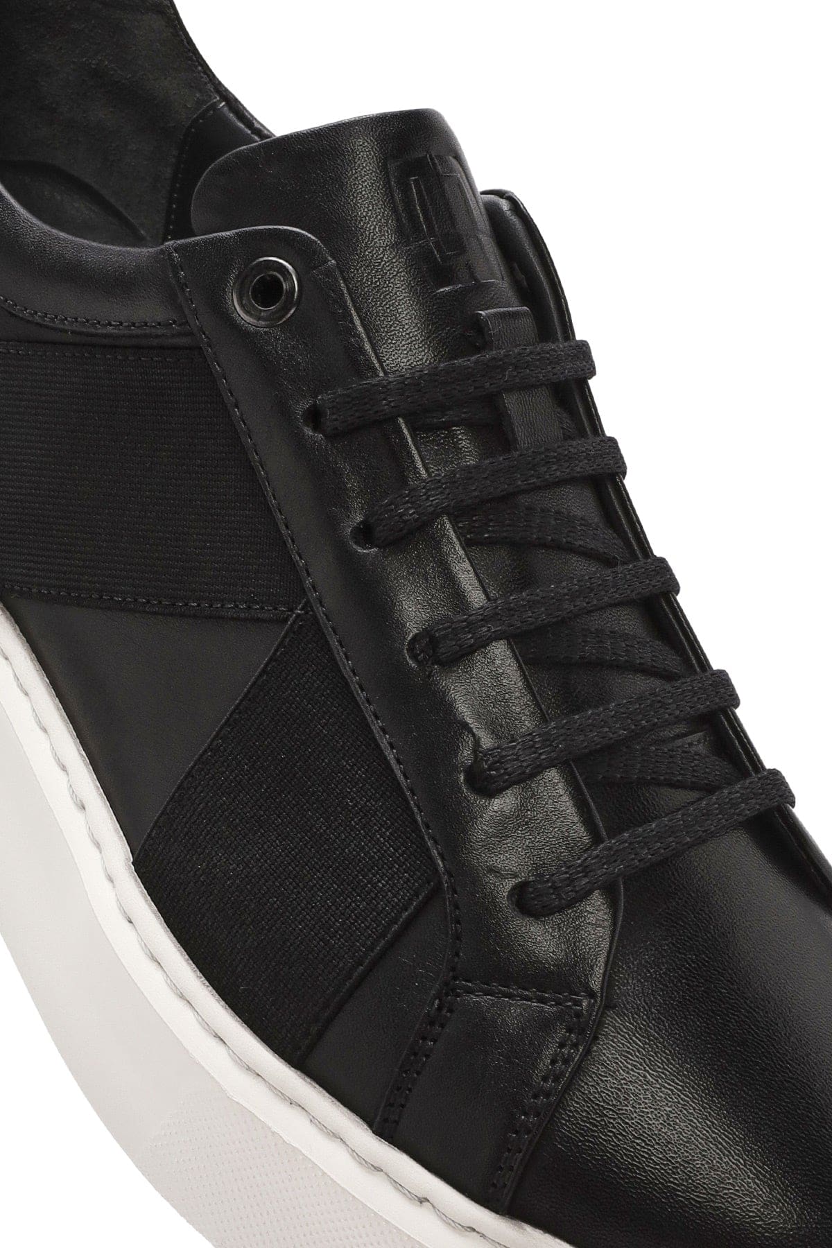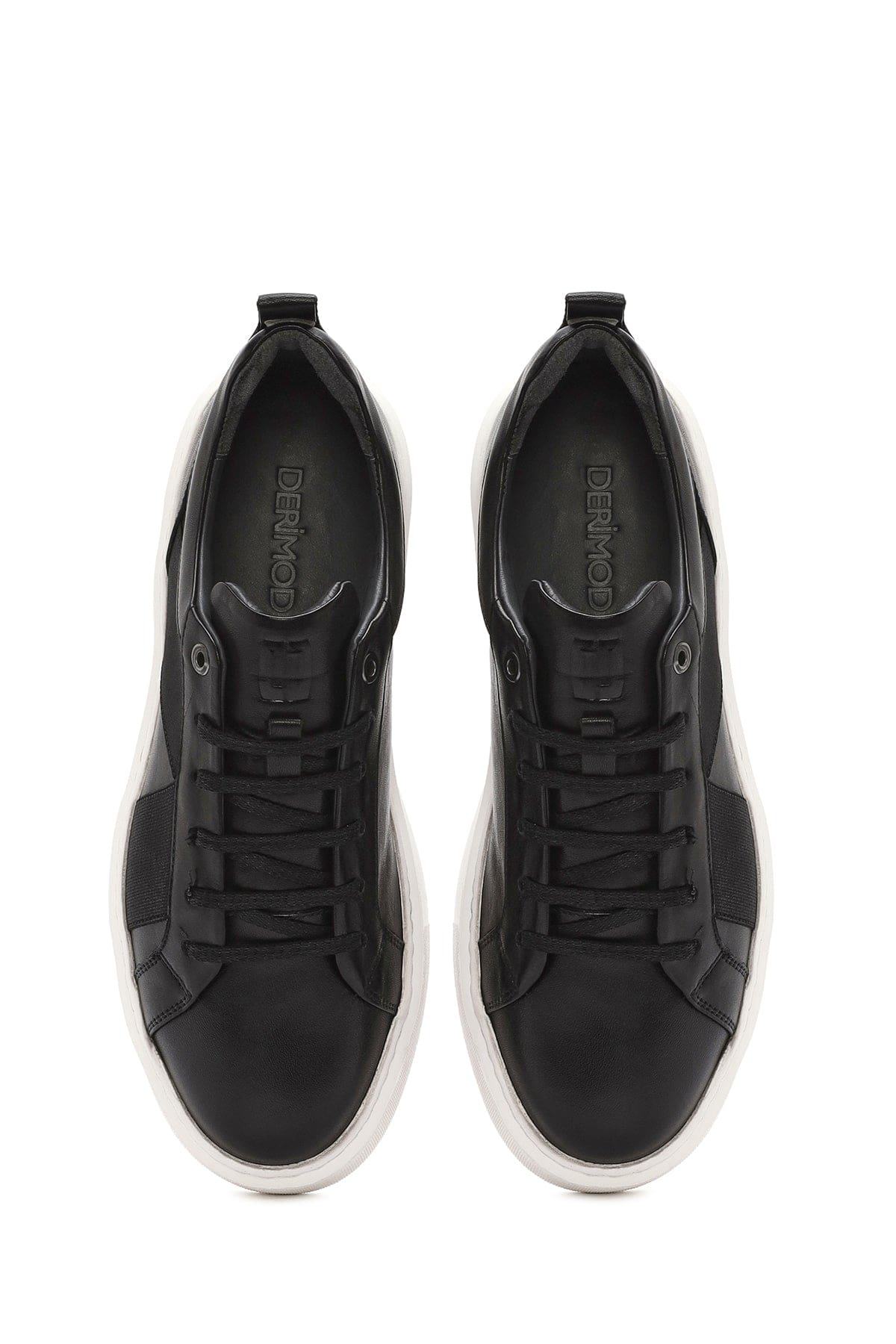 Erkek Siyah Bağcıklı Kalın Tabanlı Deri Sneaker