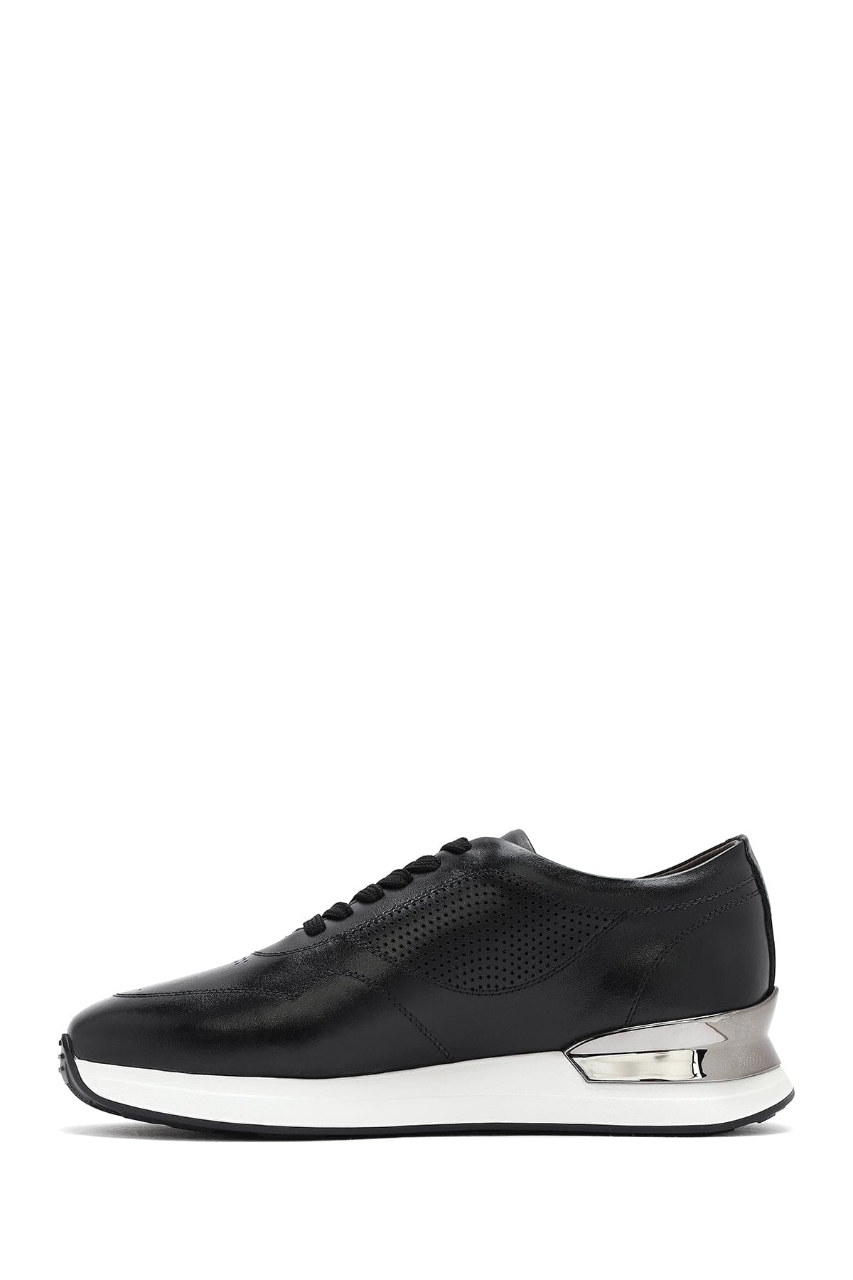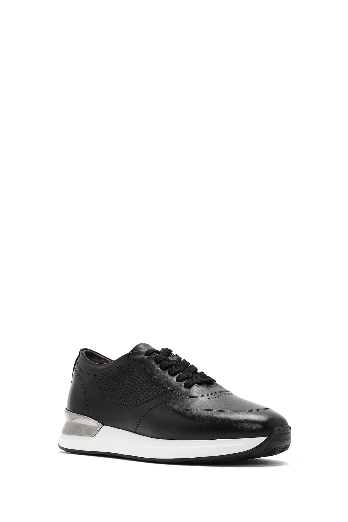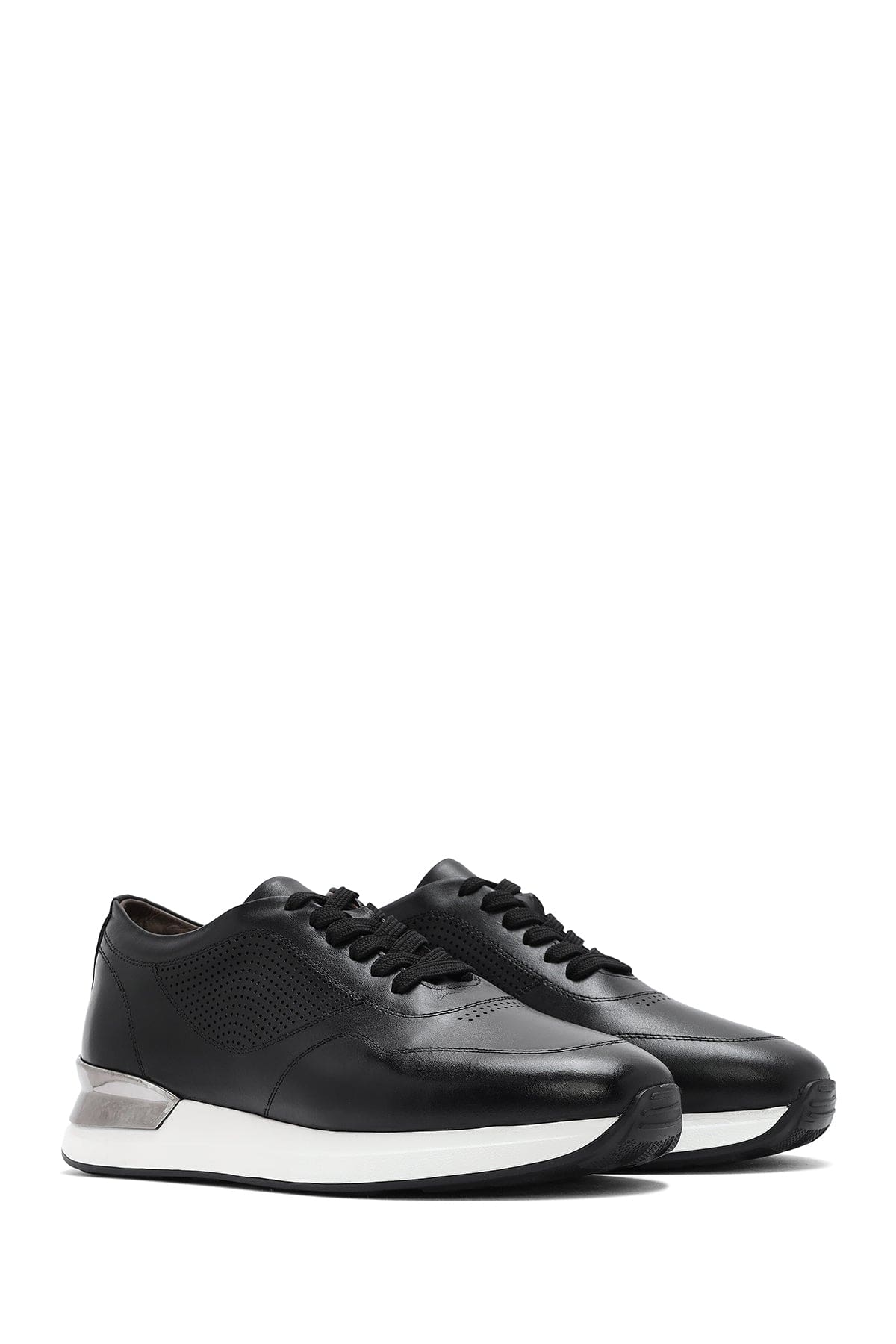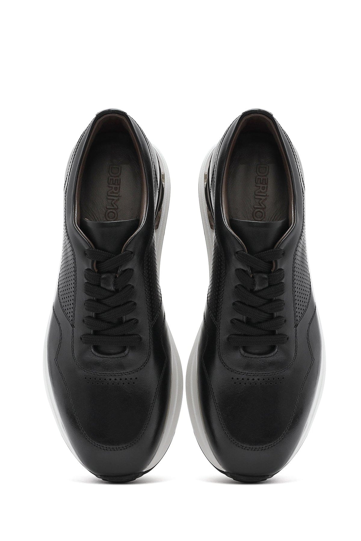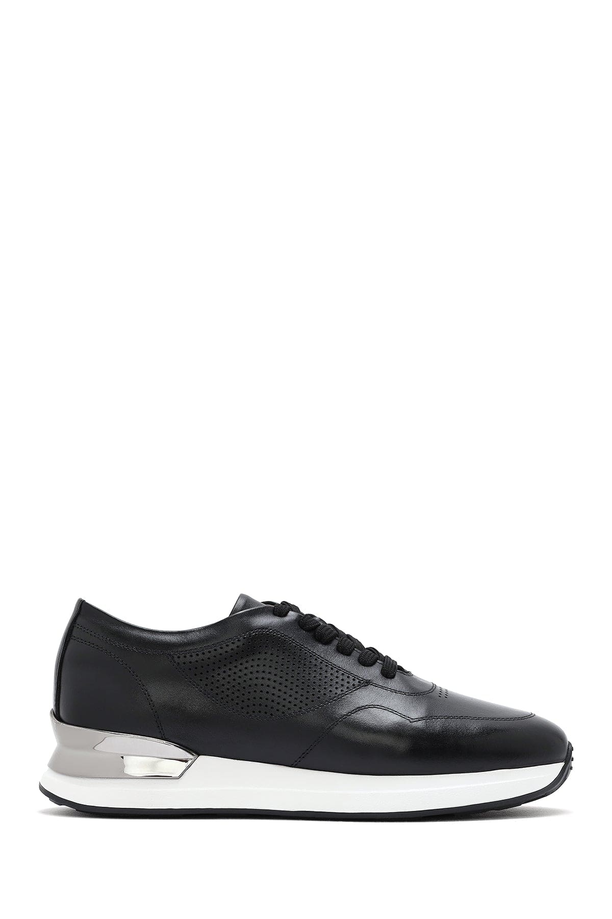 Erkek Siyah Bağcıklı Kalın Tabanlı Deri Sneaker