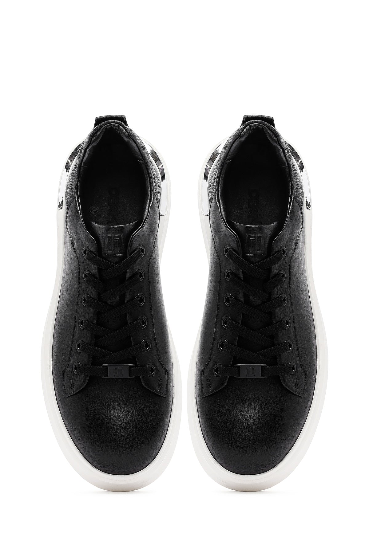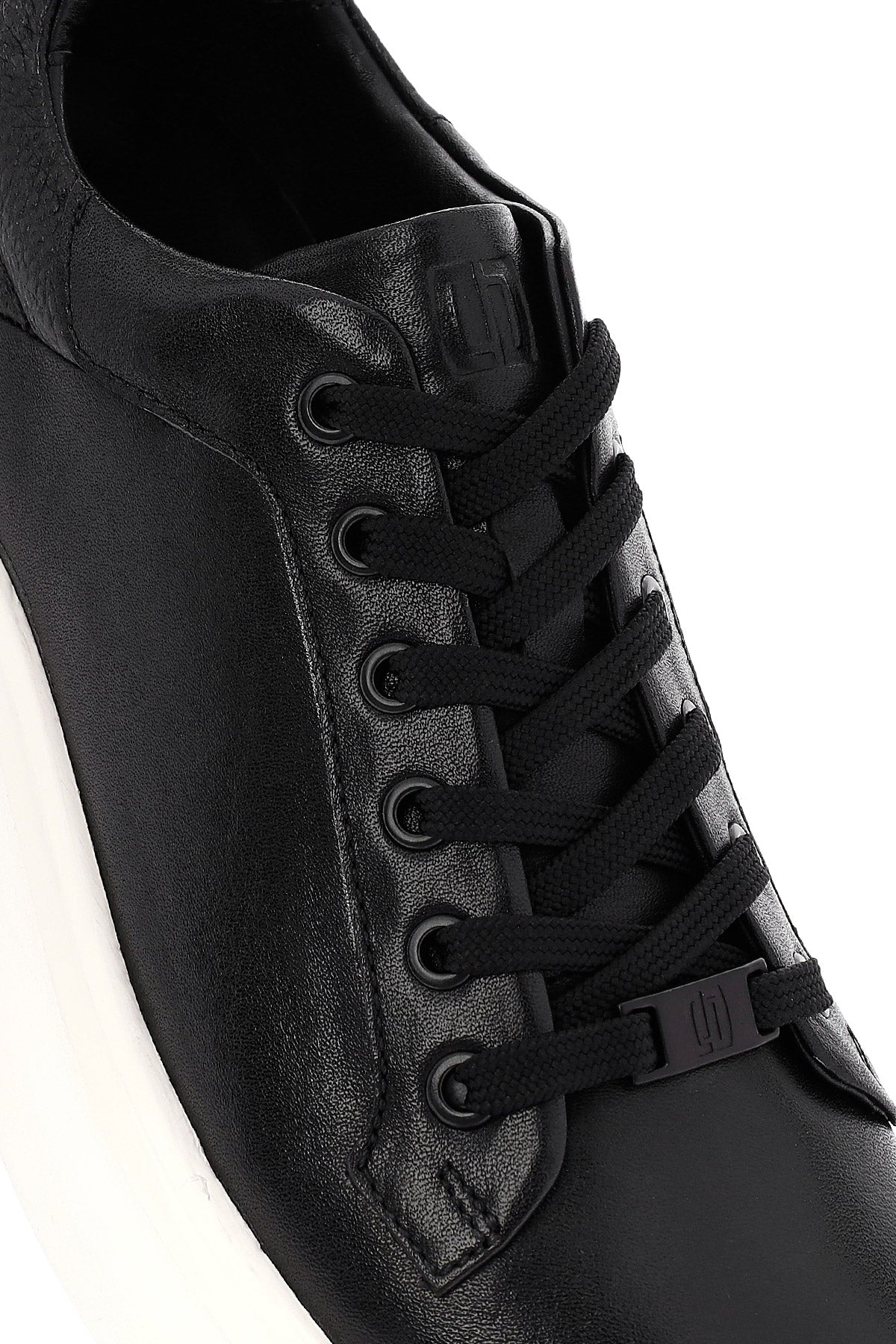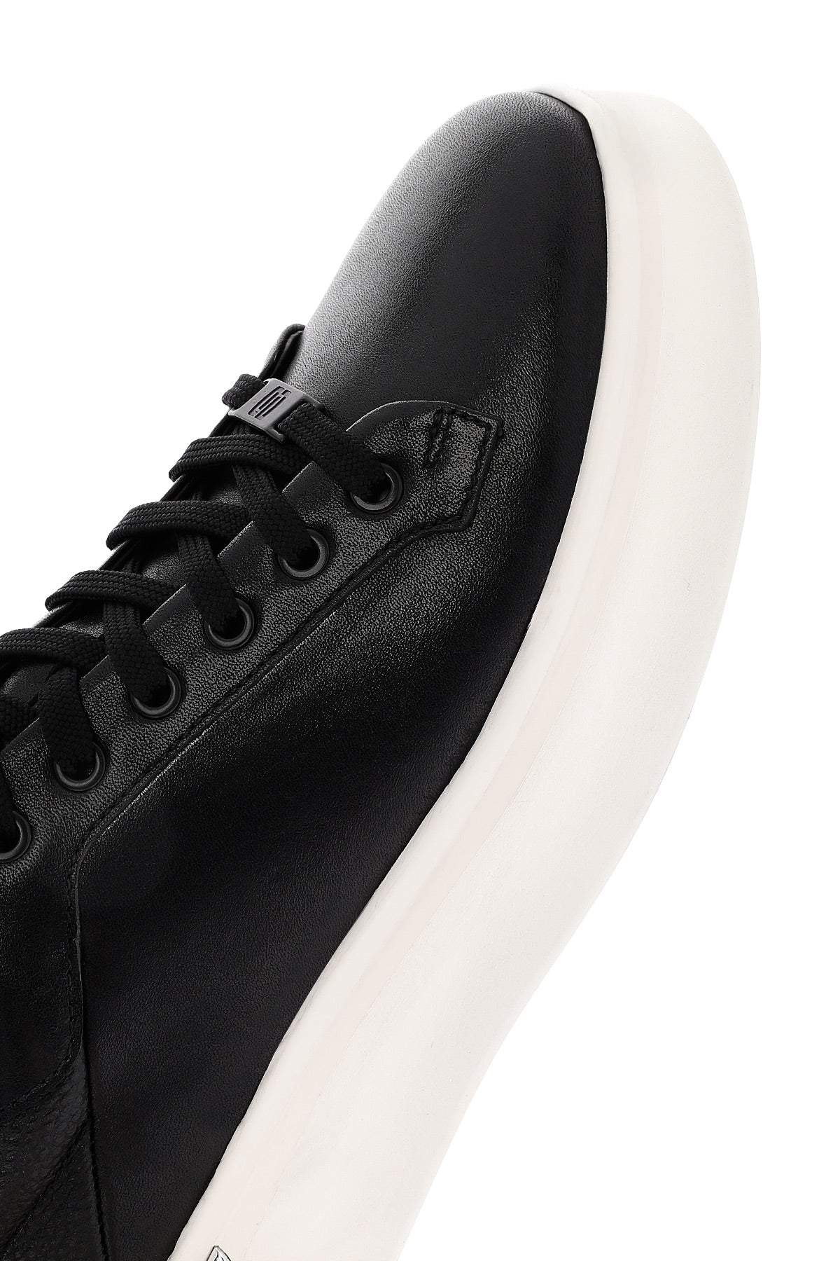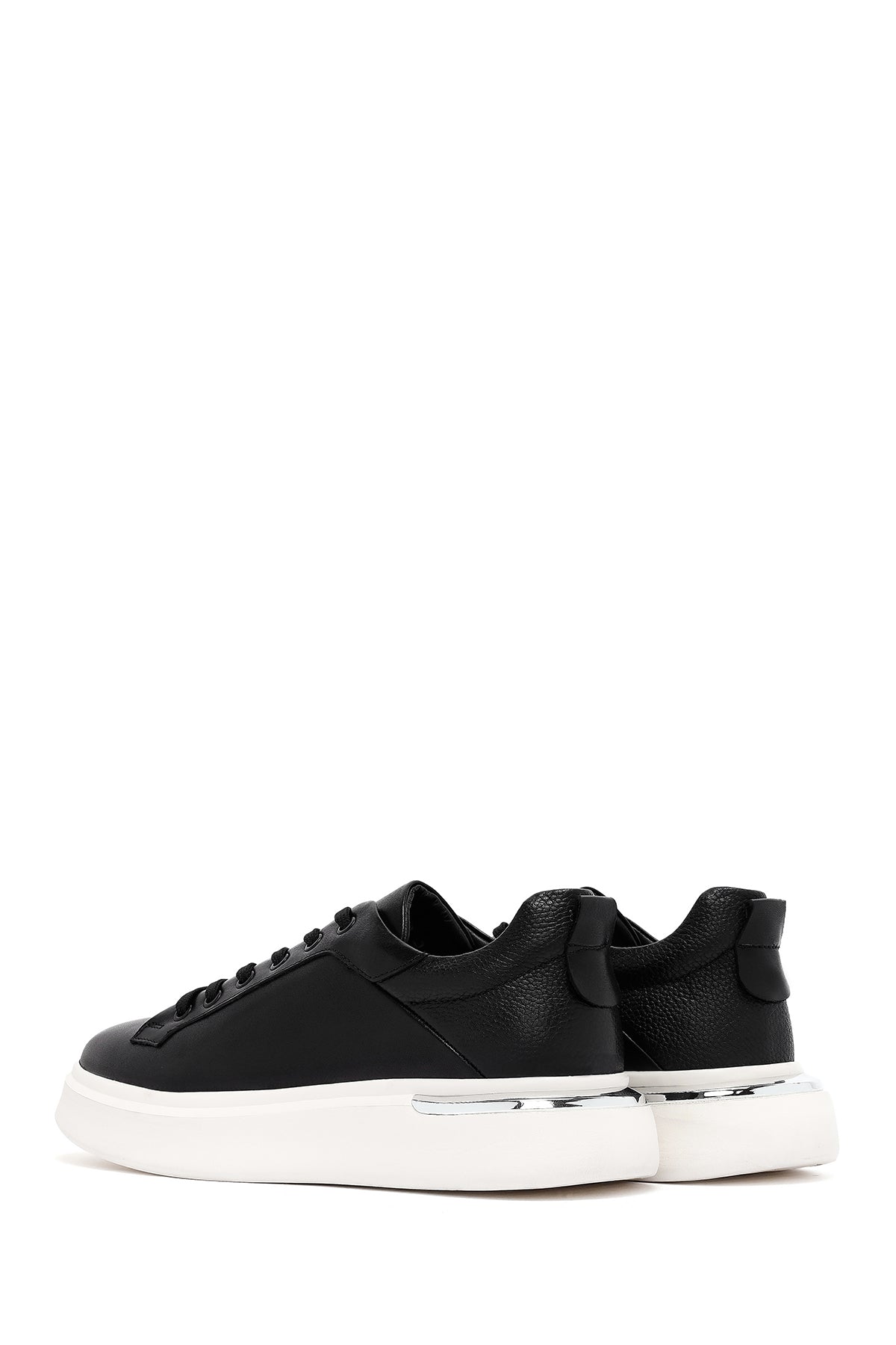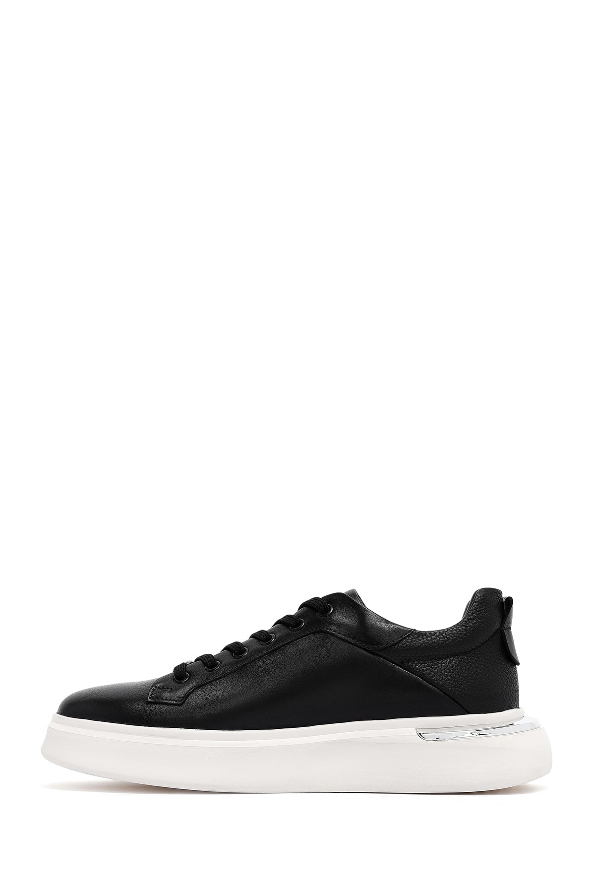 Erkek Siyah Bağcıklı Kalın Tabanlı Deri Sneaker