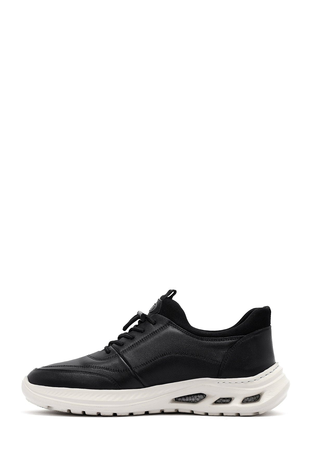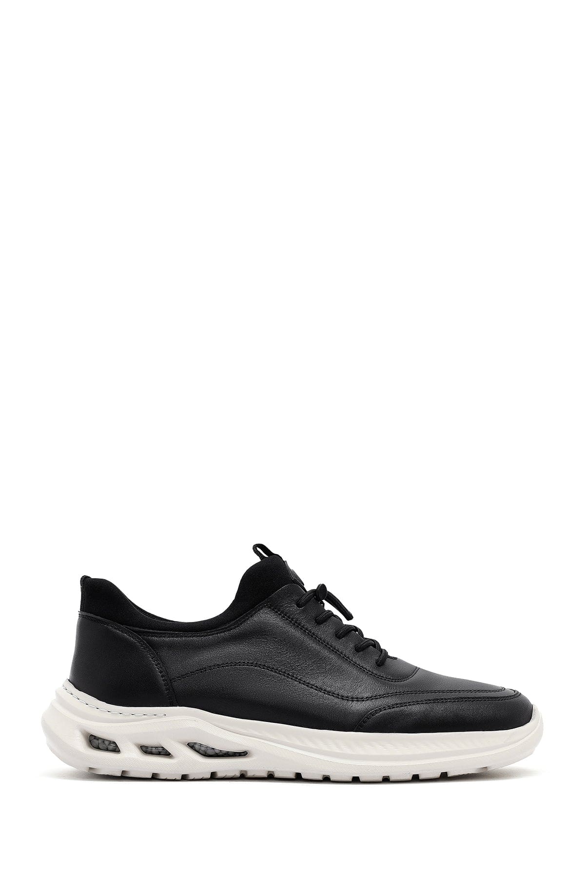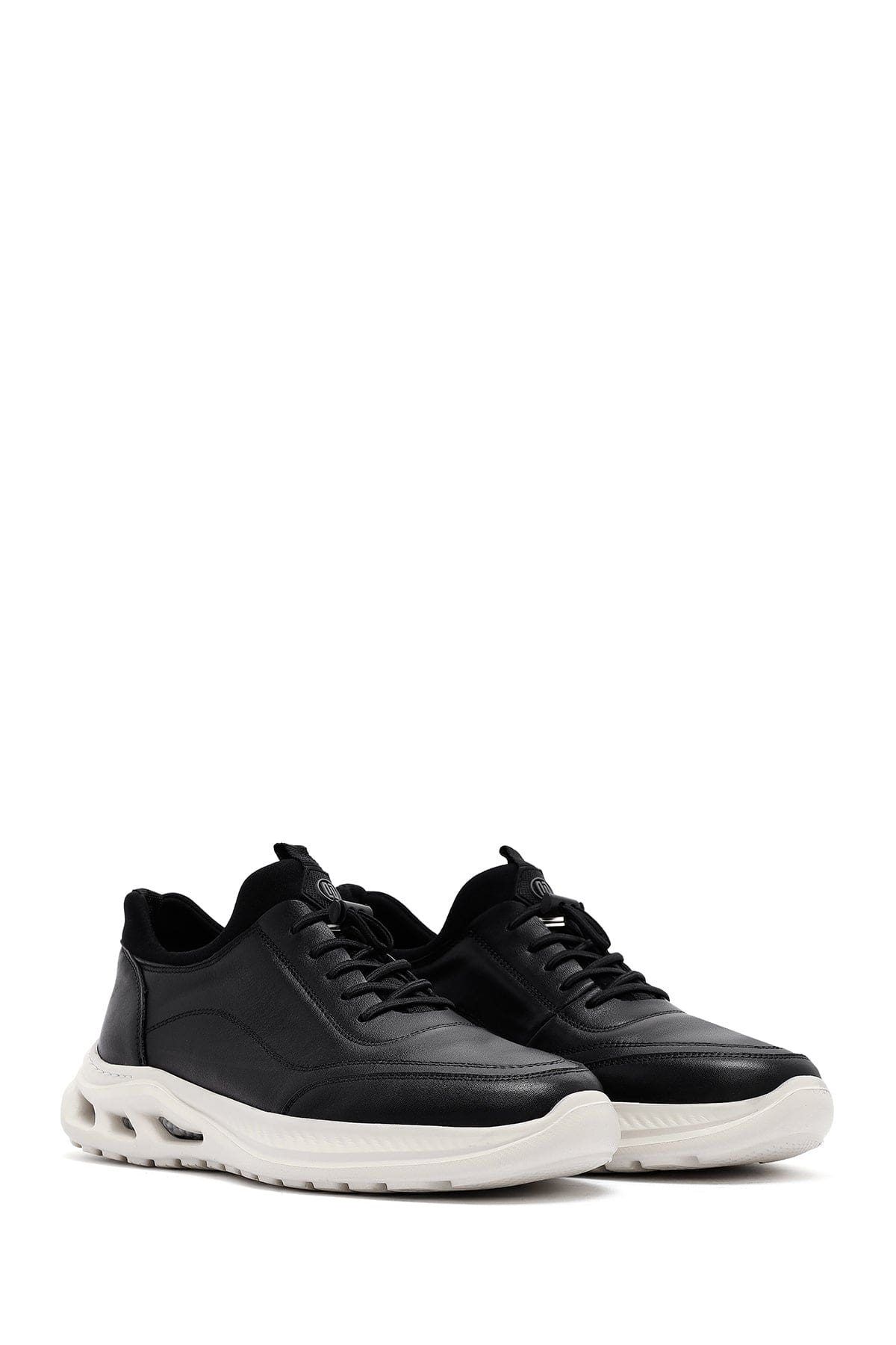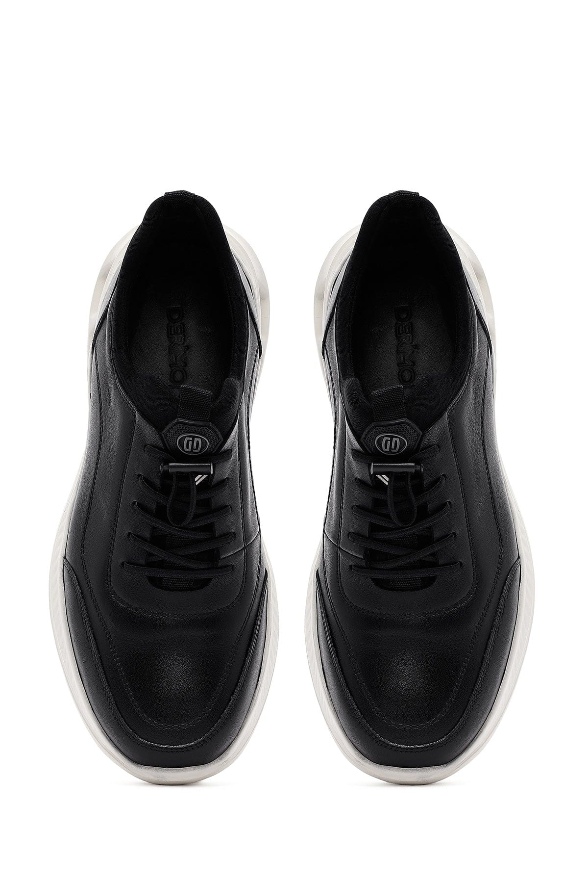 Erkek Siyah Bağcıklı Kalın Tabanlı Deri Sneaker