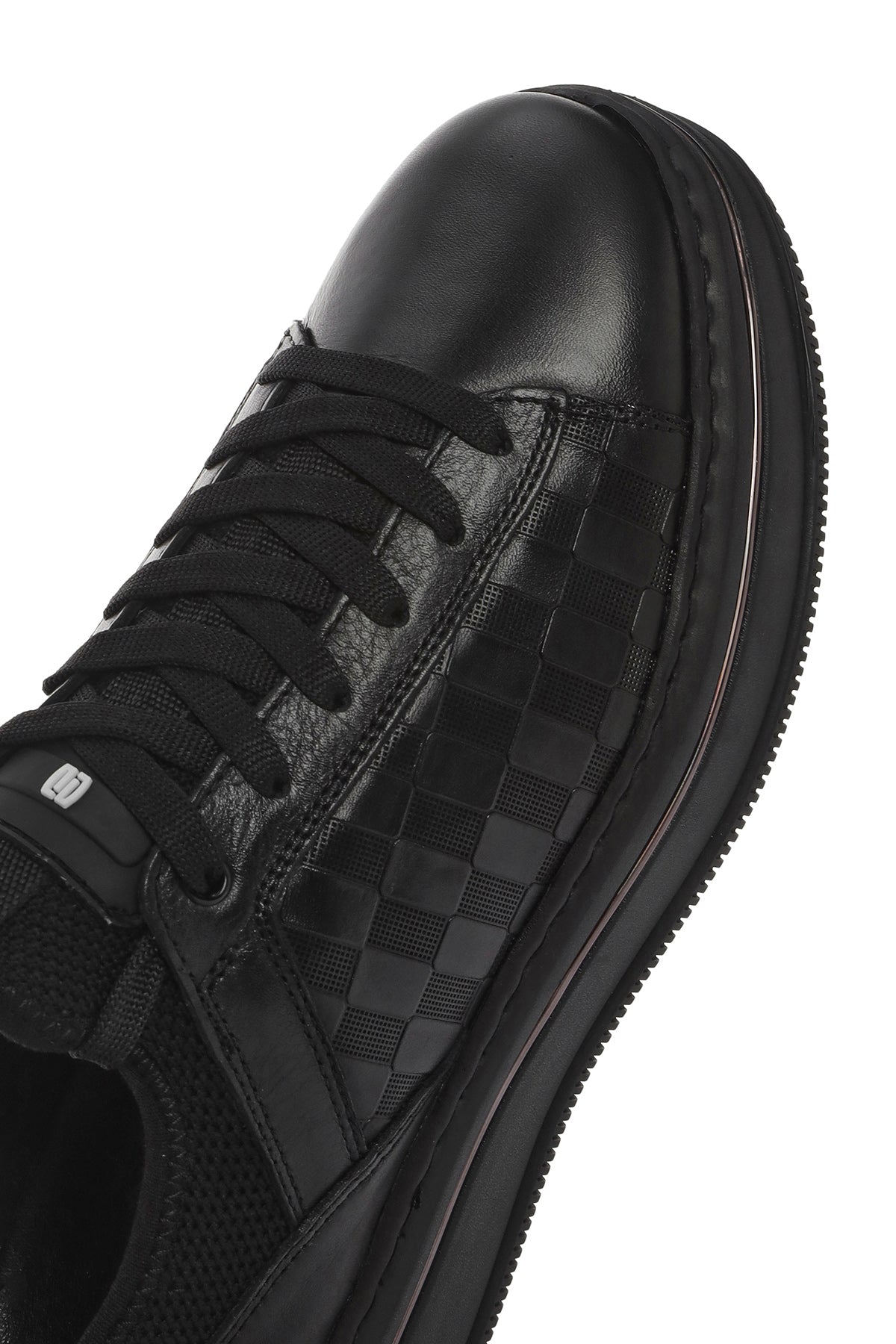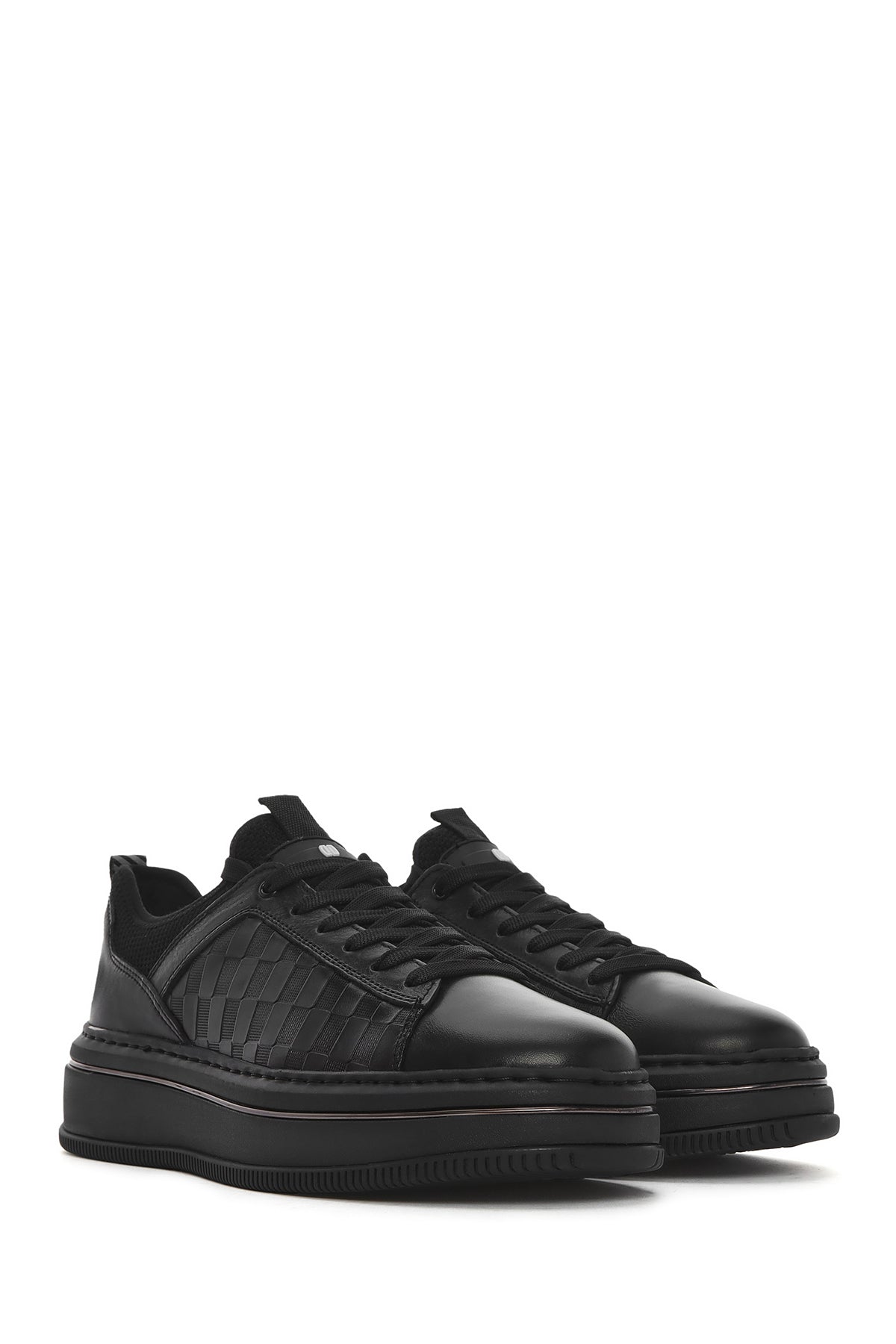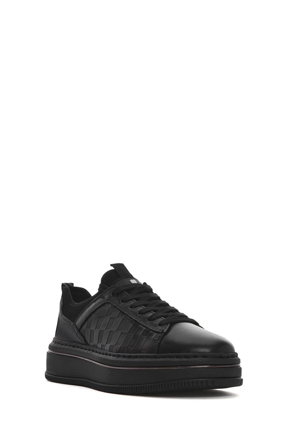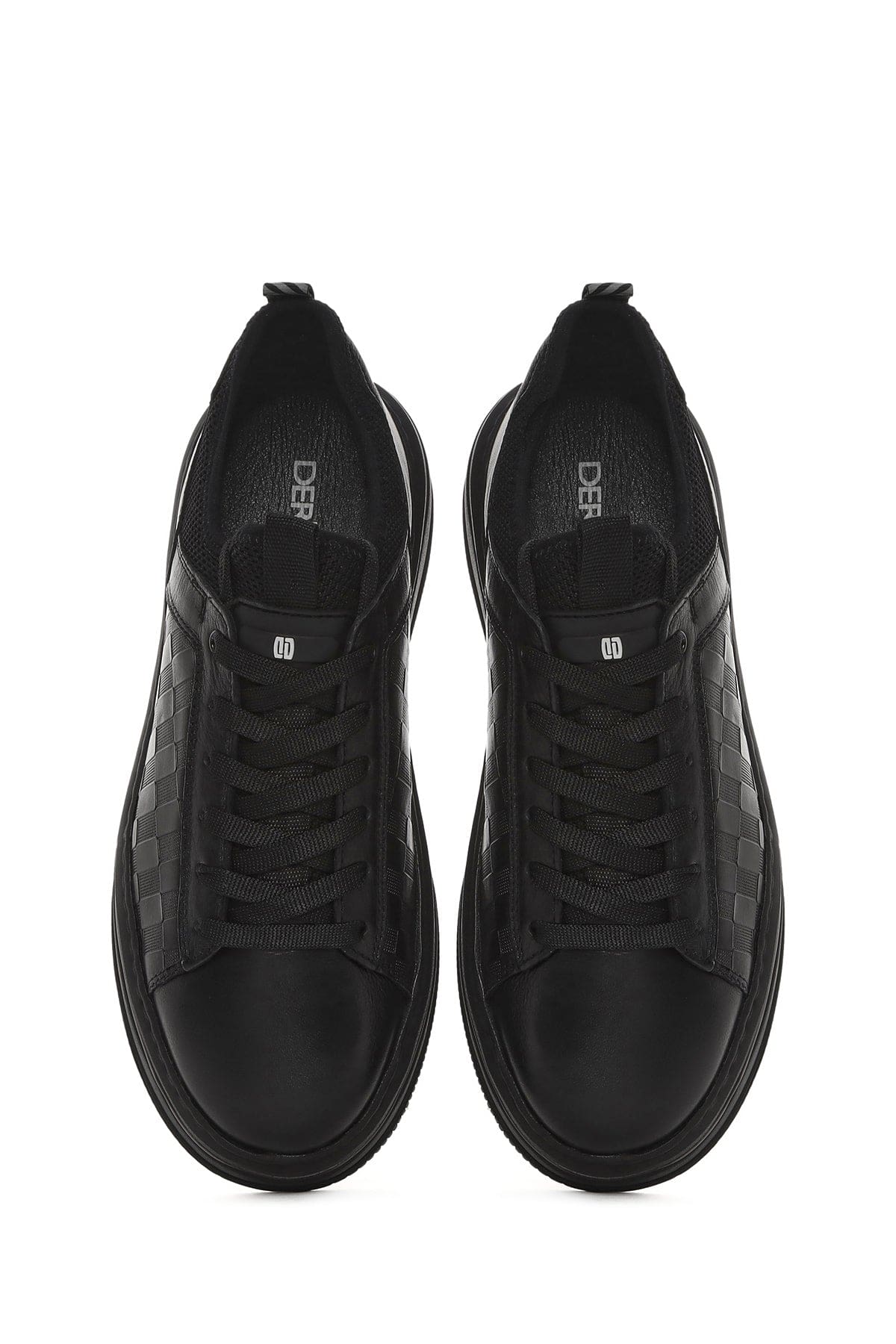 Erkek Siyah Bağcıklı Kalın Tabanlı Deri Sneaker