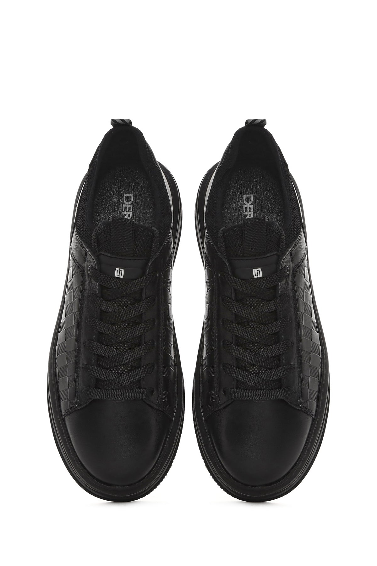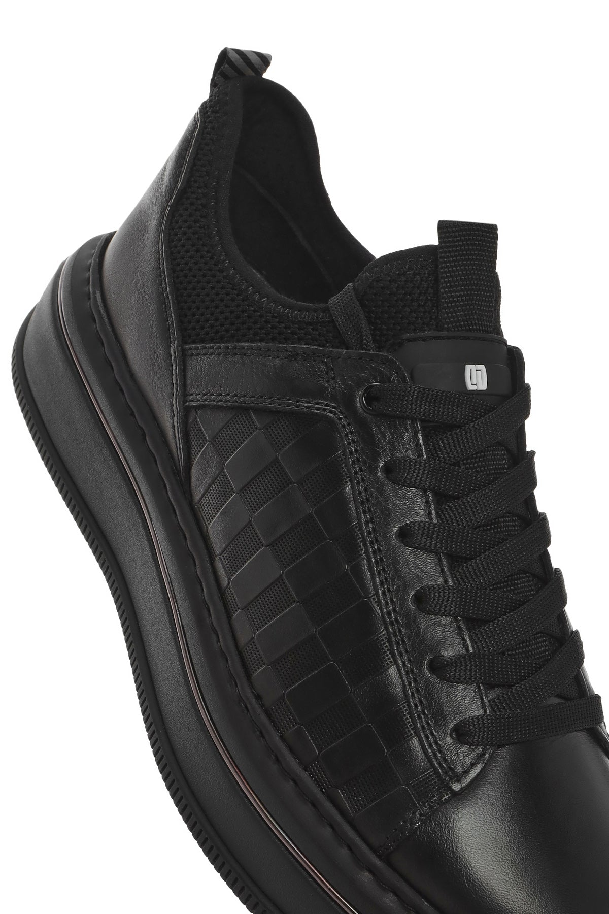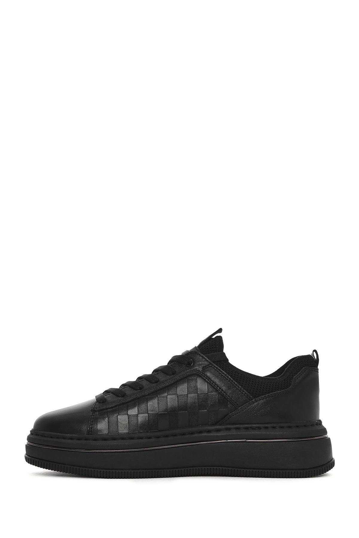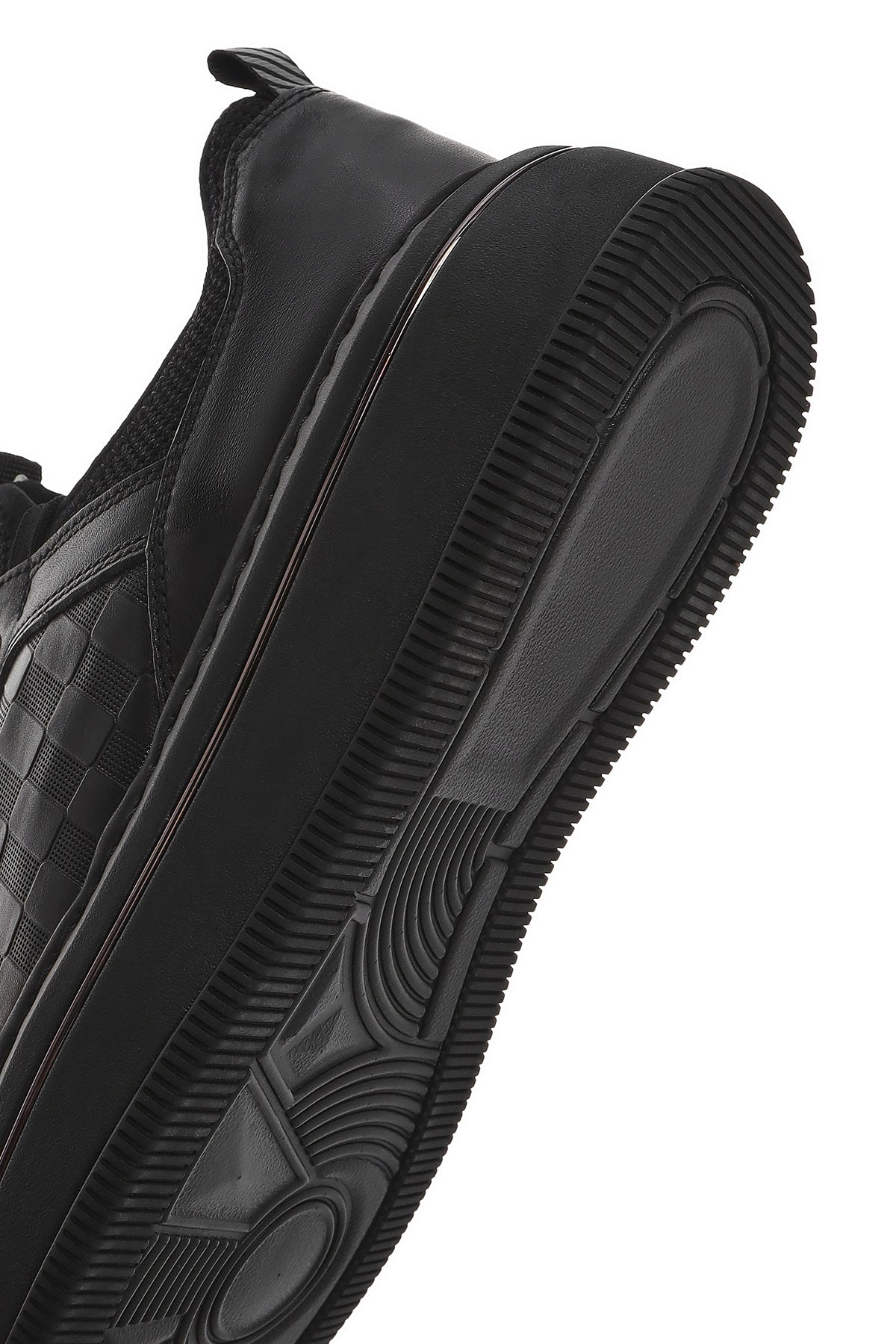 Erkek Siyah Bağcıklı Kalın Tabanlı Deri Sneaker