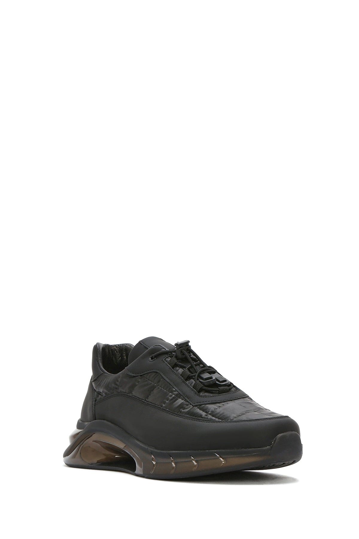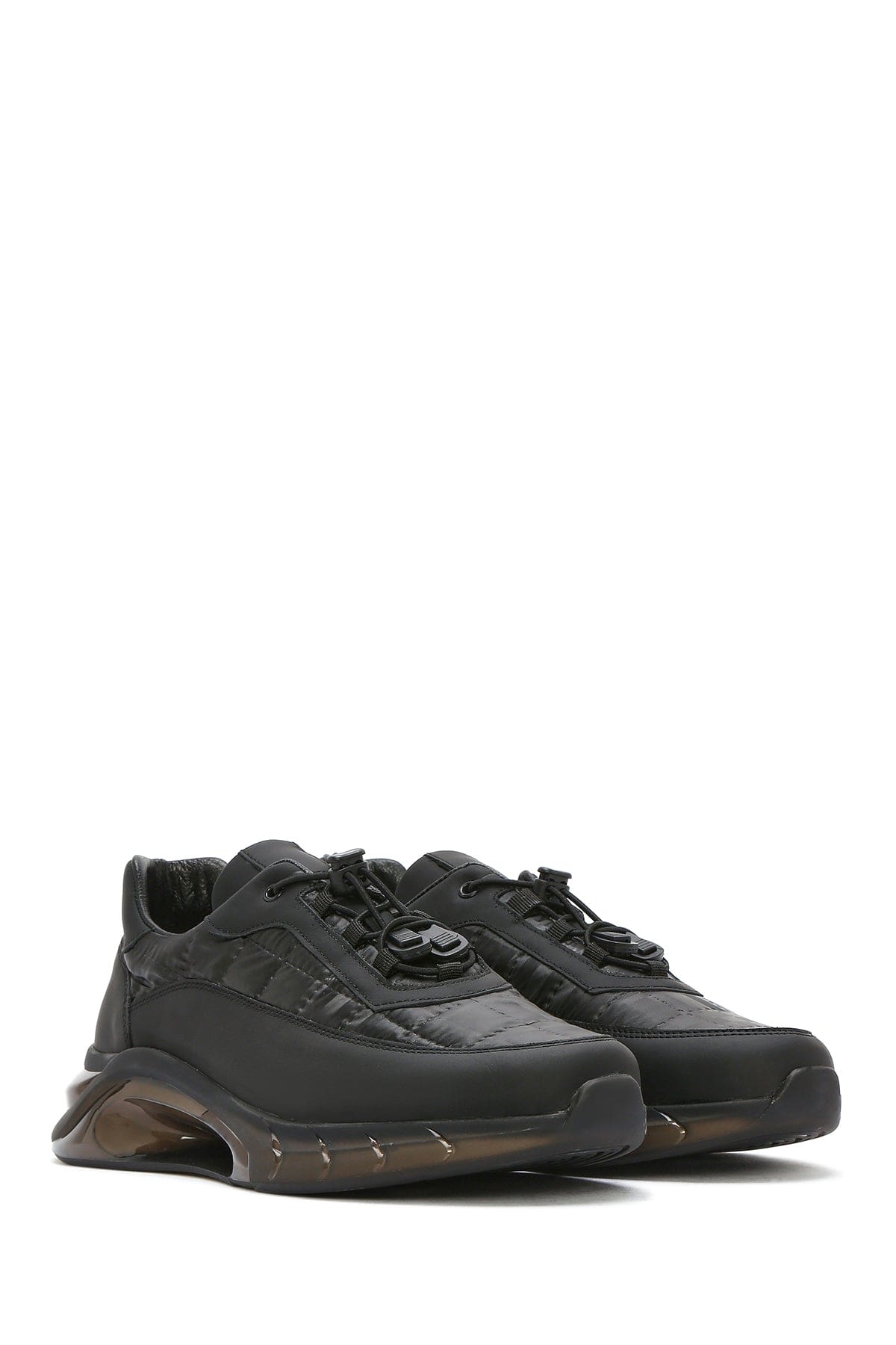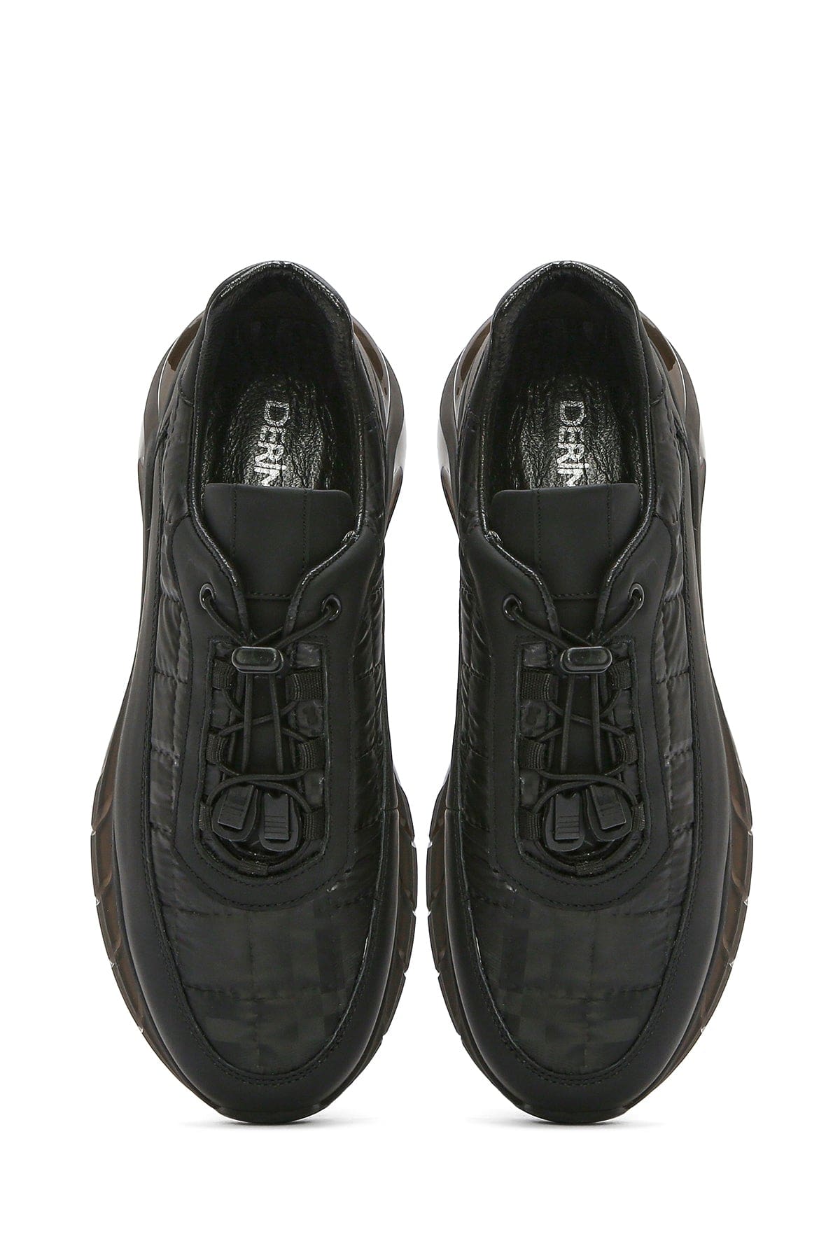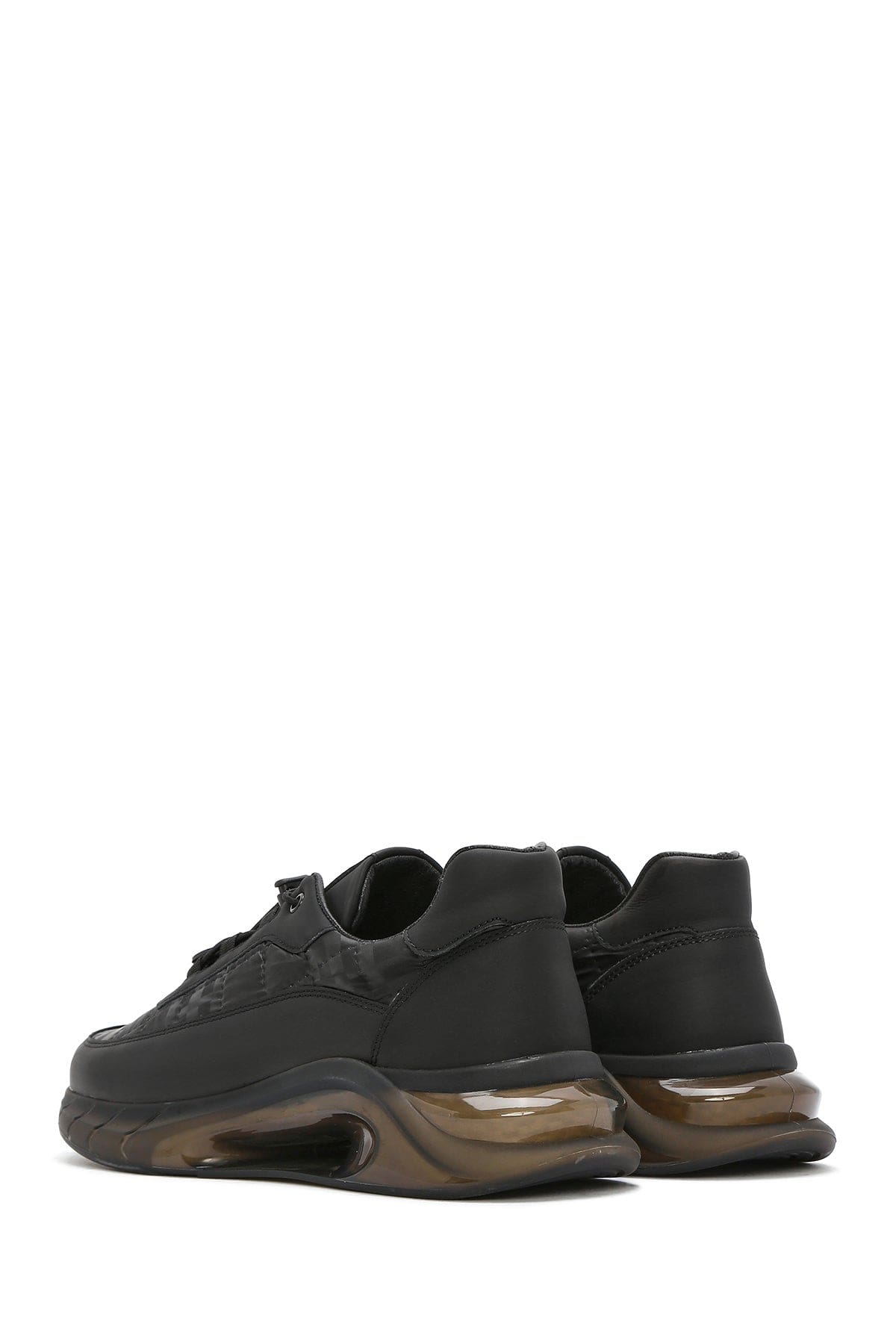 Erkek Siyah Bağcıklı Kalın Tabanlı Deri Sneaker