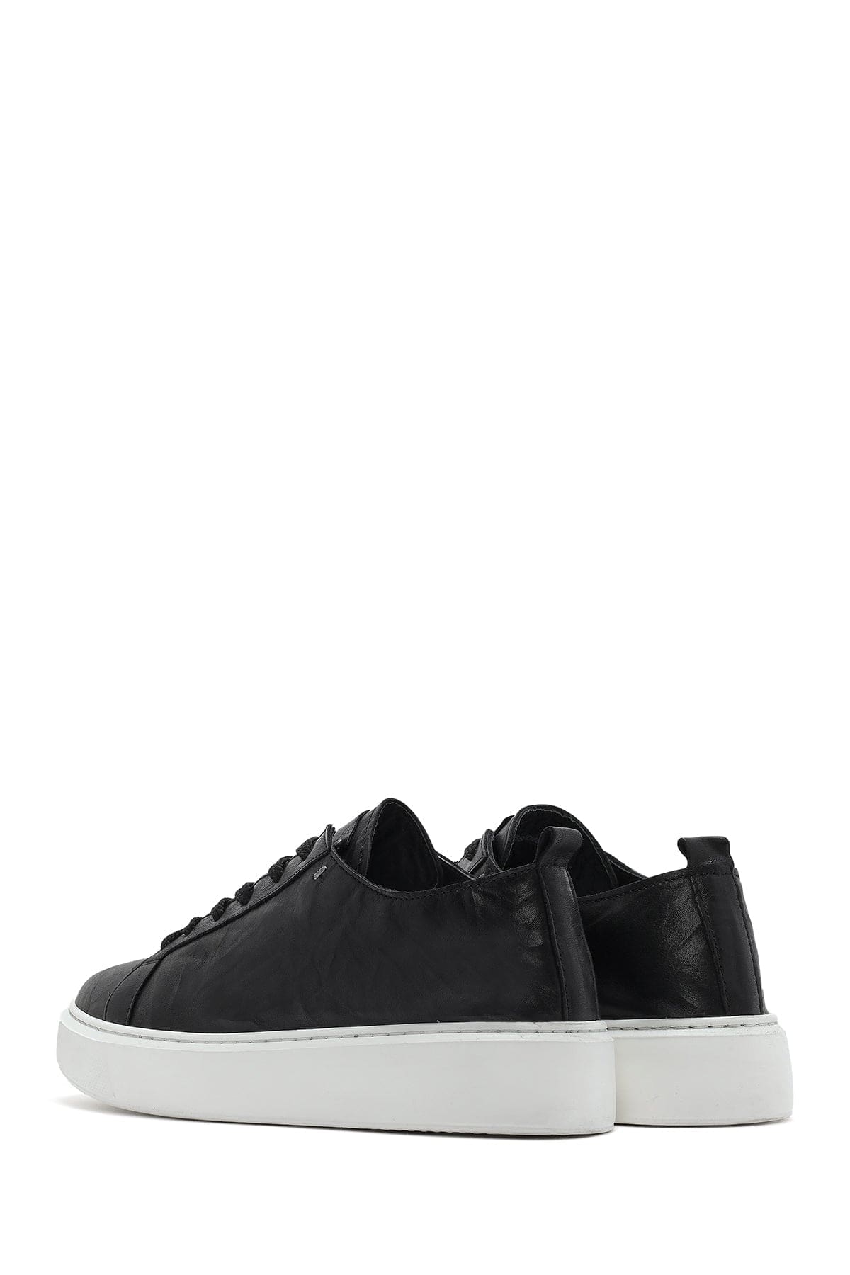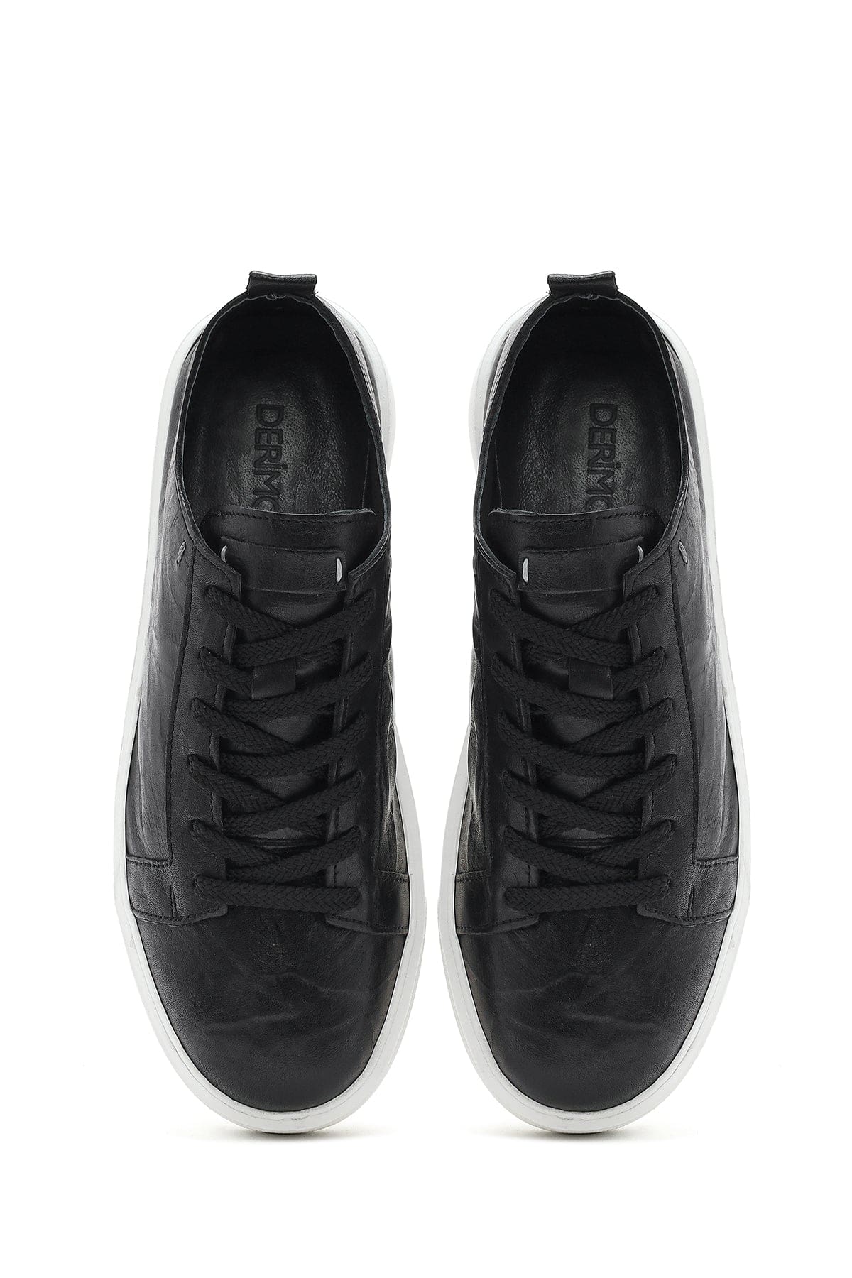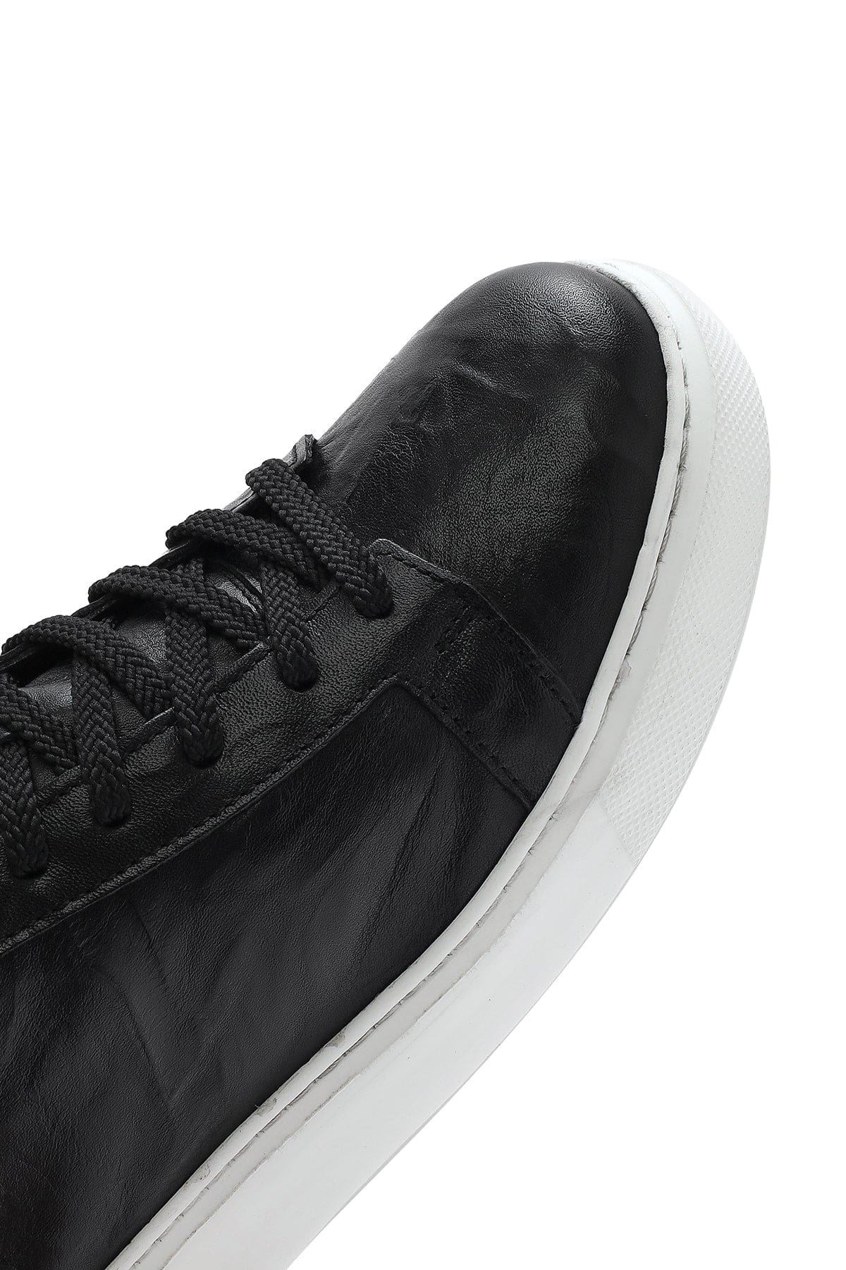 Erkek Siyah Bağcıklı Kalın Tabanlı Deri Sneaker