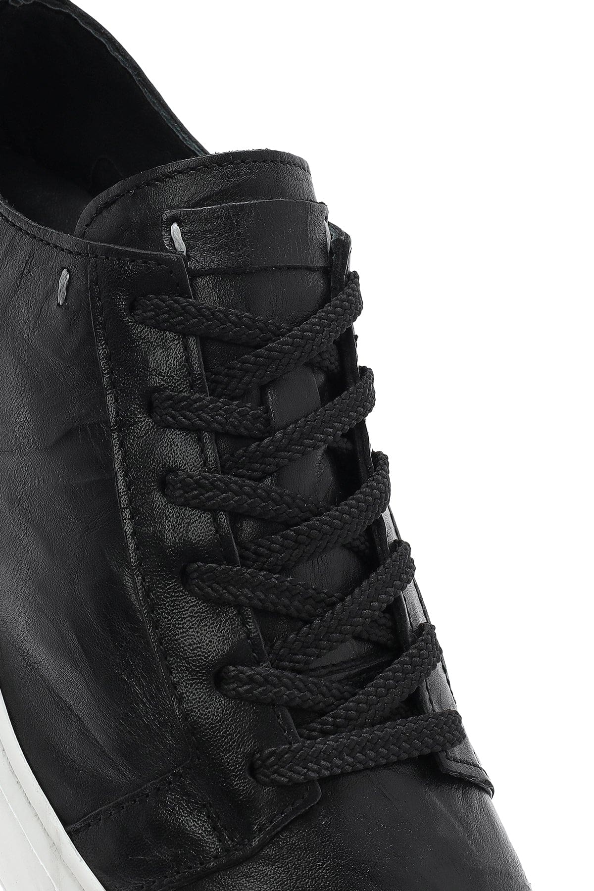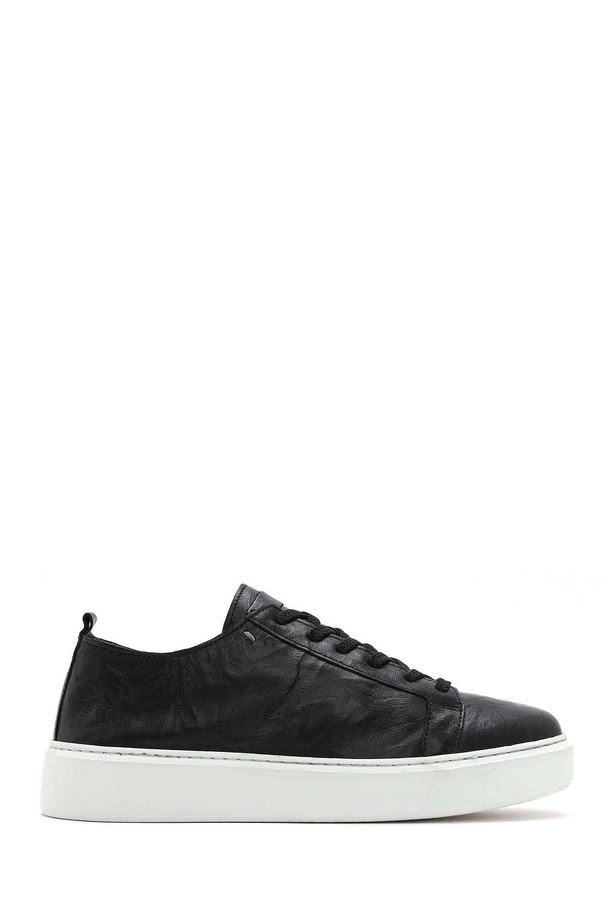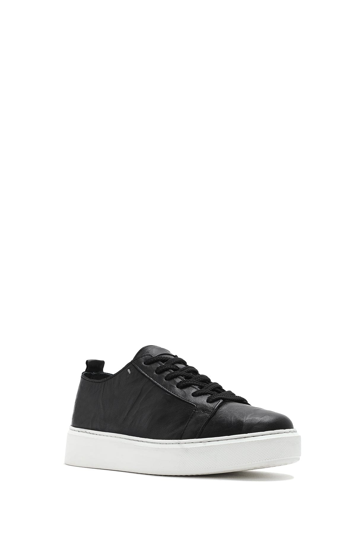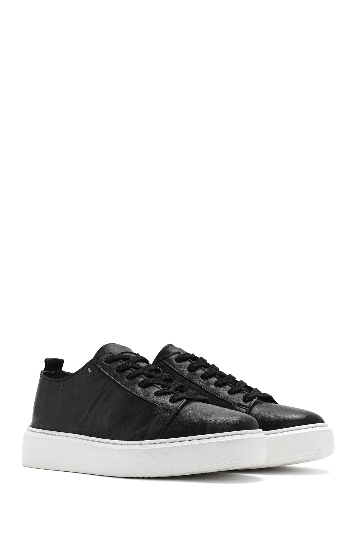 Erkek Siyah Bağcıklı Kalın Tabanlı Deri Sneaker