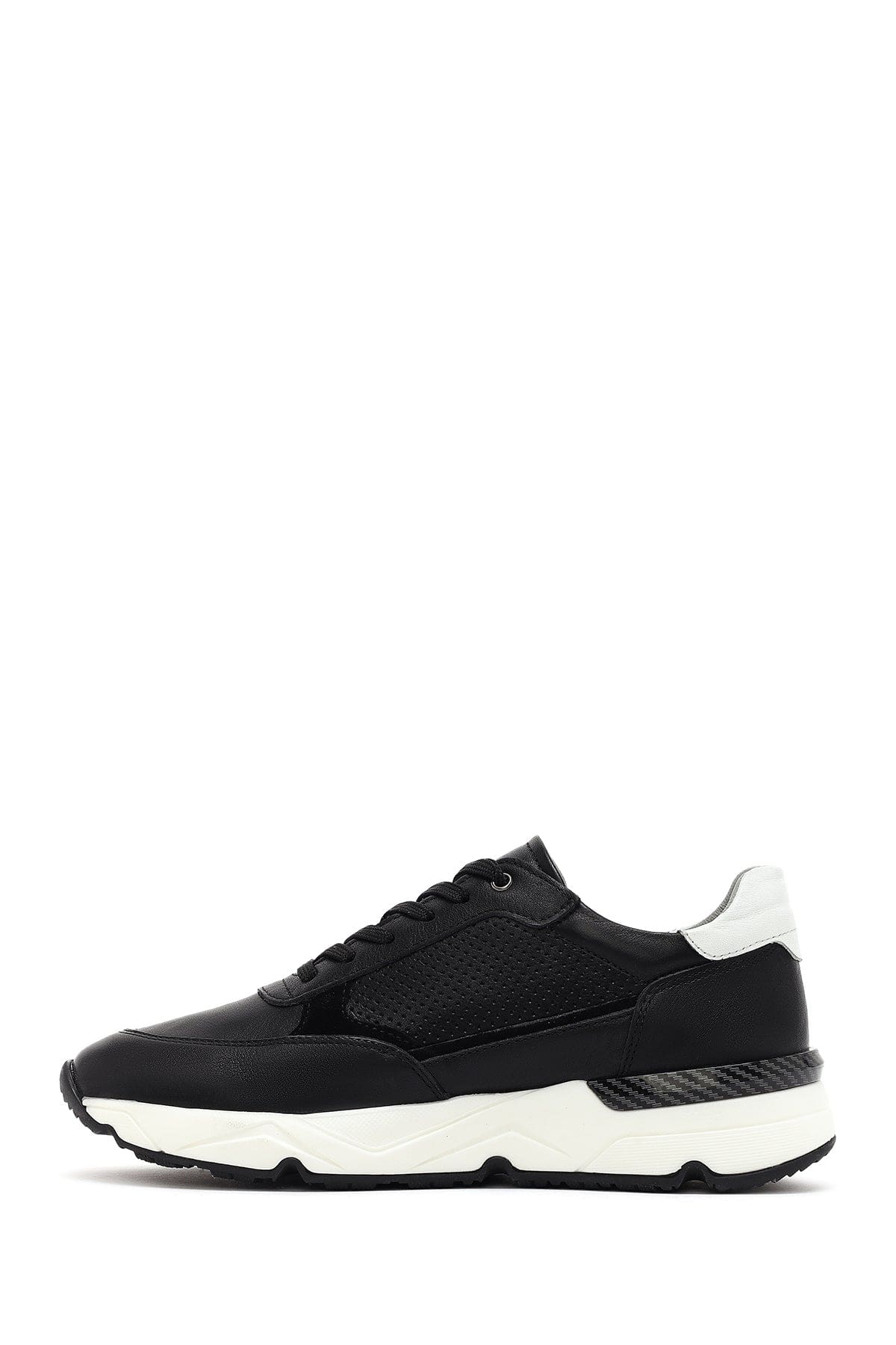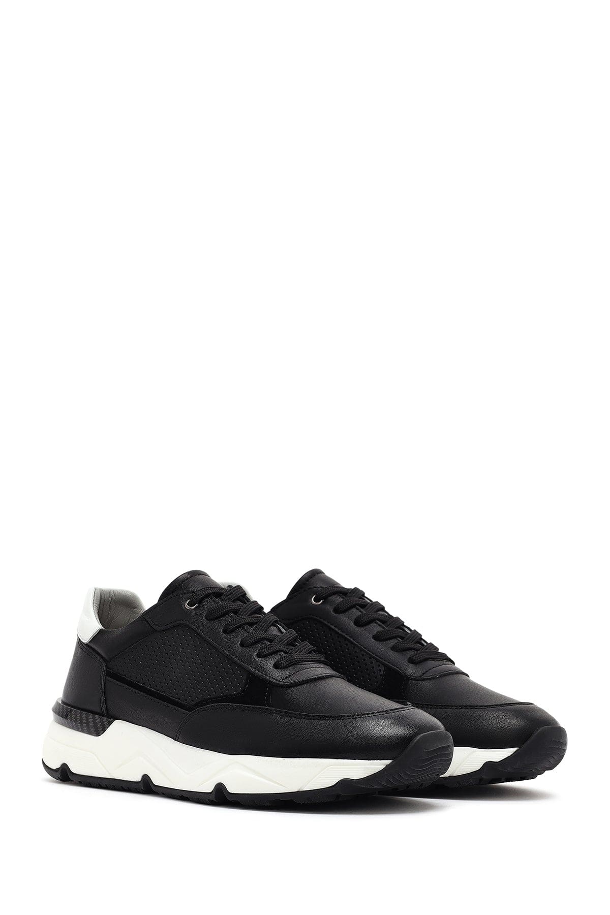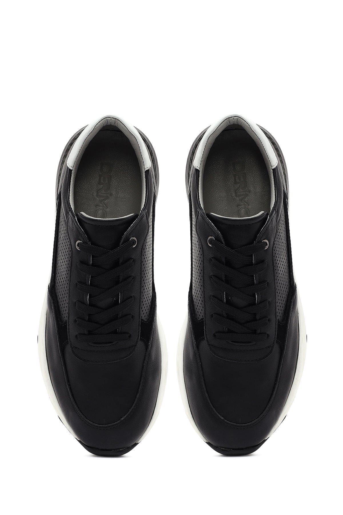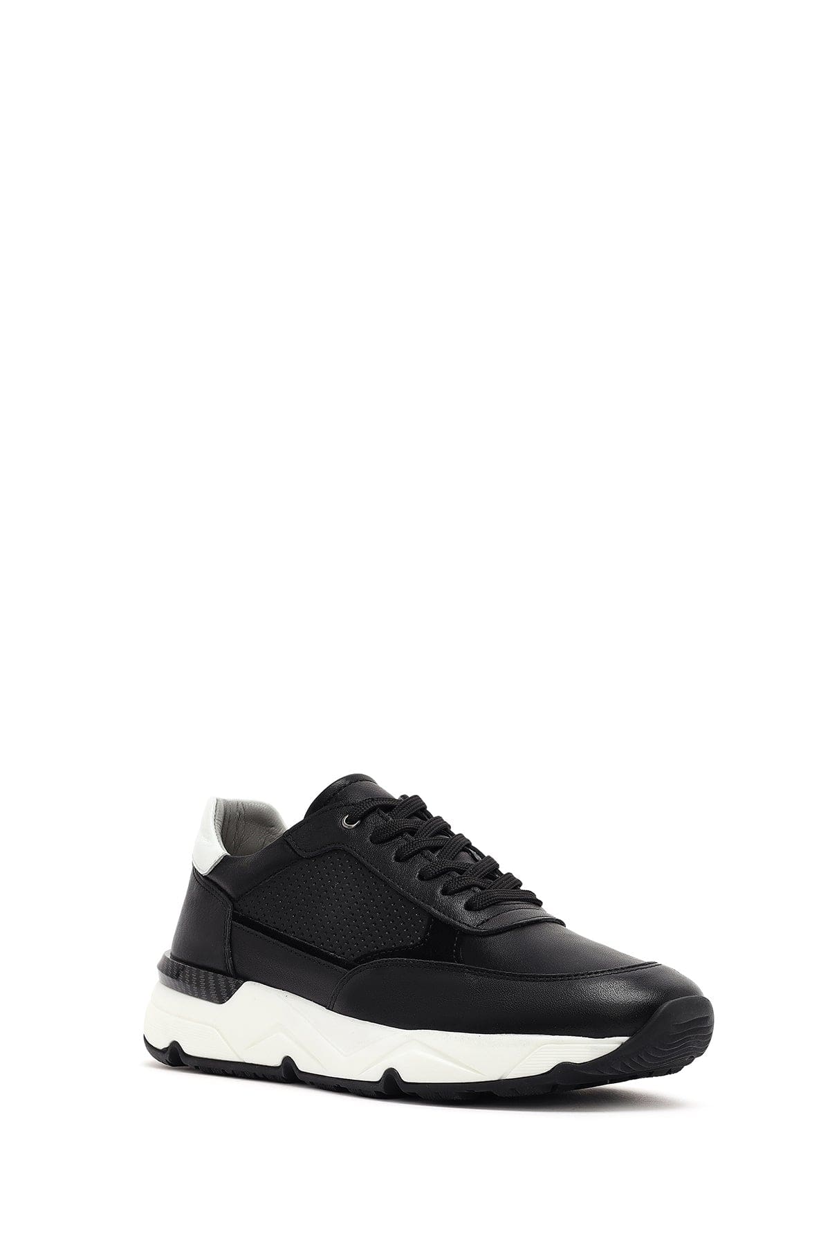 Erkek Siyah Bağcıklı Kalın Tabanlı Deri Sneaker