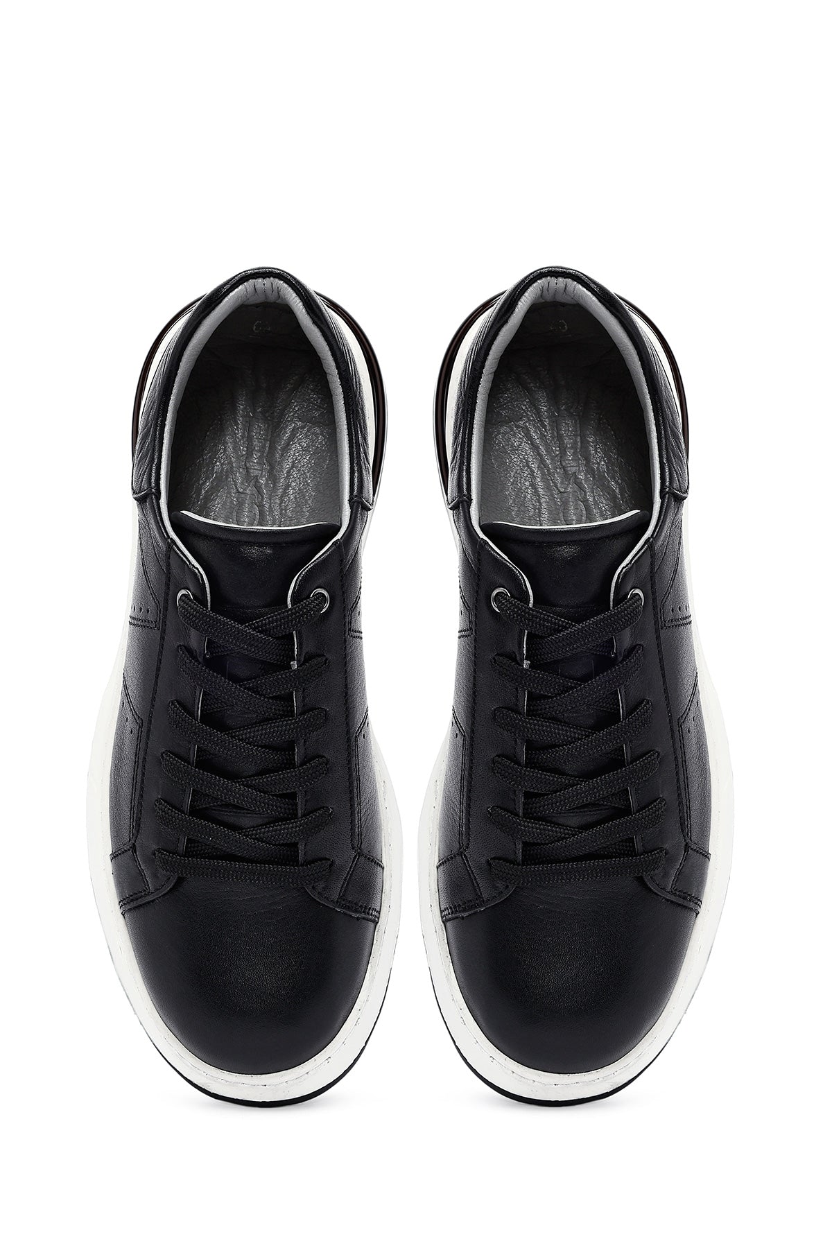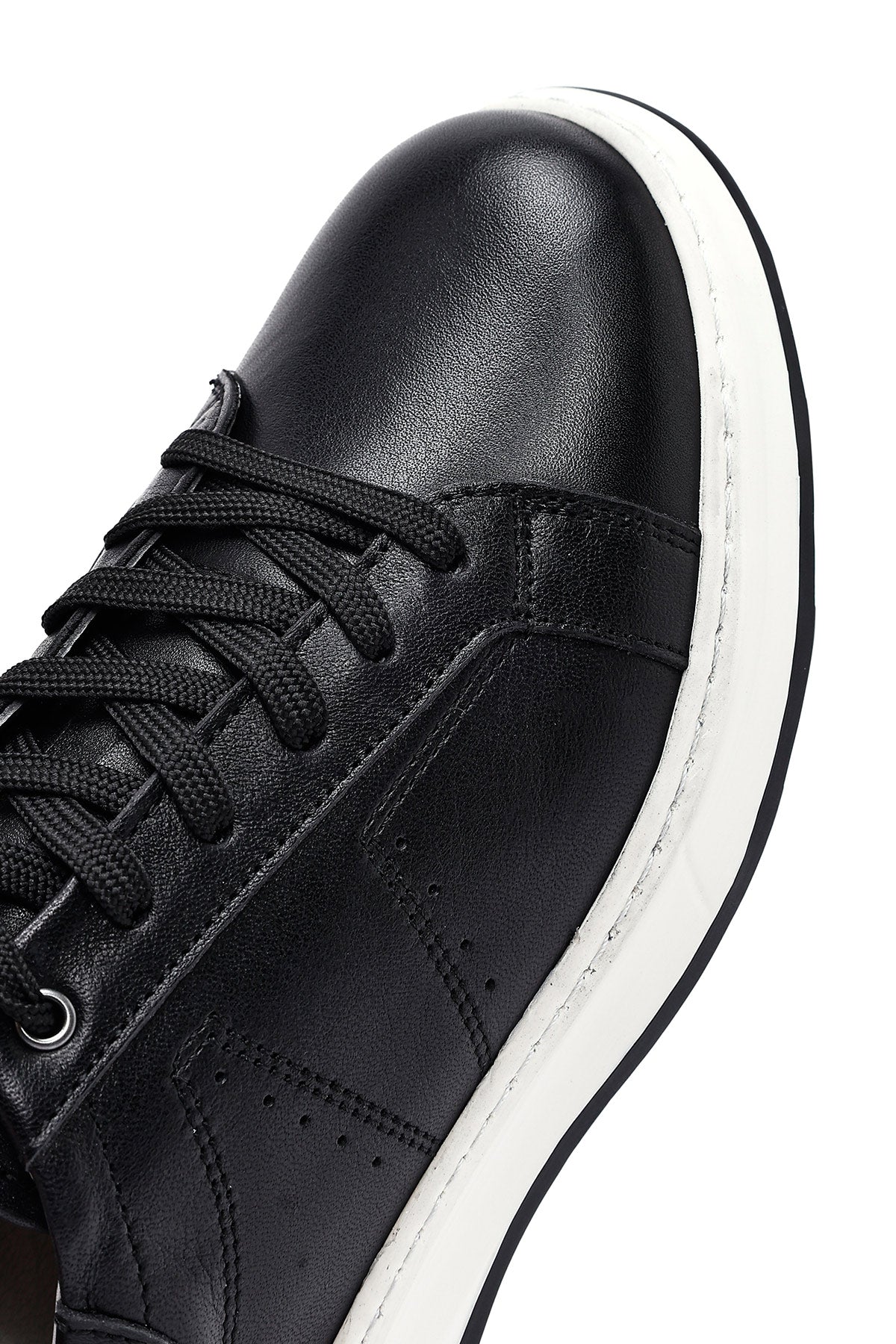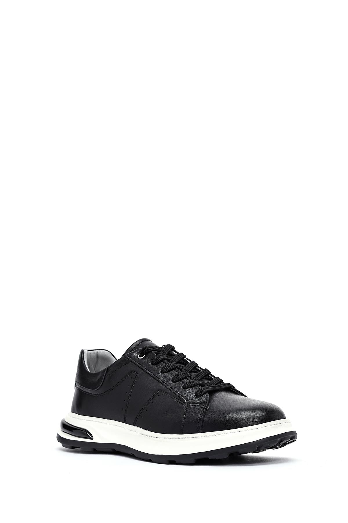 Erkek Siyah Bağcıklı Kalın Tabanlı Deri Sneaker