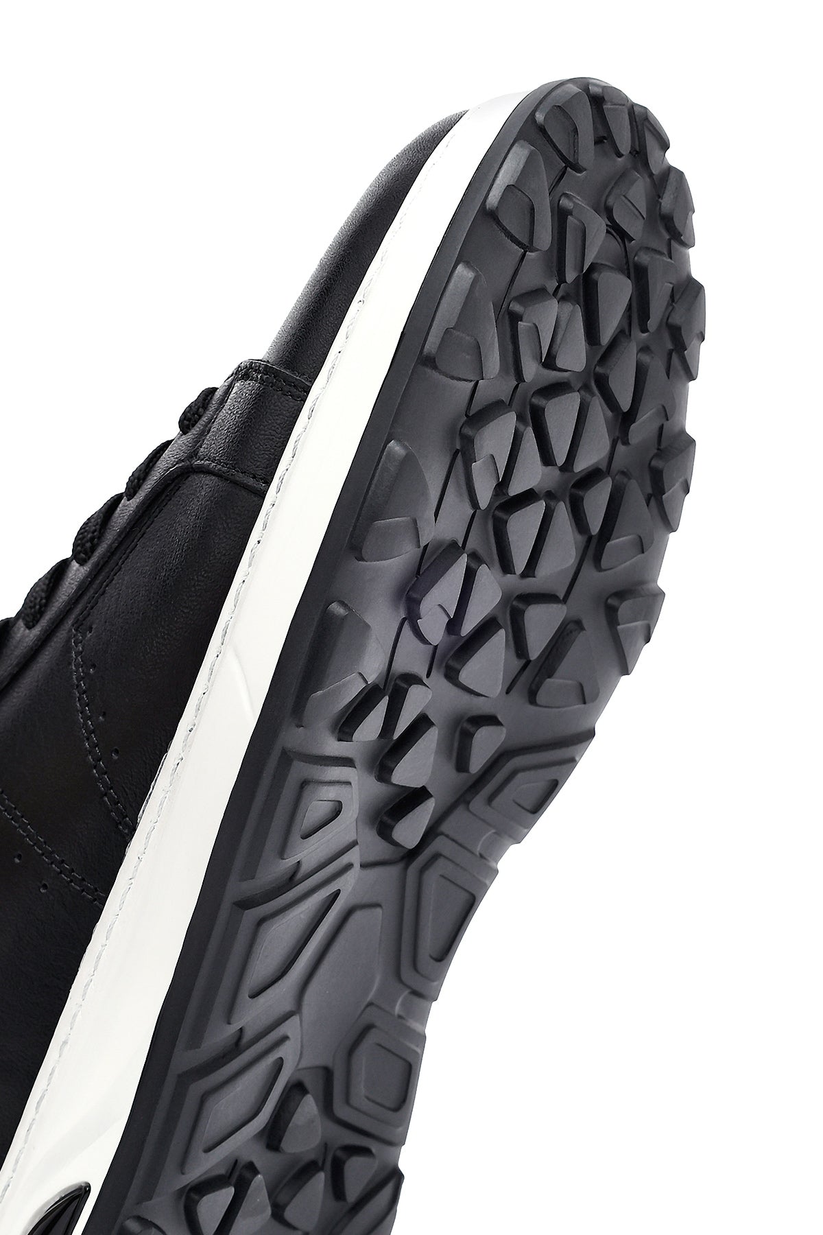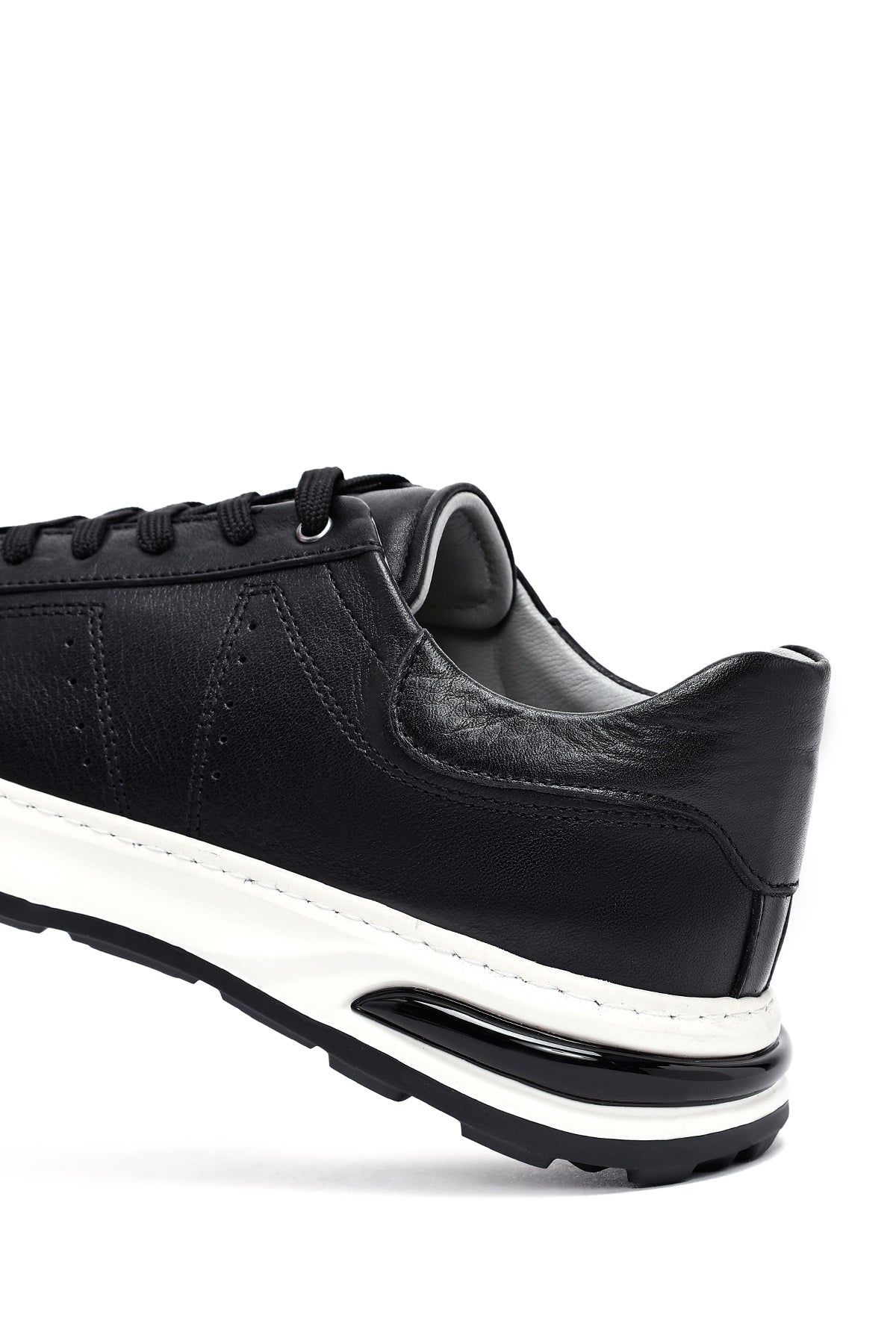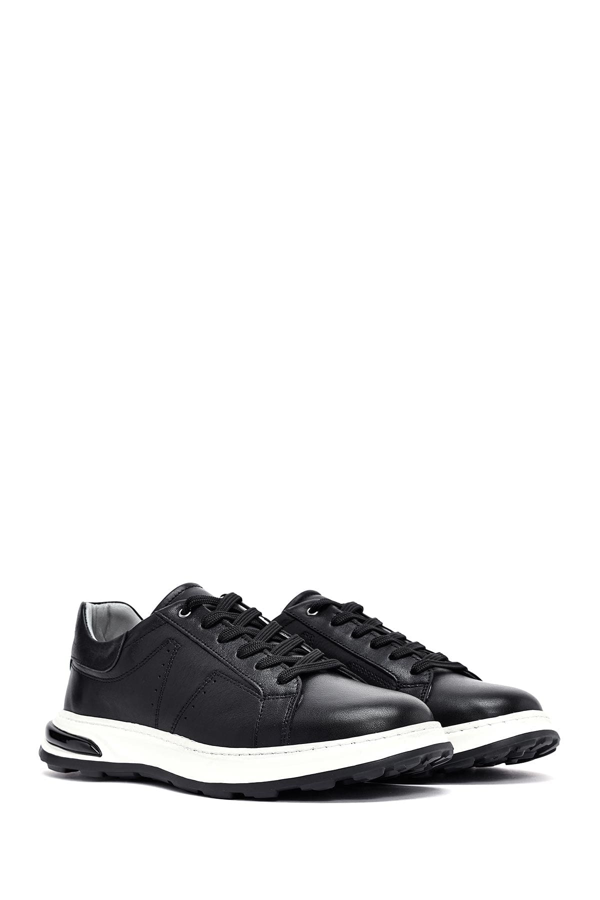 Erkek Siyah Bağcıklı Kalın Tabanlı Deri Sneaker