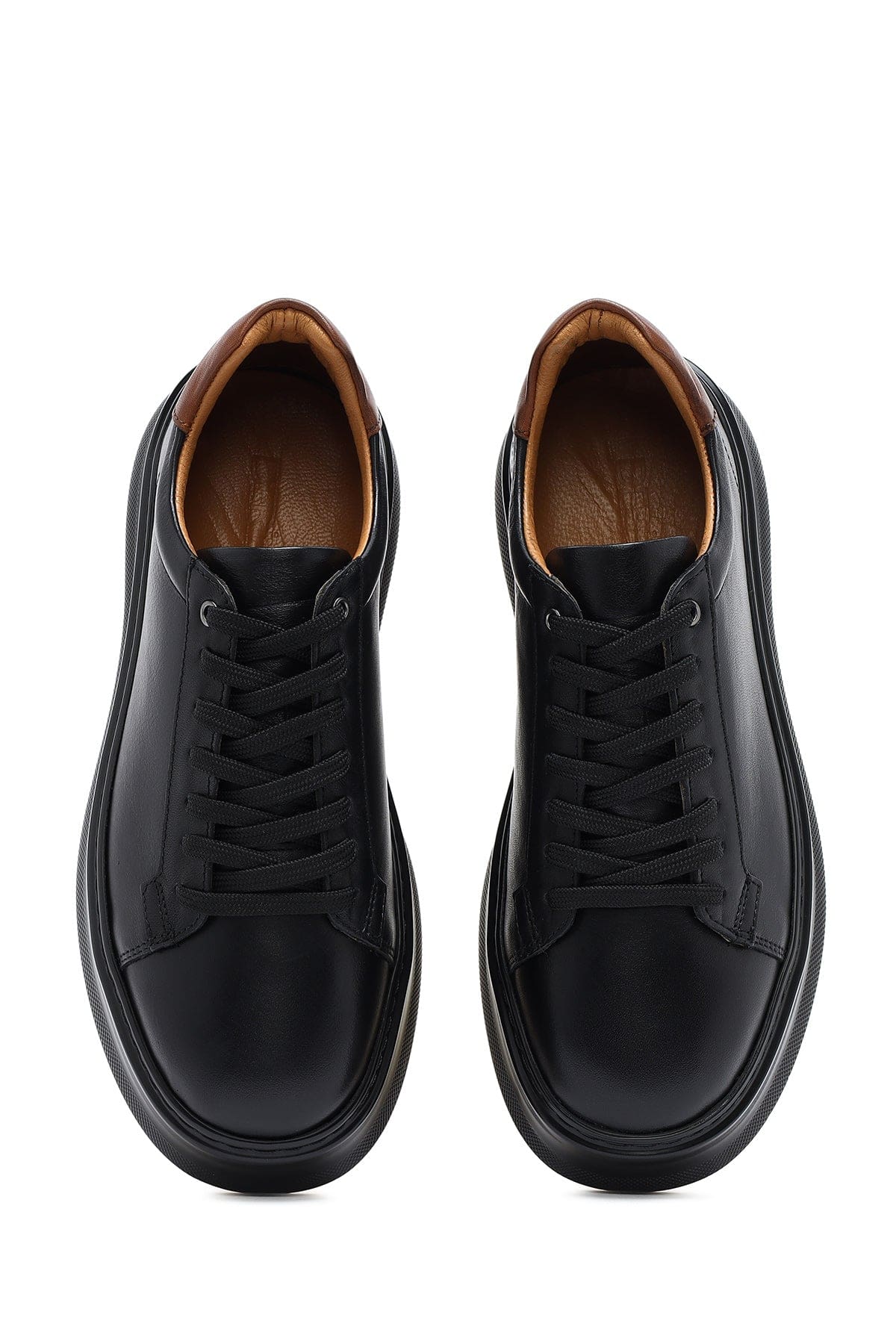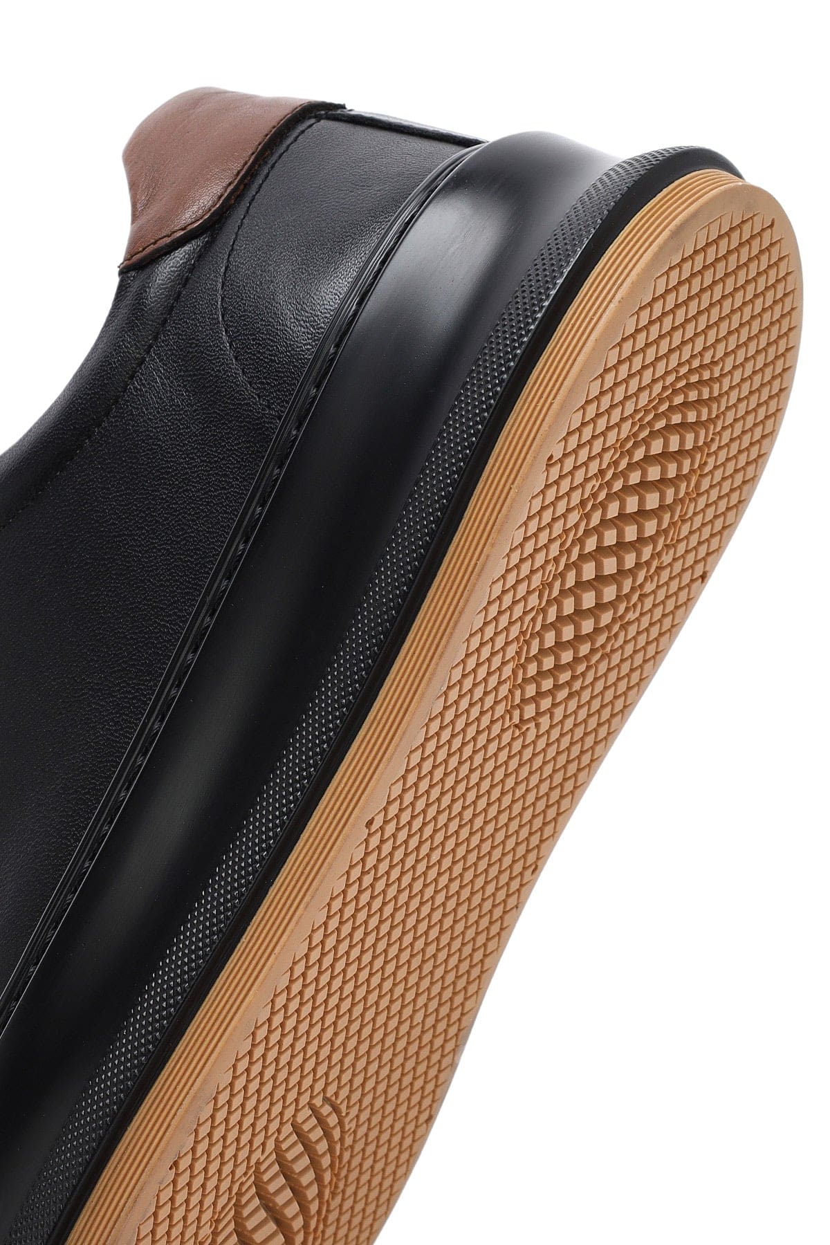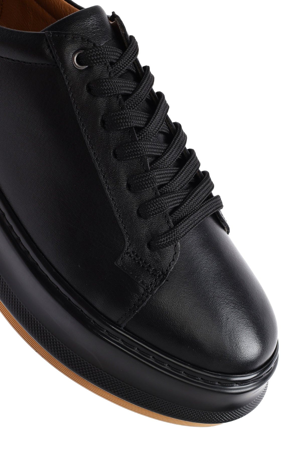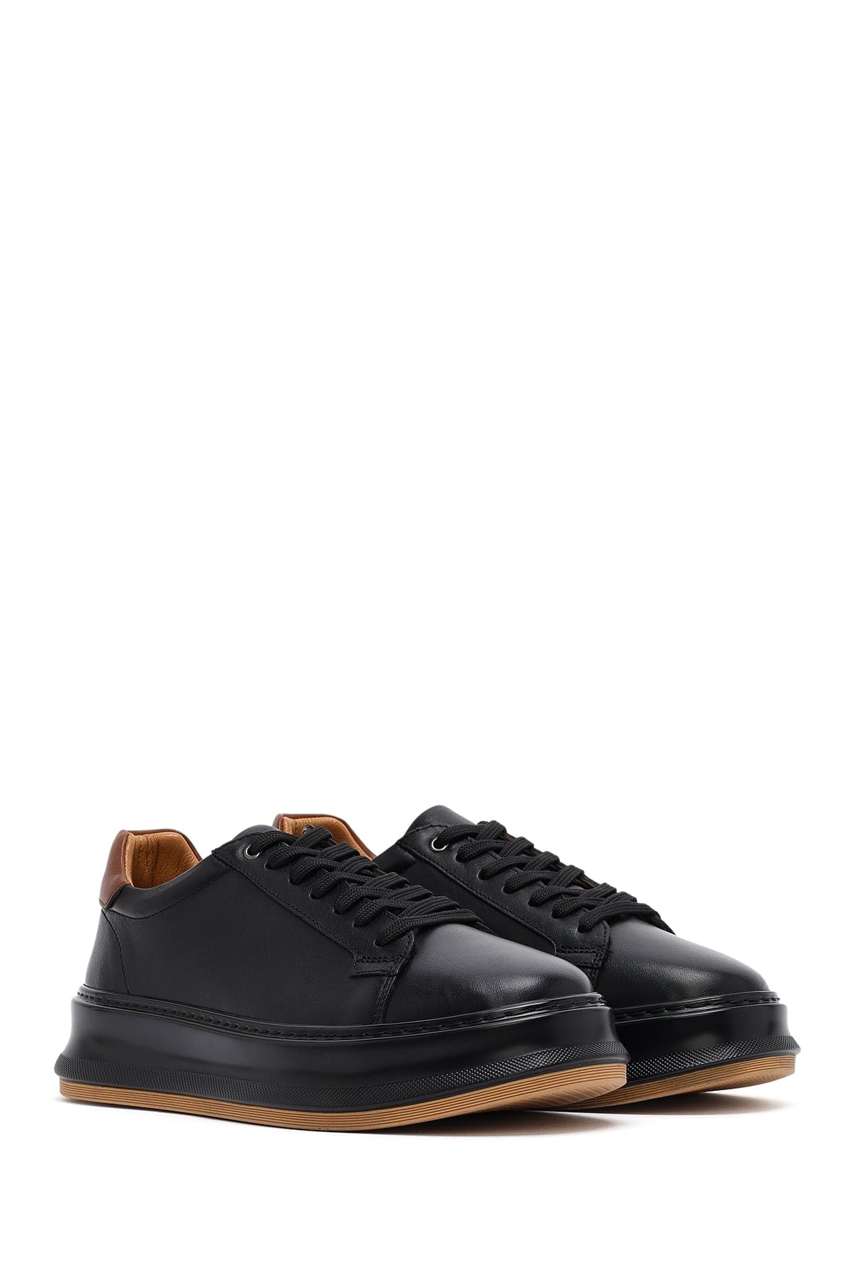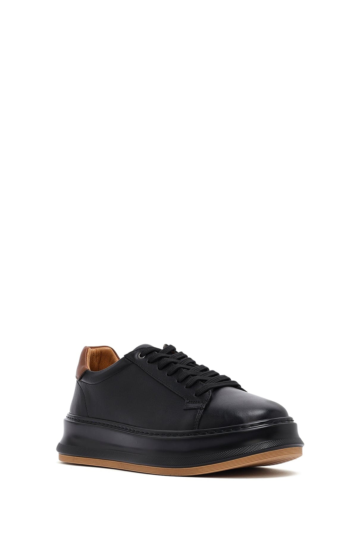 Erkek Siyah Bağcıklı Kalın Tabanlı Deri Sneaker