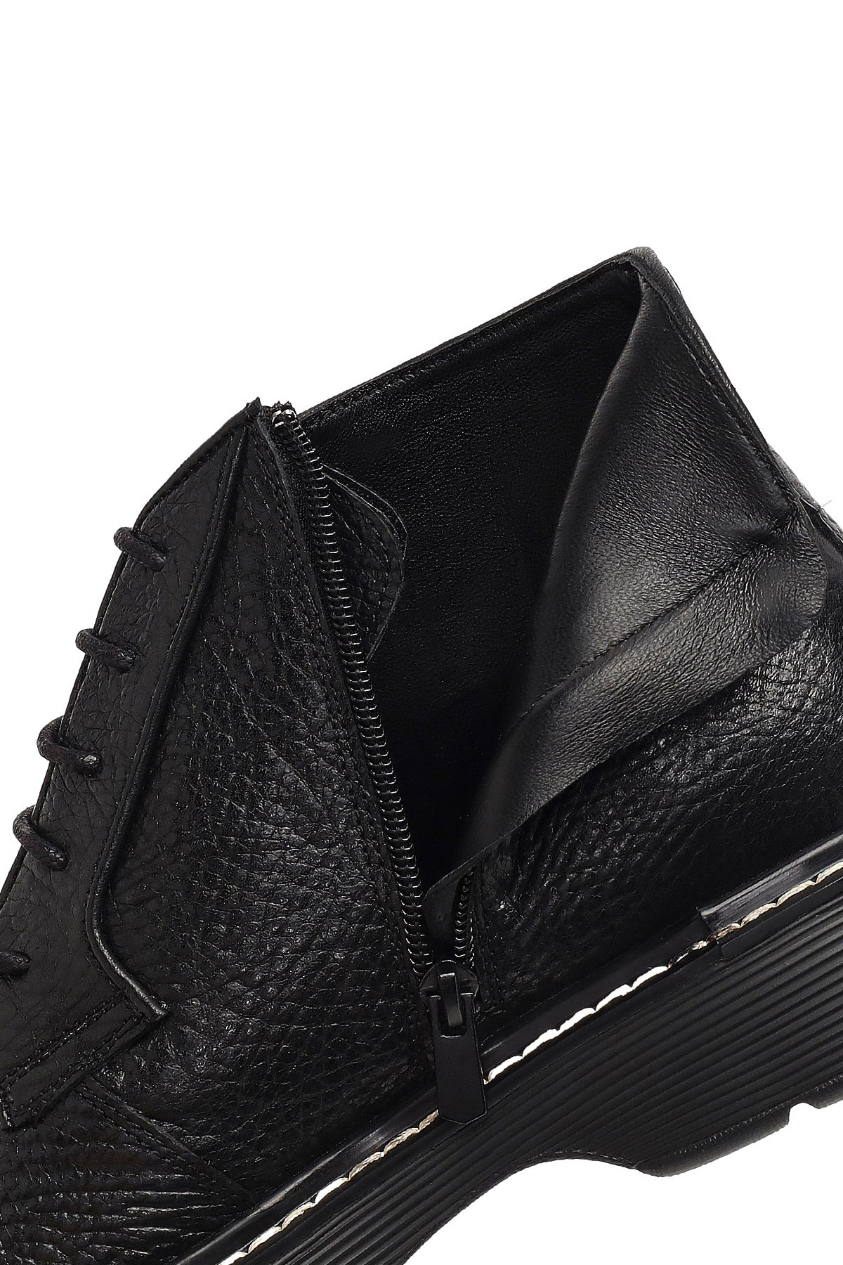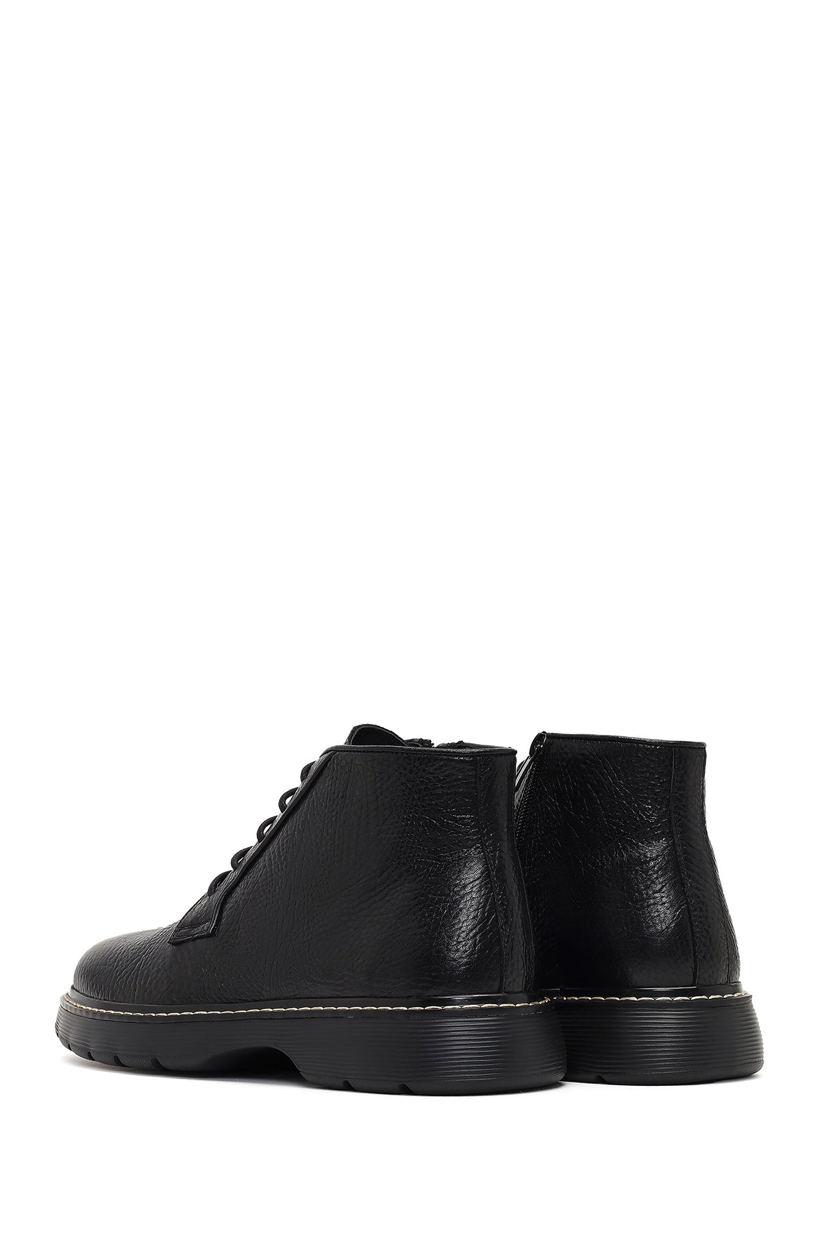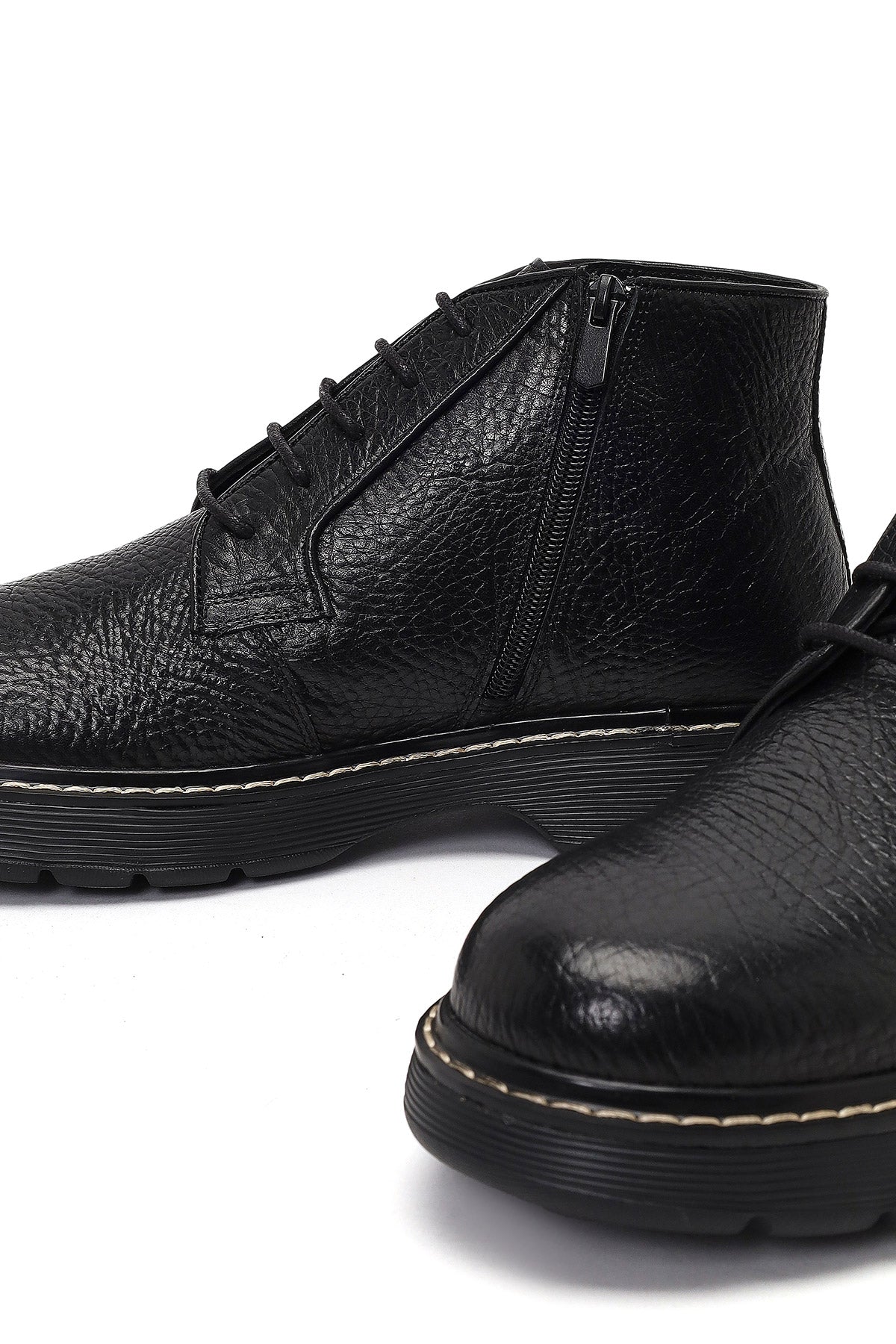 Erkek Siyah Bağcıklı Fermuarlı Deri Casual Bot
