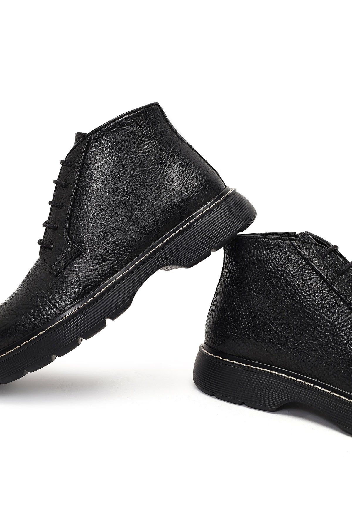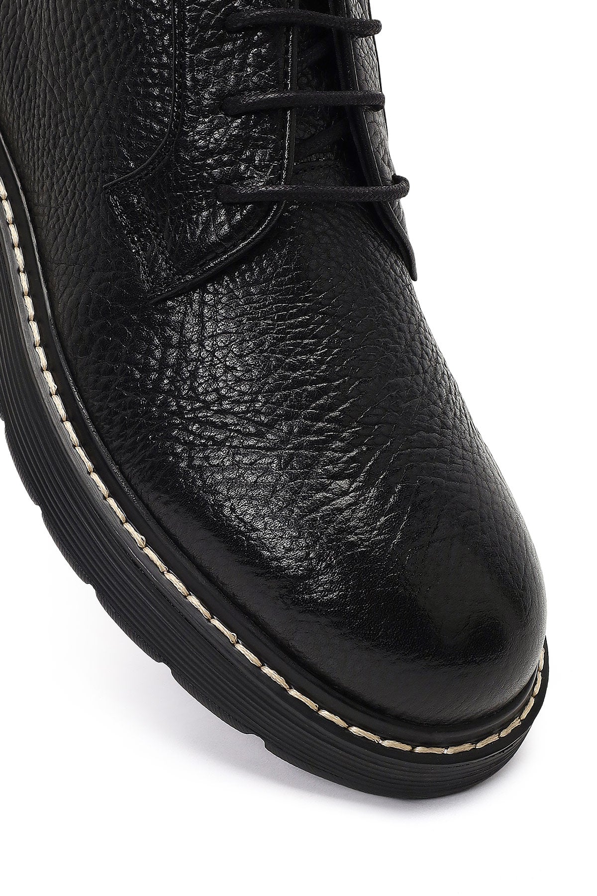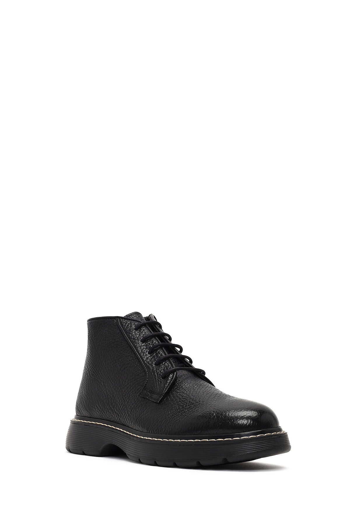 Erkek Siyah Bağcıklı Fermuarlı Deri Casual Bot