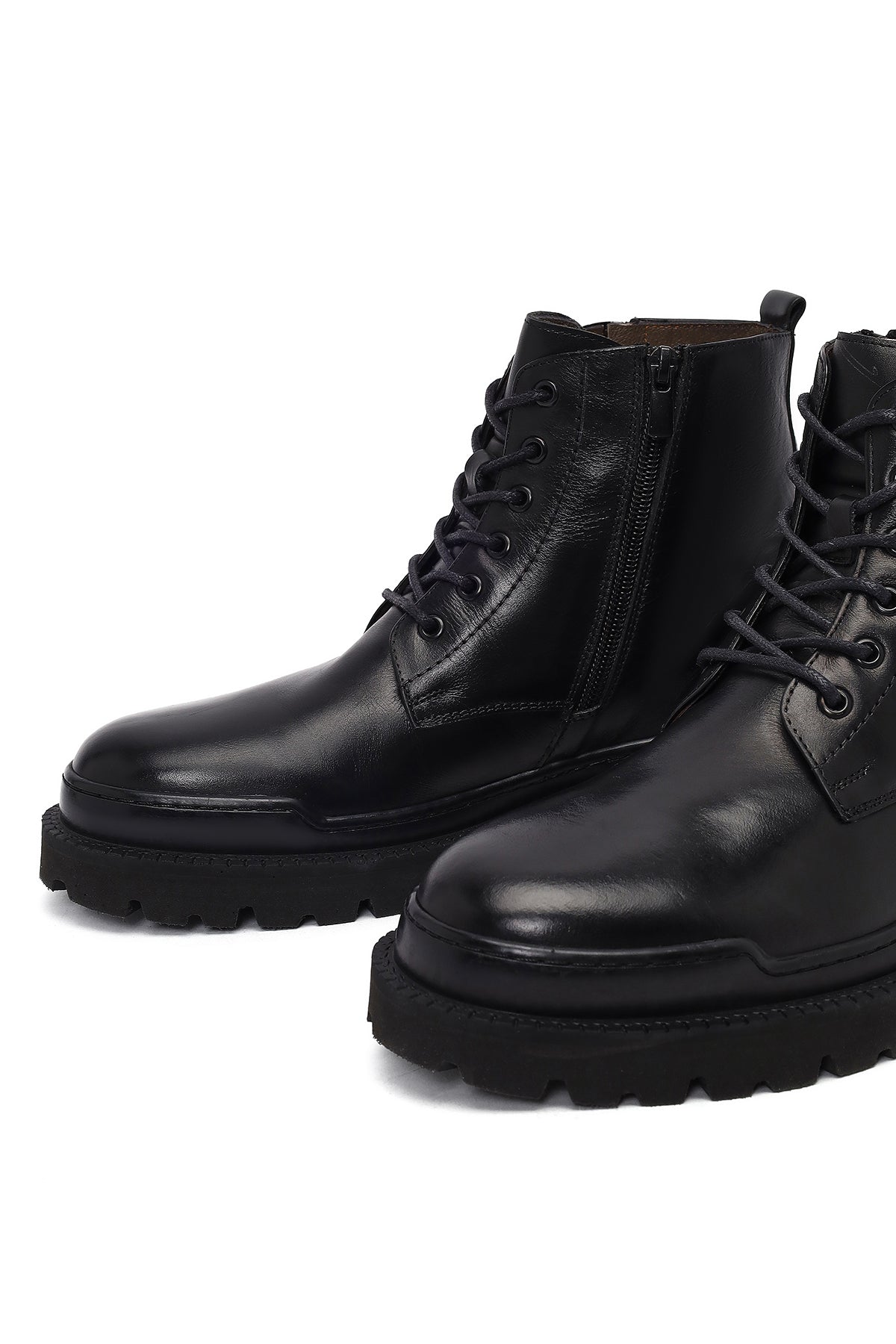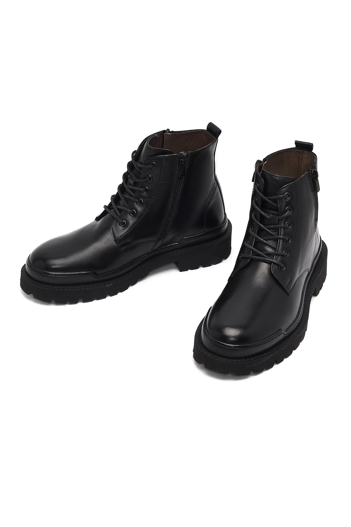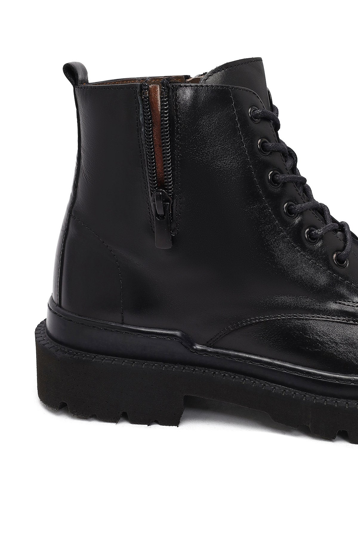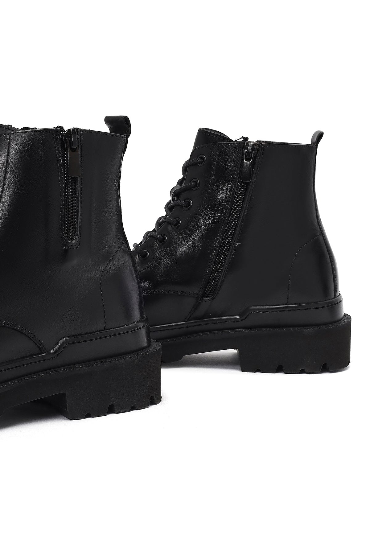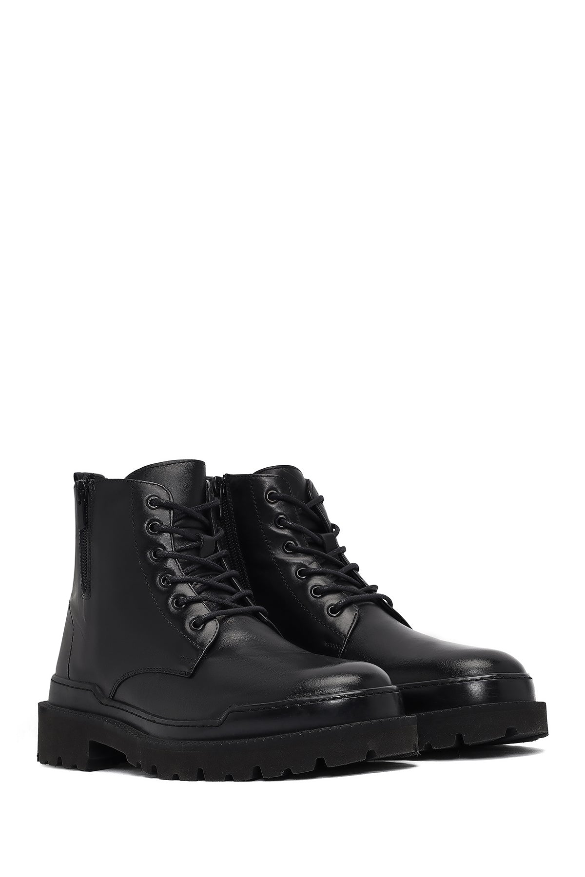 Erkek Siyah Bağcıklı Fermuarlı Deri Casual Bot