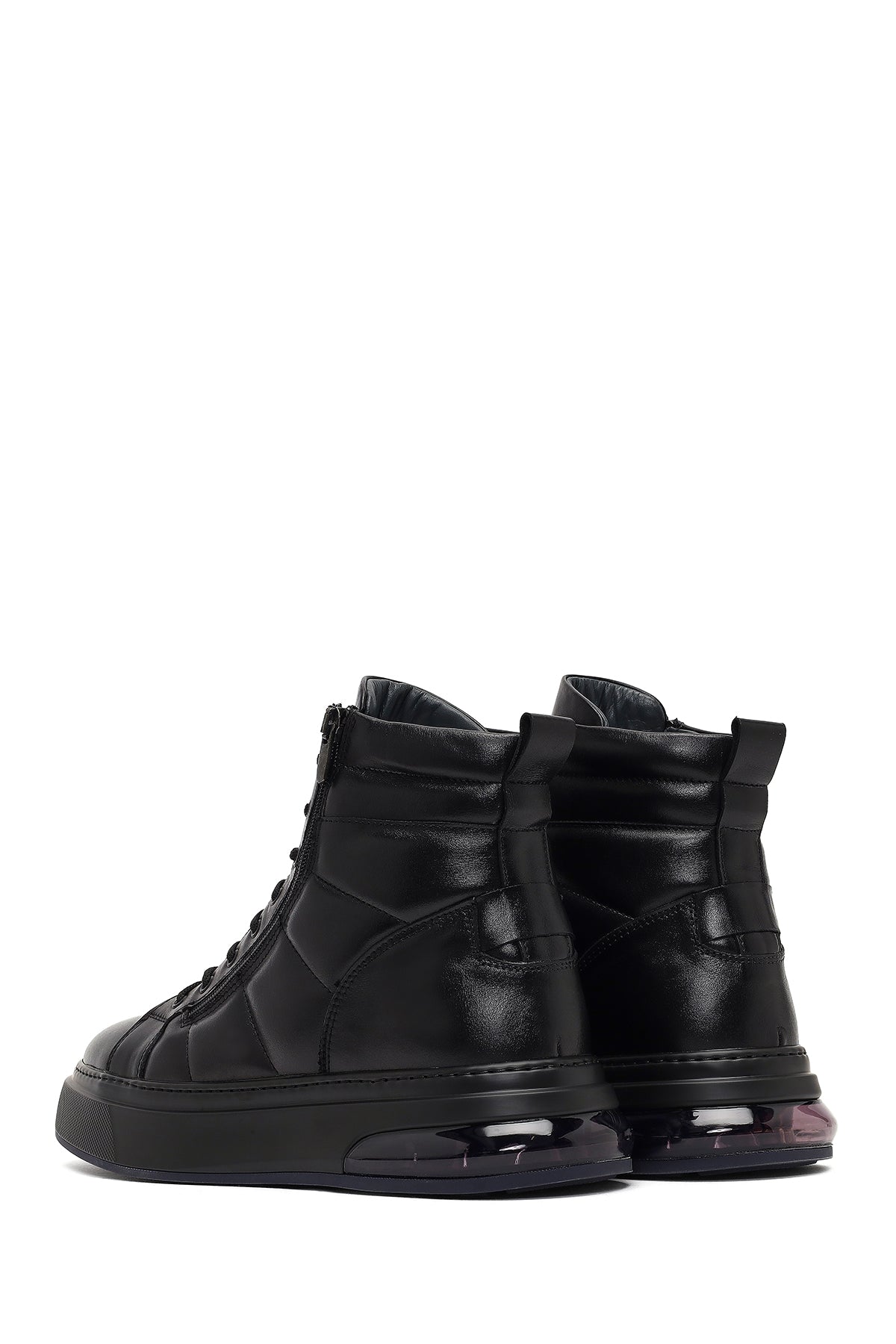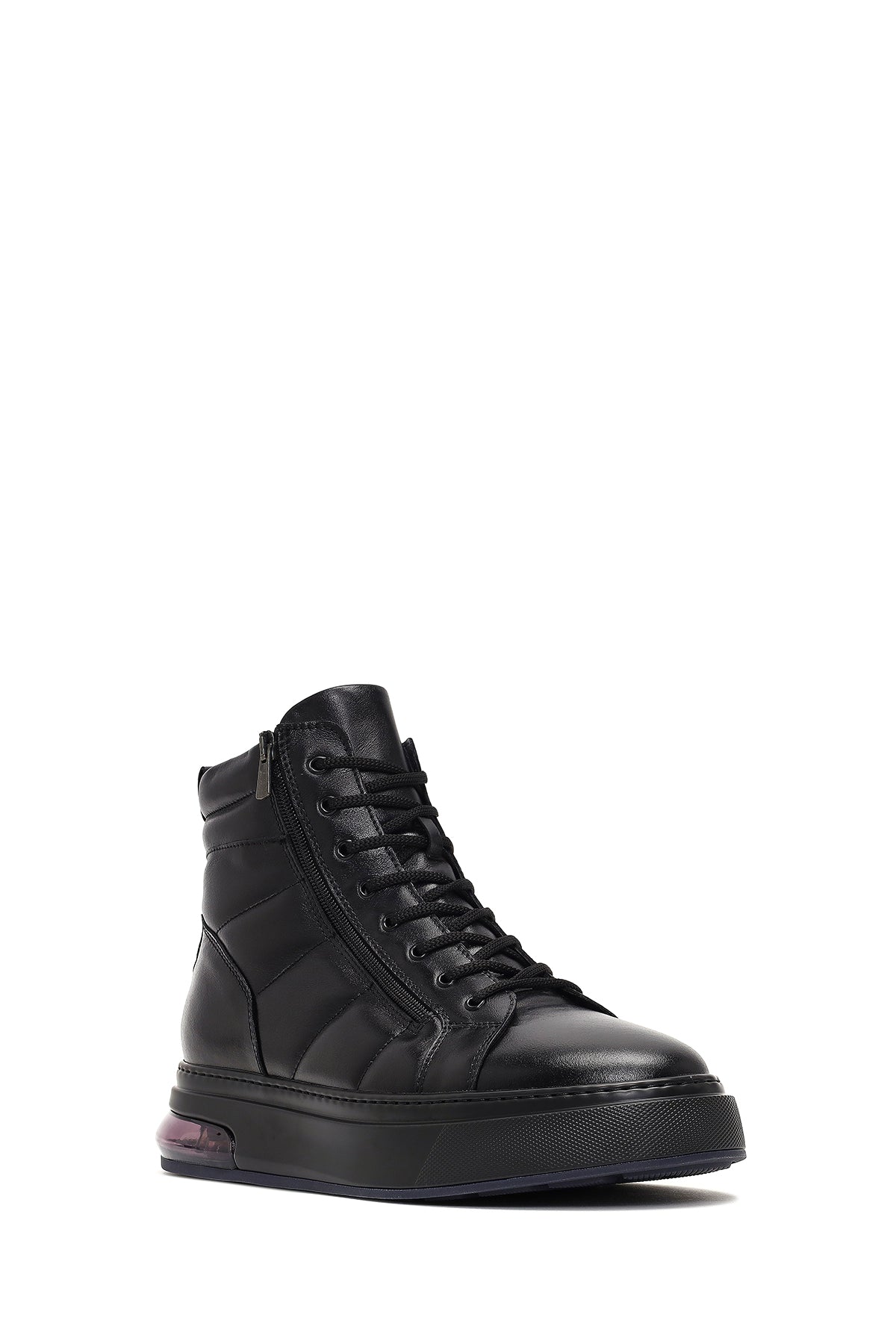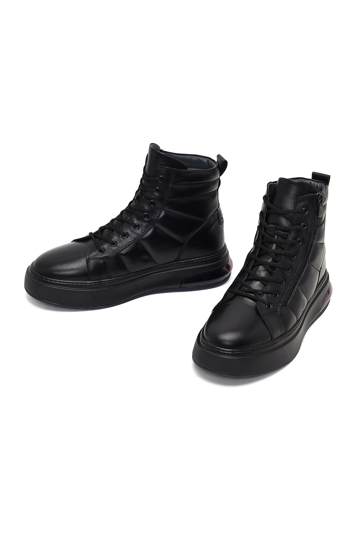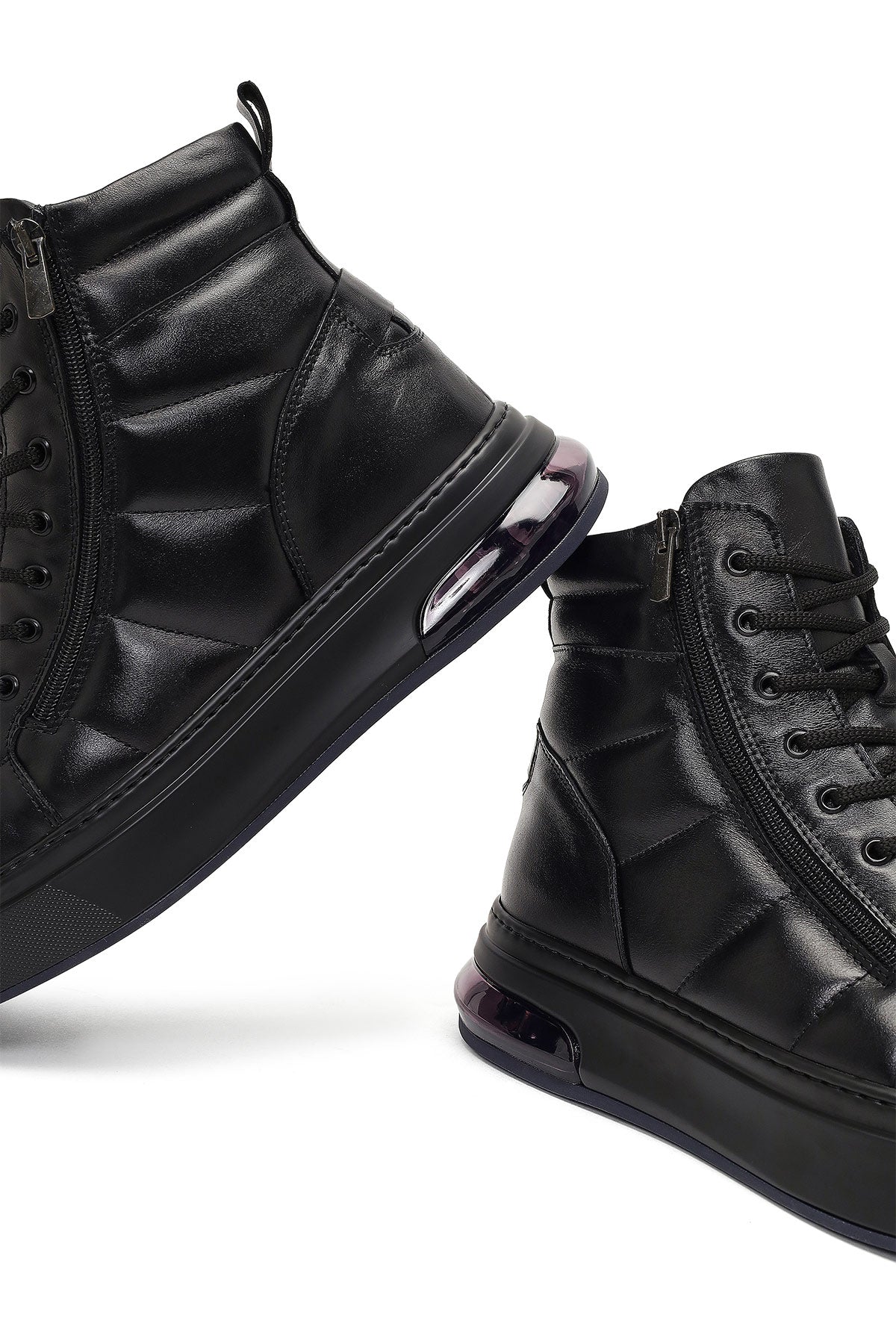 Erkek Siyah Bağcıklı Fermuarlı Kalın Tabanlı Deri Spor Bot
