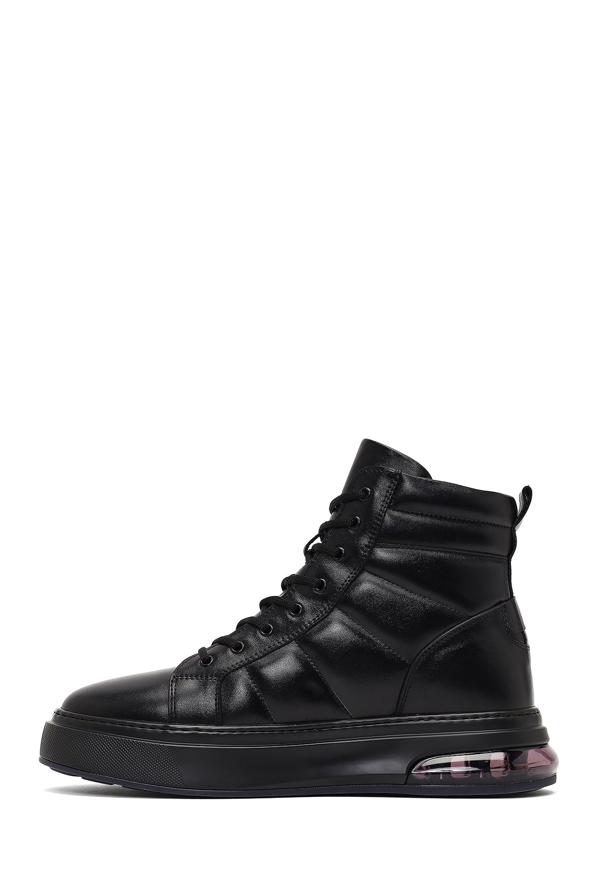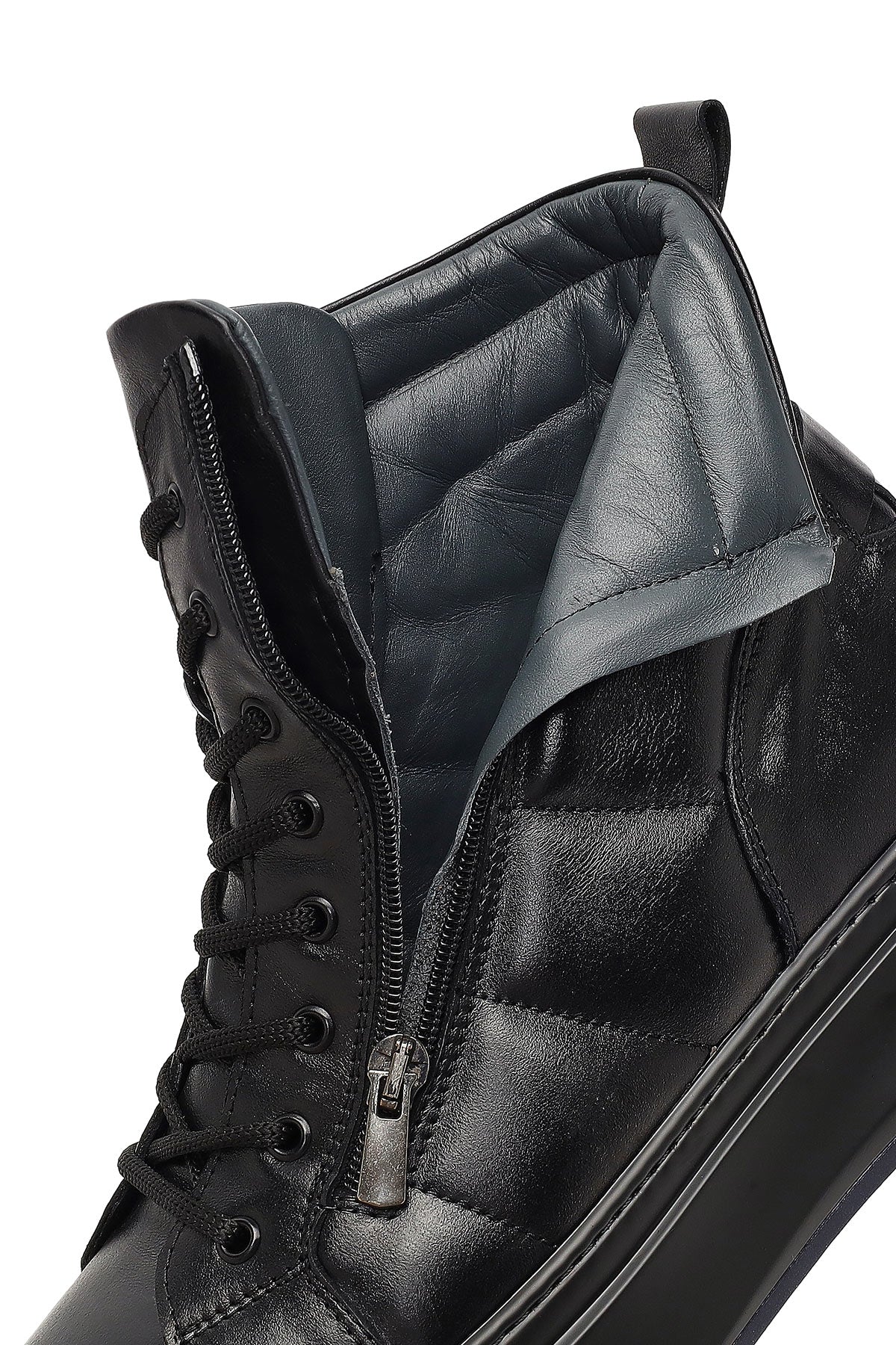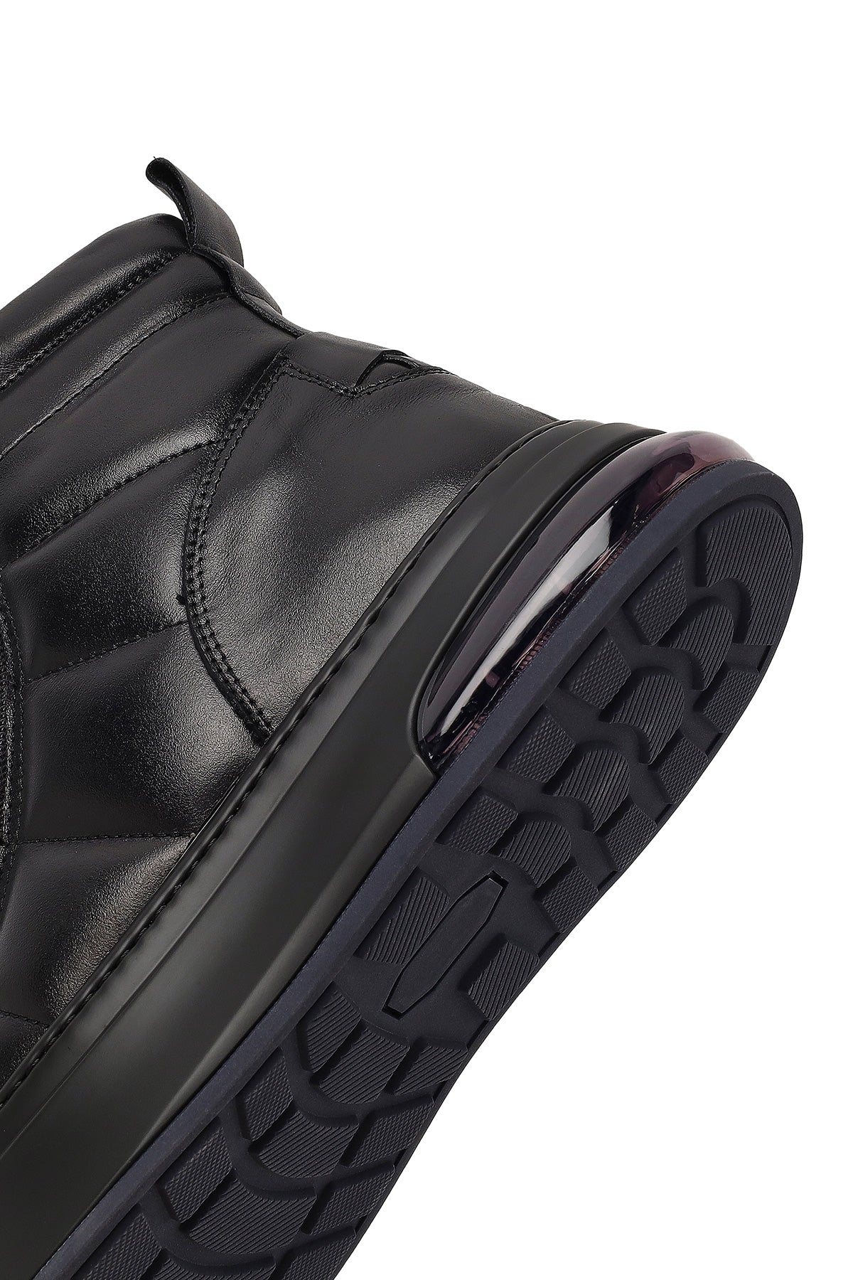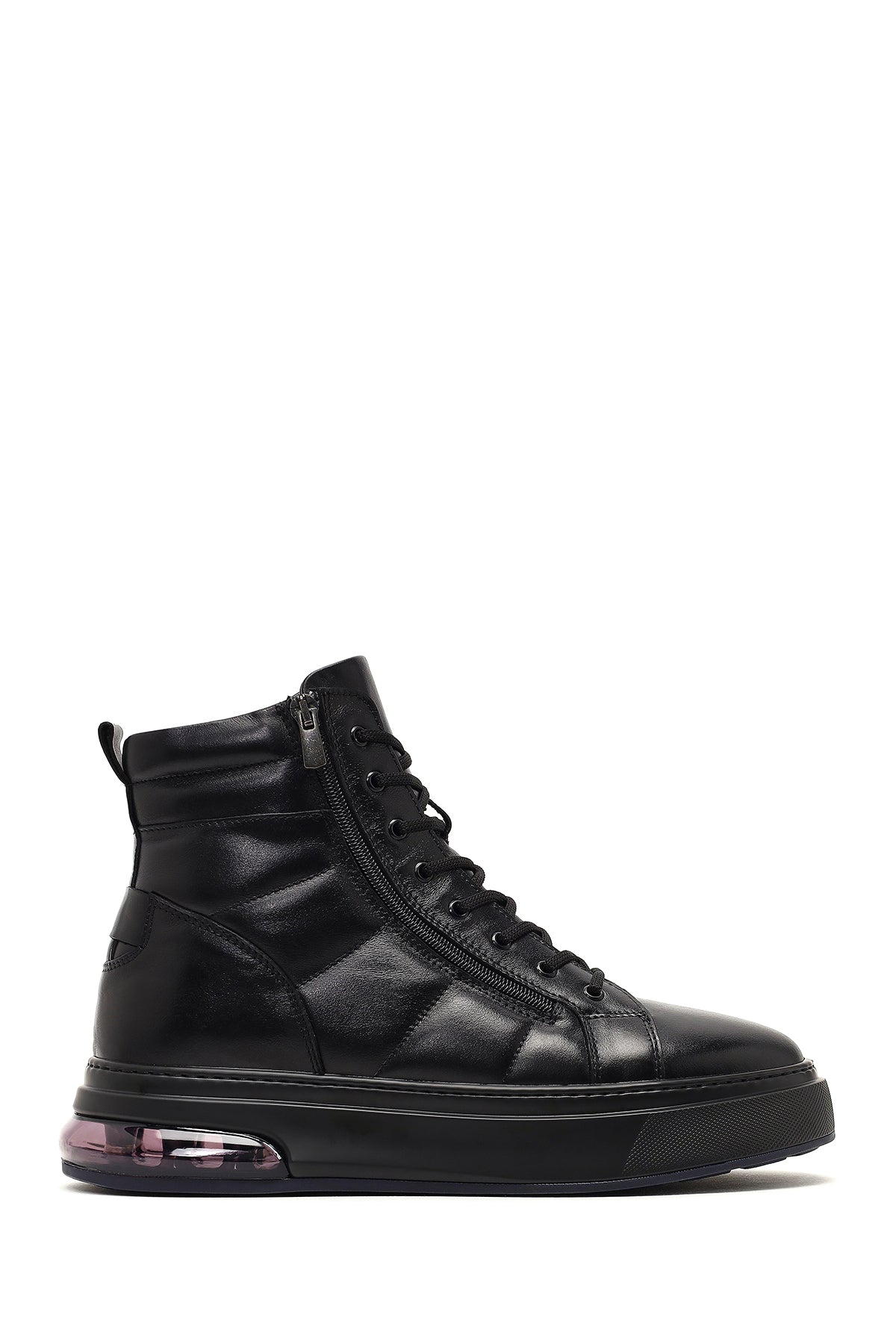 Erkek Siyah Bağcıklı Fermuarlı Kalın Tabanlı Deri Spor Bot