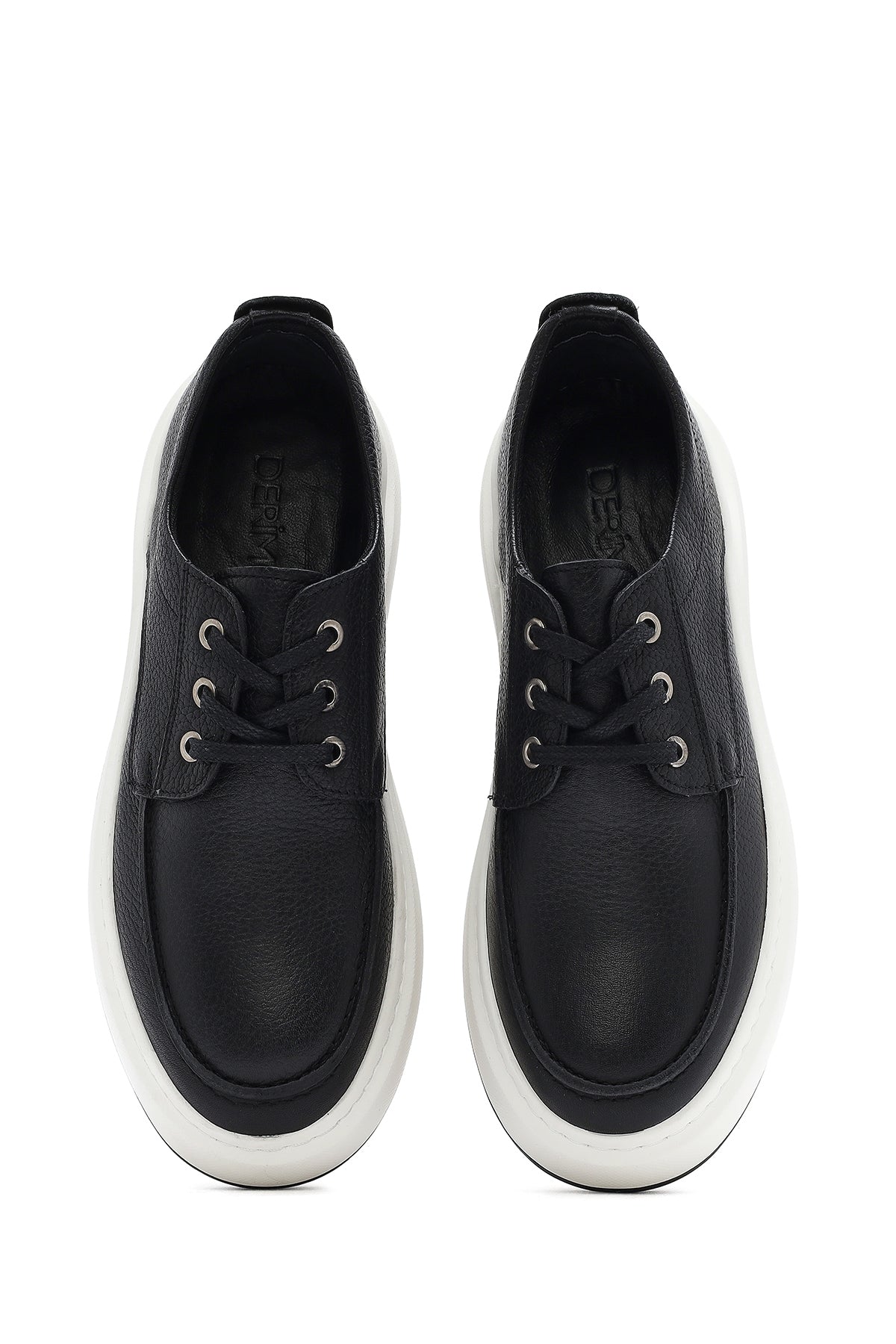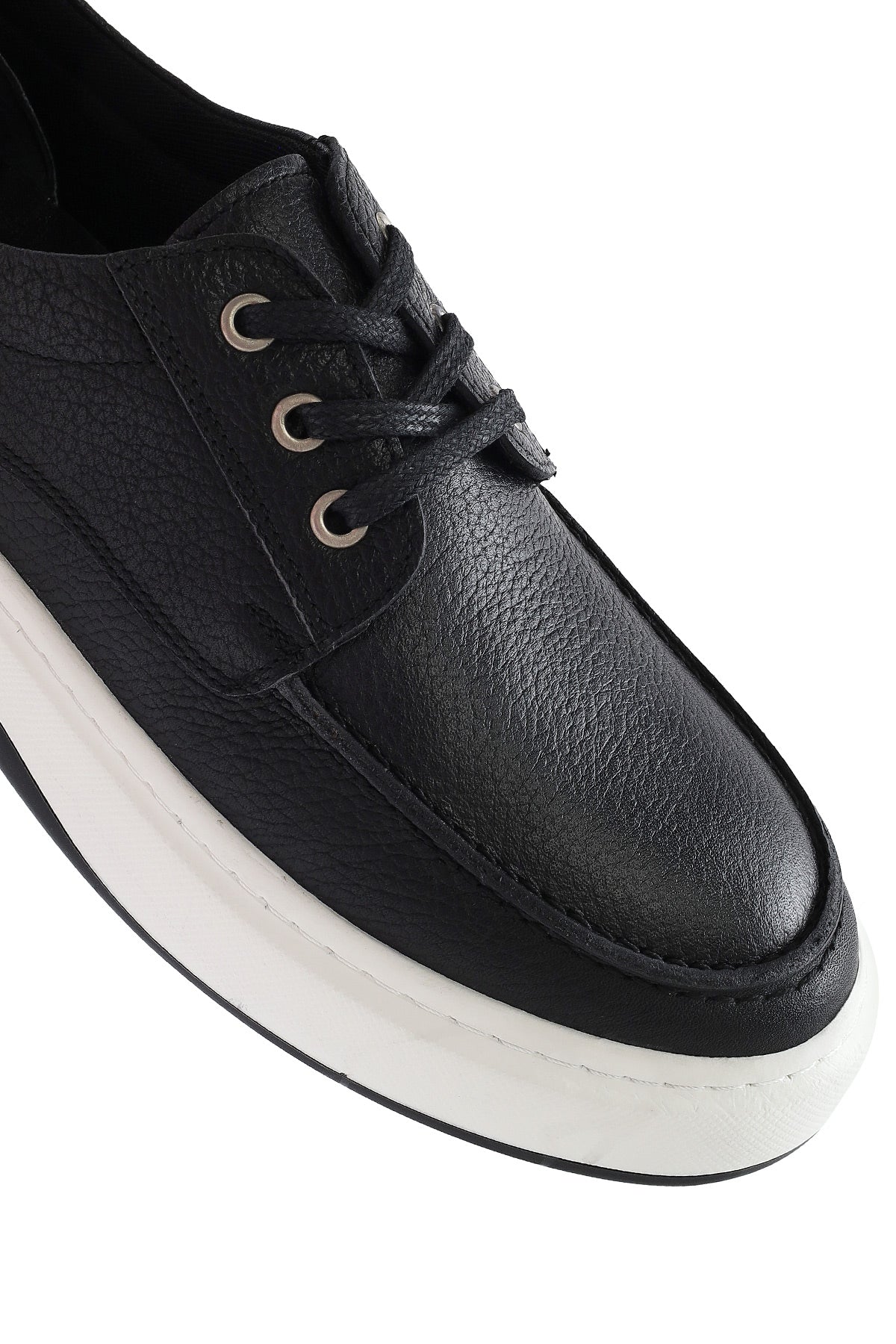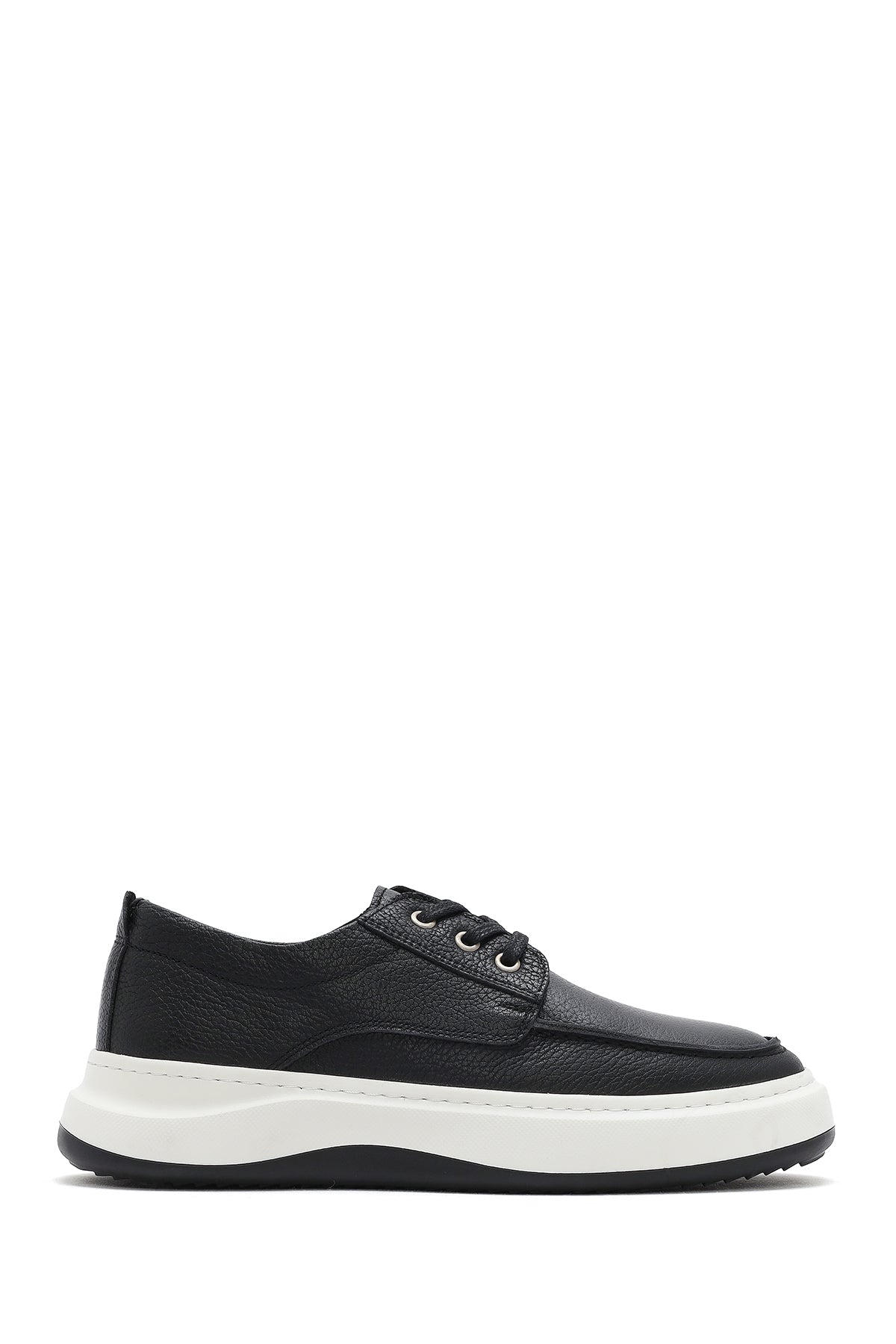 Erkek Siyah Bağcıklı Kalın Tabanlı Deri Casual Ayakkabı